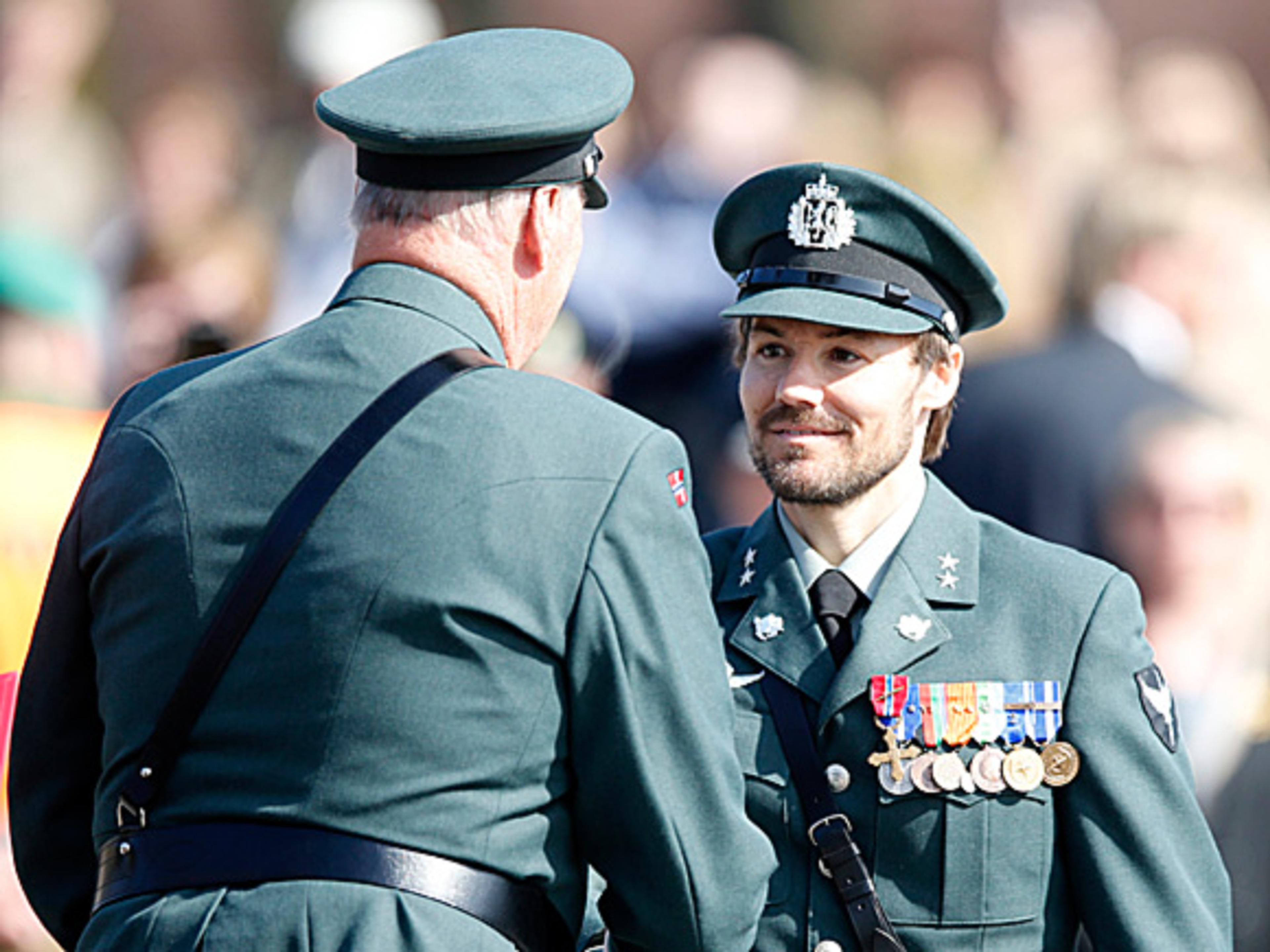 Hans Majestet Kongen delte ut Krigskorset med sverd til løytnant Lars Kristian Lauritzen og major Kristian Bergh Stang under markeringa av frigjeringsdagen og den nasjonale veterandagen på Akershus festning i dag.