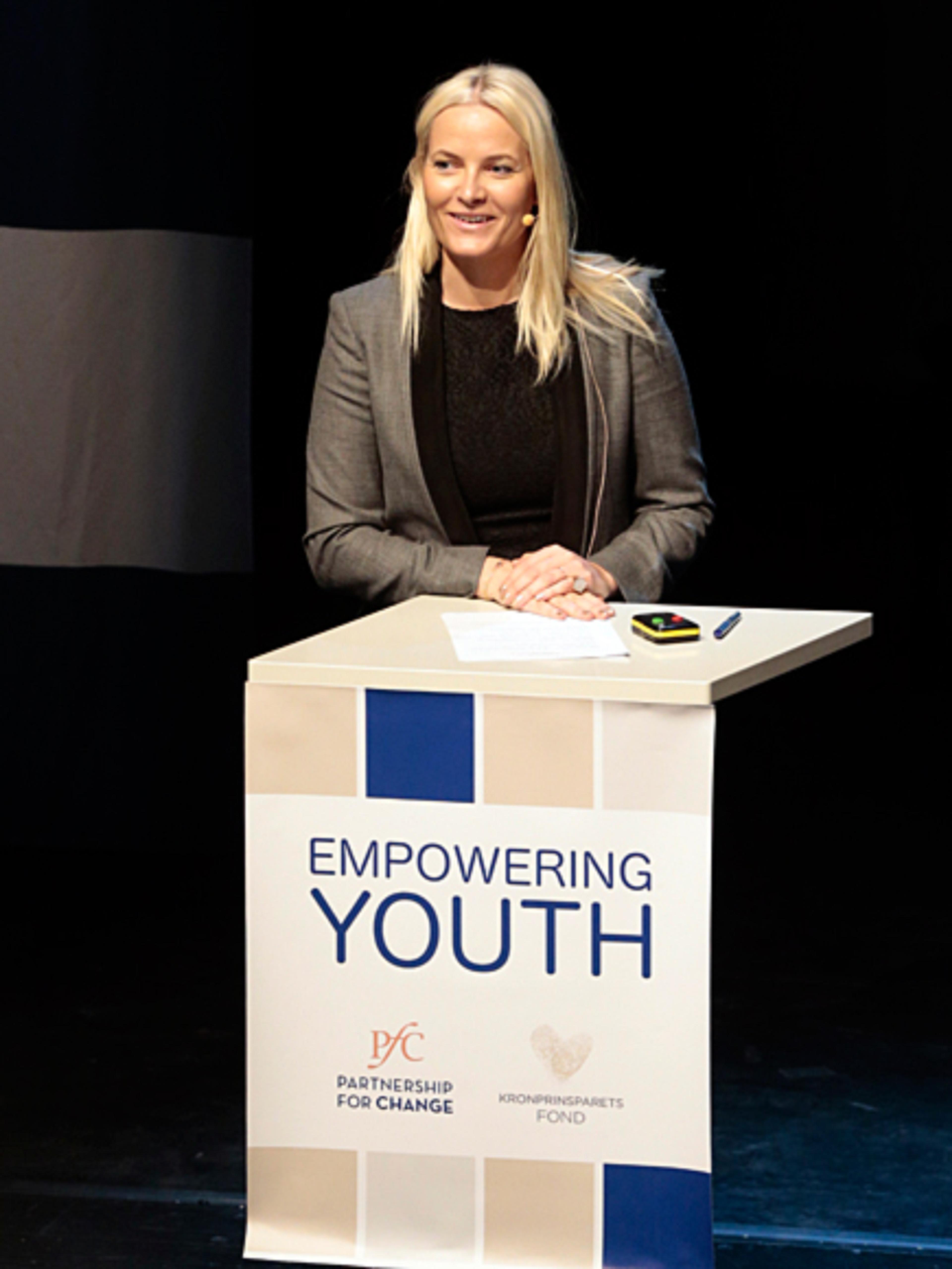 "I believe in young people. That is why i am here with you today..." Slik åpnet Hennes Kongelige Høyhet Kronprinsessen konferansen "Empowering Youth" i Operaen i dag. Kronprinsparet deltar begge aktivt på begge konferansedagene.