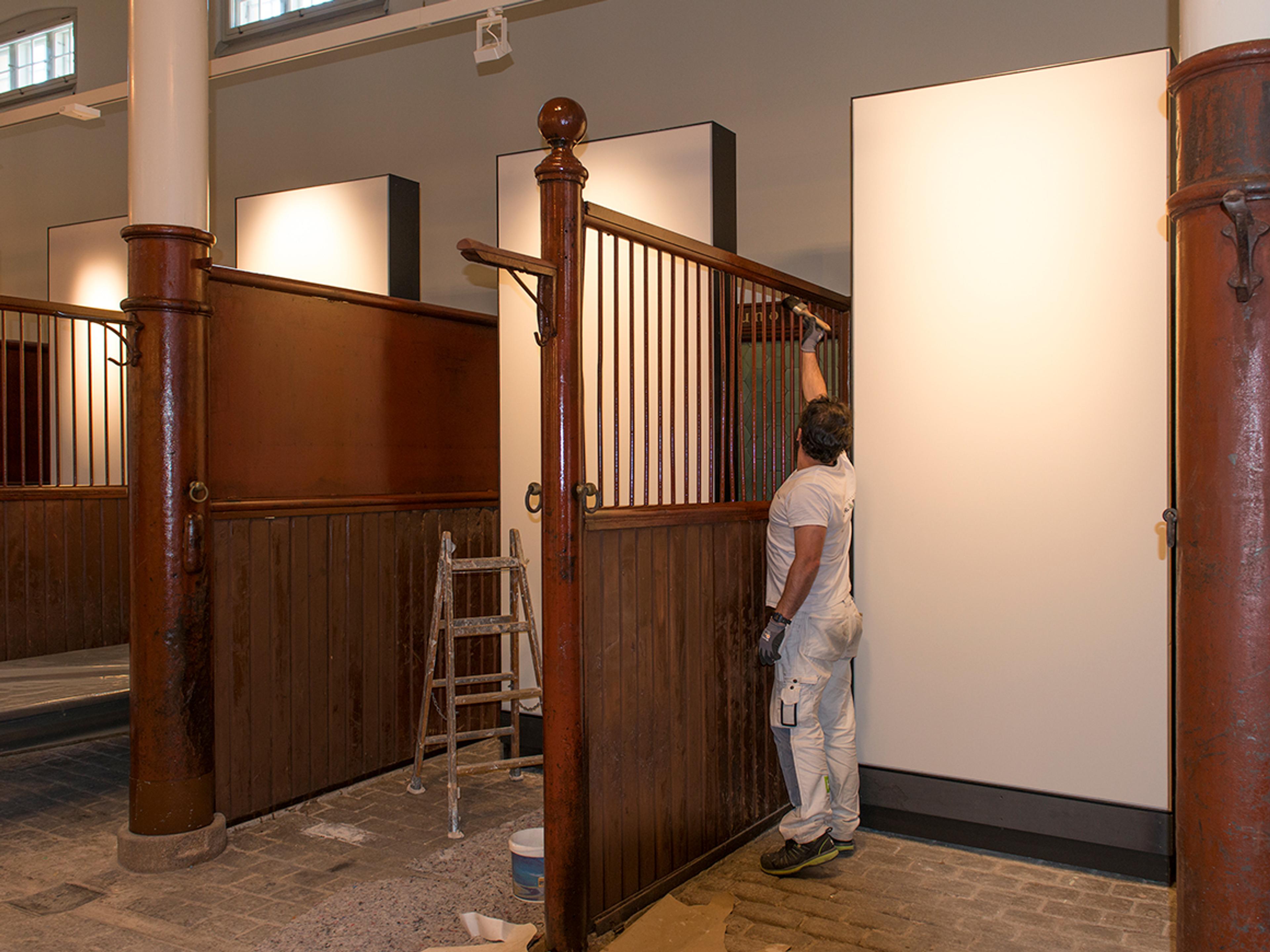 Da beslutningen om å rydde stallen "i hemmelighet" og presentere den som gave til Dronningen var fattet, gikk Hoffet i gang med den enorme oppgaven det var å rydde lokalet og starte arbeidet med å gjøre stall om til kunststall. Midtstallen hadde fungert som lager siden 2. verdenskrig. Den var nedslitt og full av små og store gjenstander. Nå skulle den omdannes til en arena for kunst og kultur.