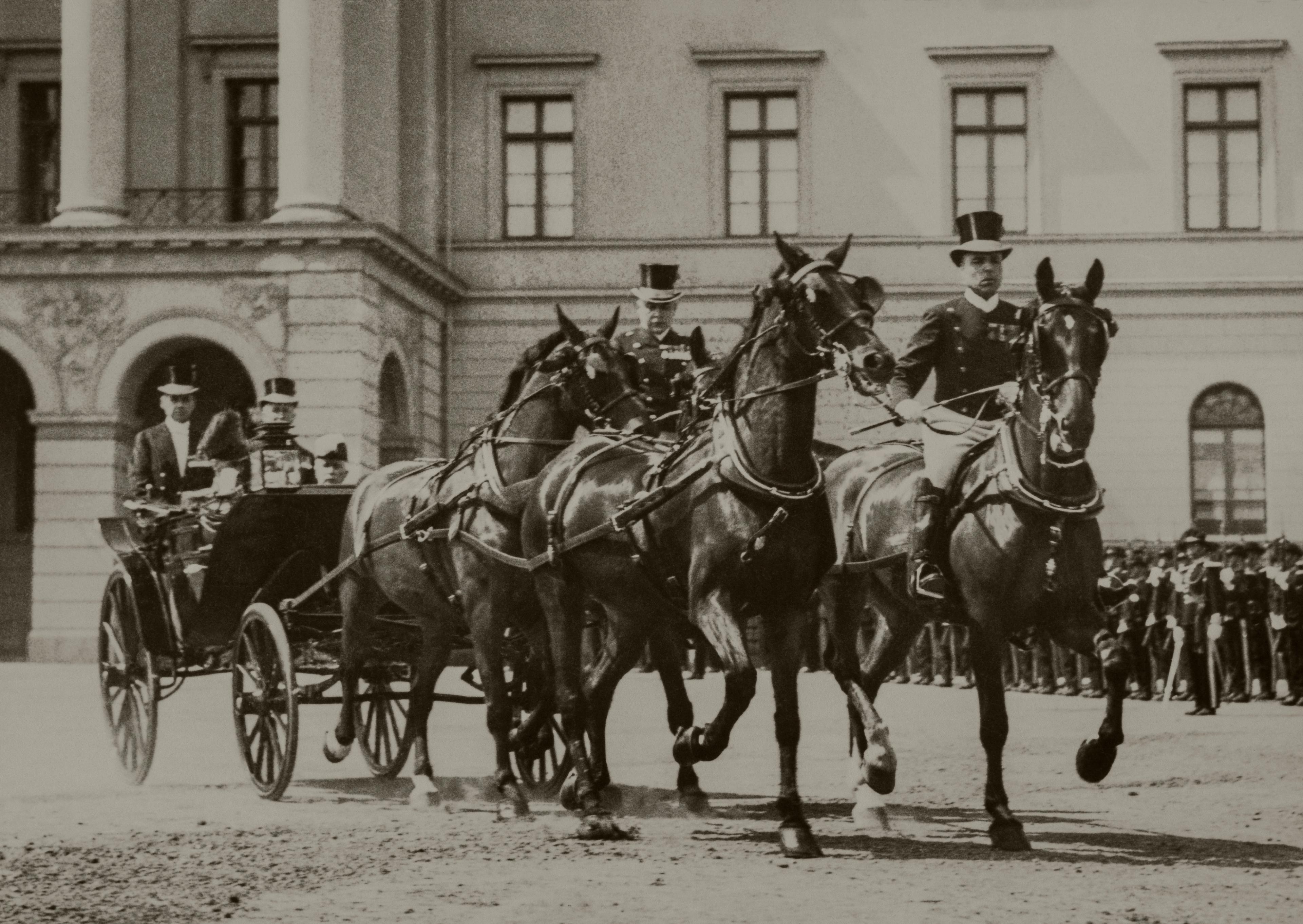 Kong Haakon kjøpte sin første bil i 1913, og etter Dronning Mauds død i 1938 avtok hesteholdet ved Slottet. De siste hestene forsvant fra Den kongelige stall kort tid etter krigsutbruddet med tysk okkupasjon i 1940. Da Kongefamilien vendte tilbake til Slottet i 1945 var hestenes tid over.