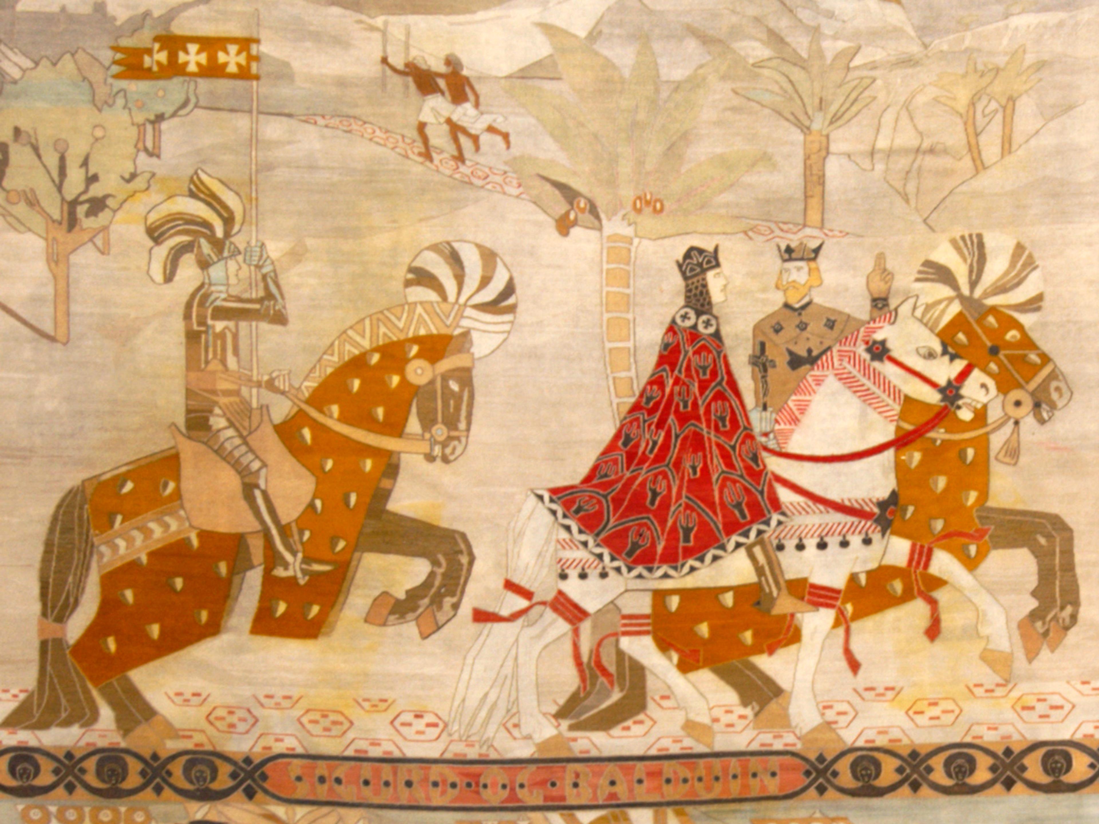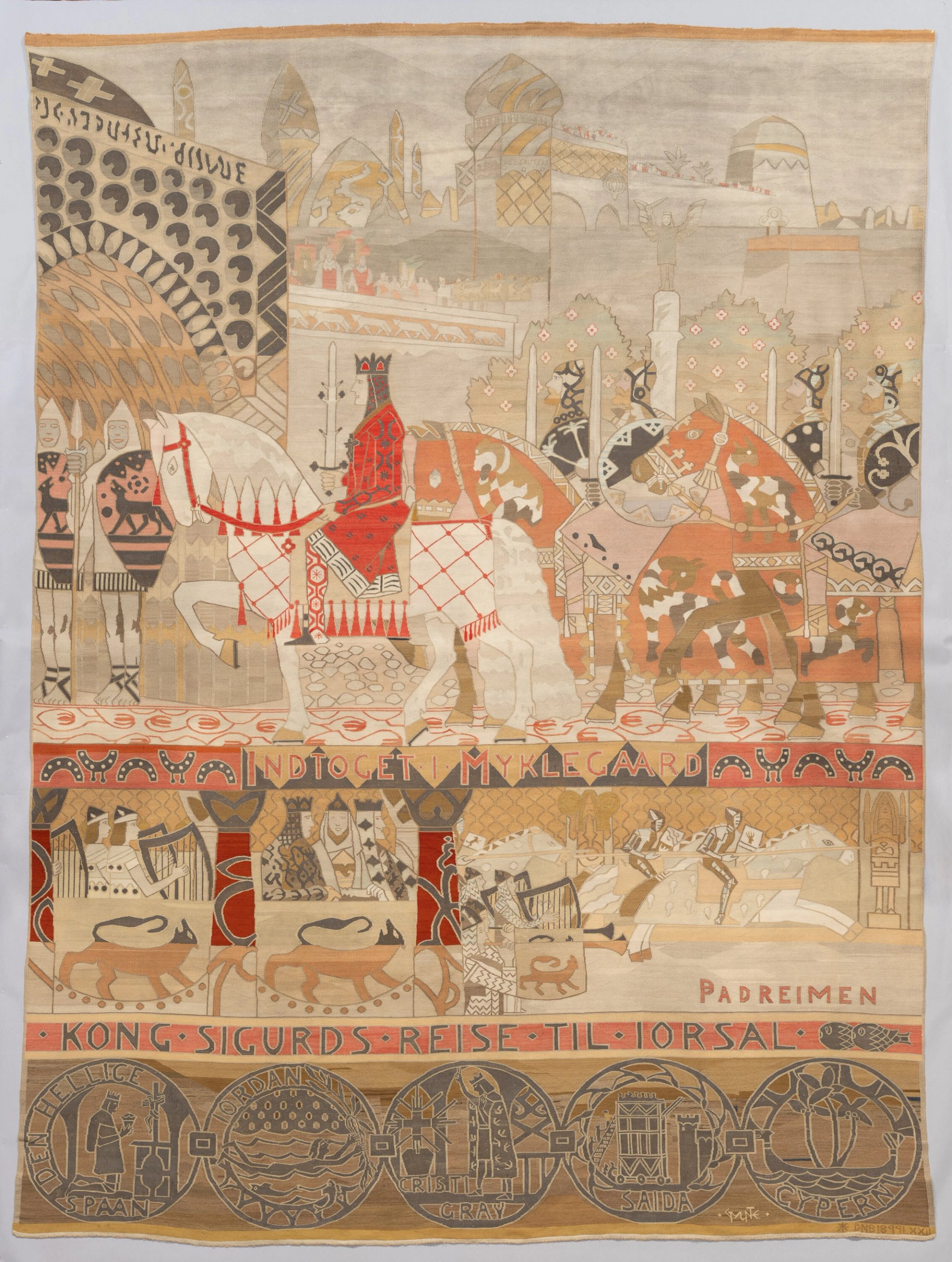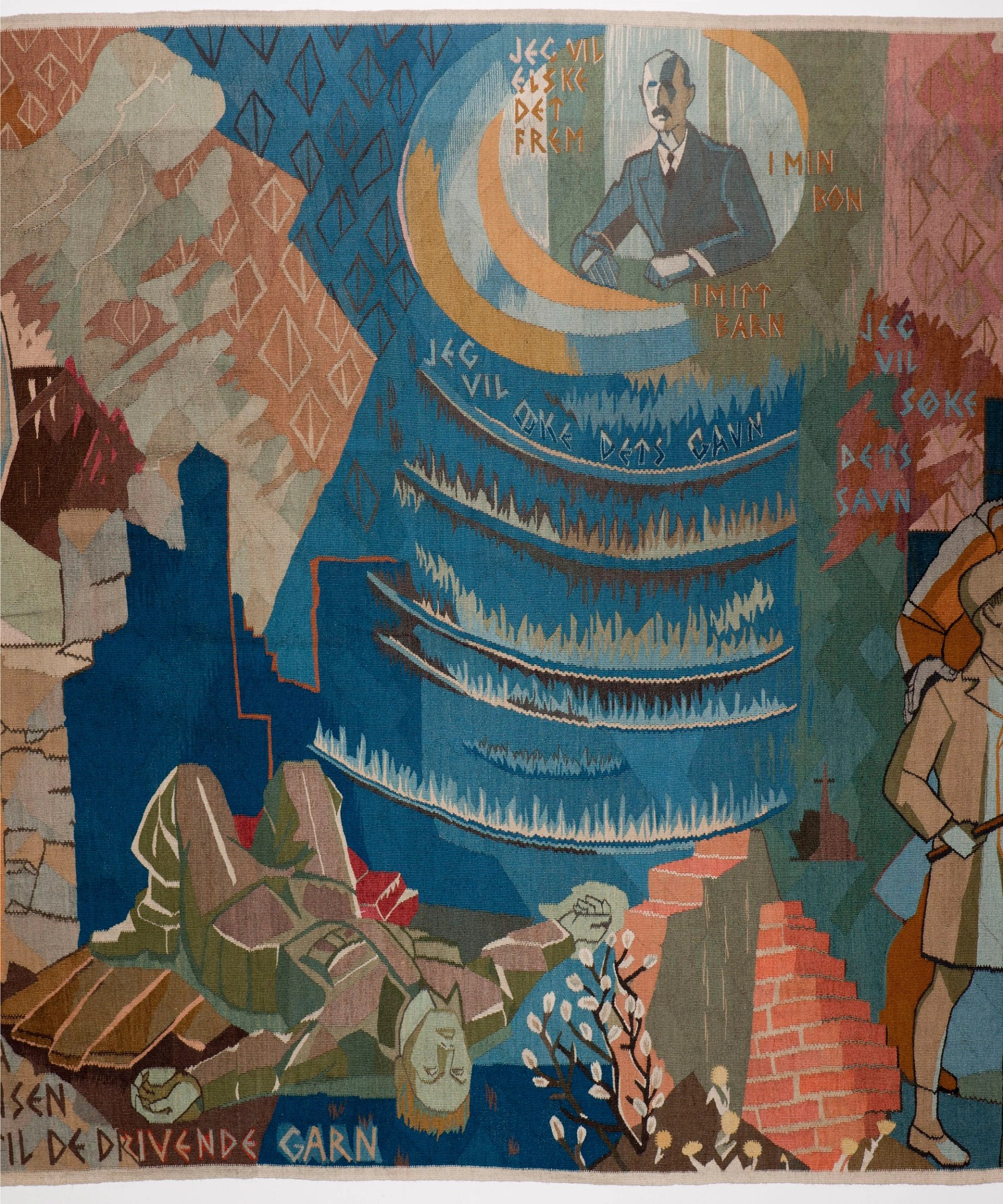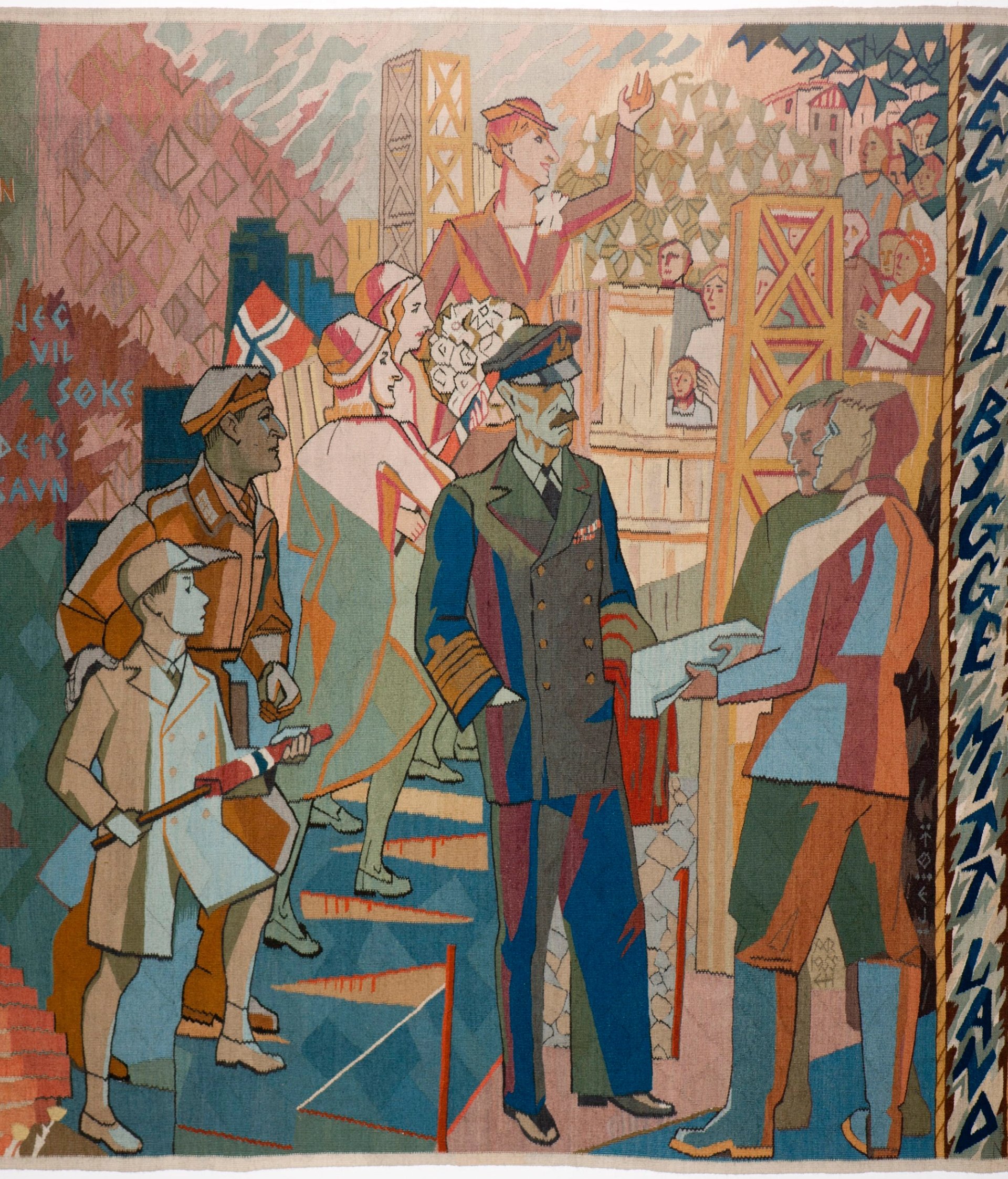 Utstillingen Tråder i tid spenner fra 1890-tallets renessanse for billedvev med motiver fra sagn og middelalder, og helt frem til fredstiden etter andre verdenskrig.