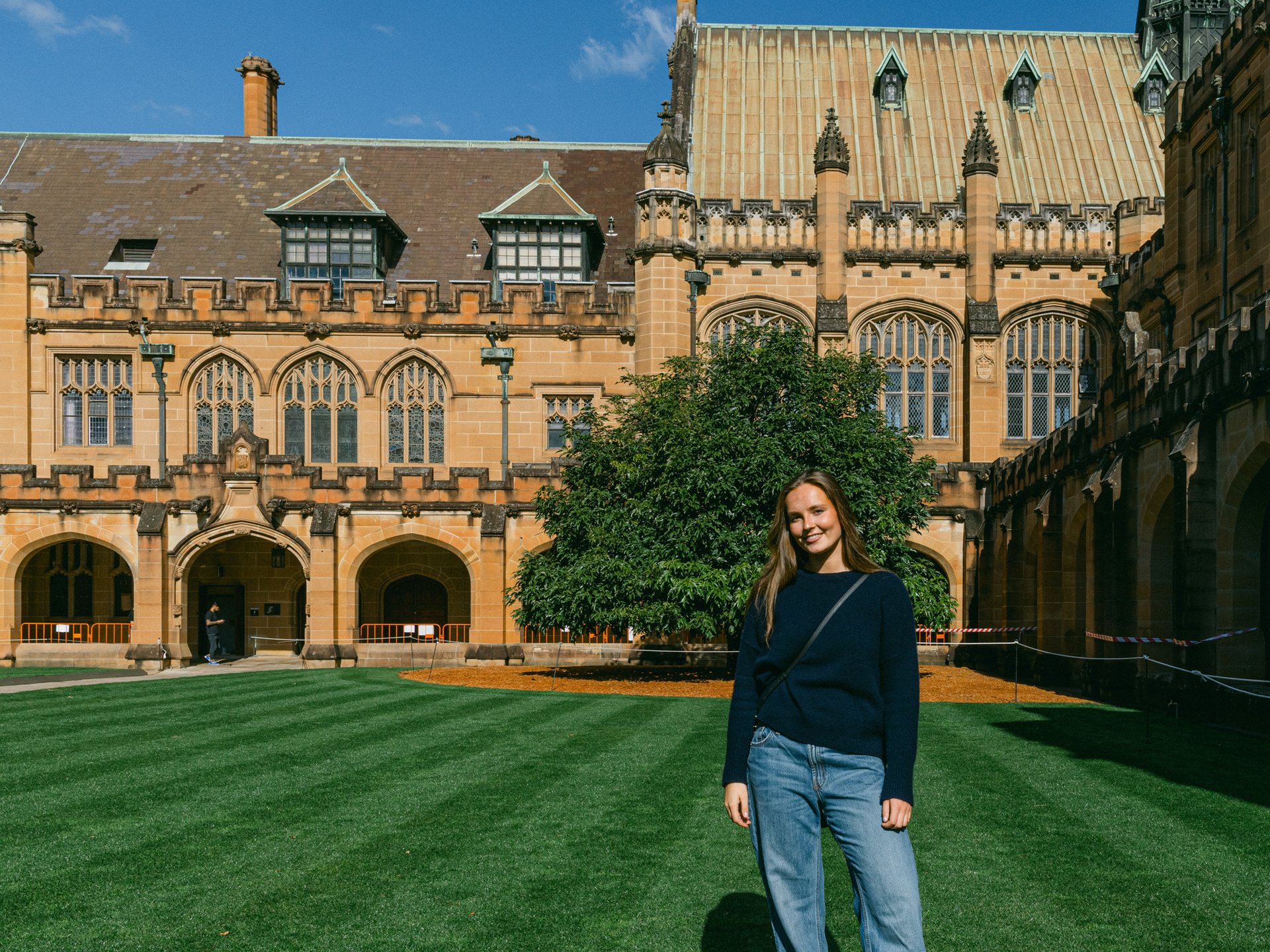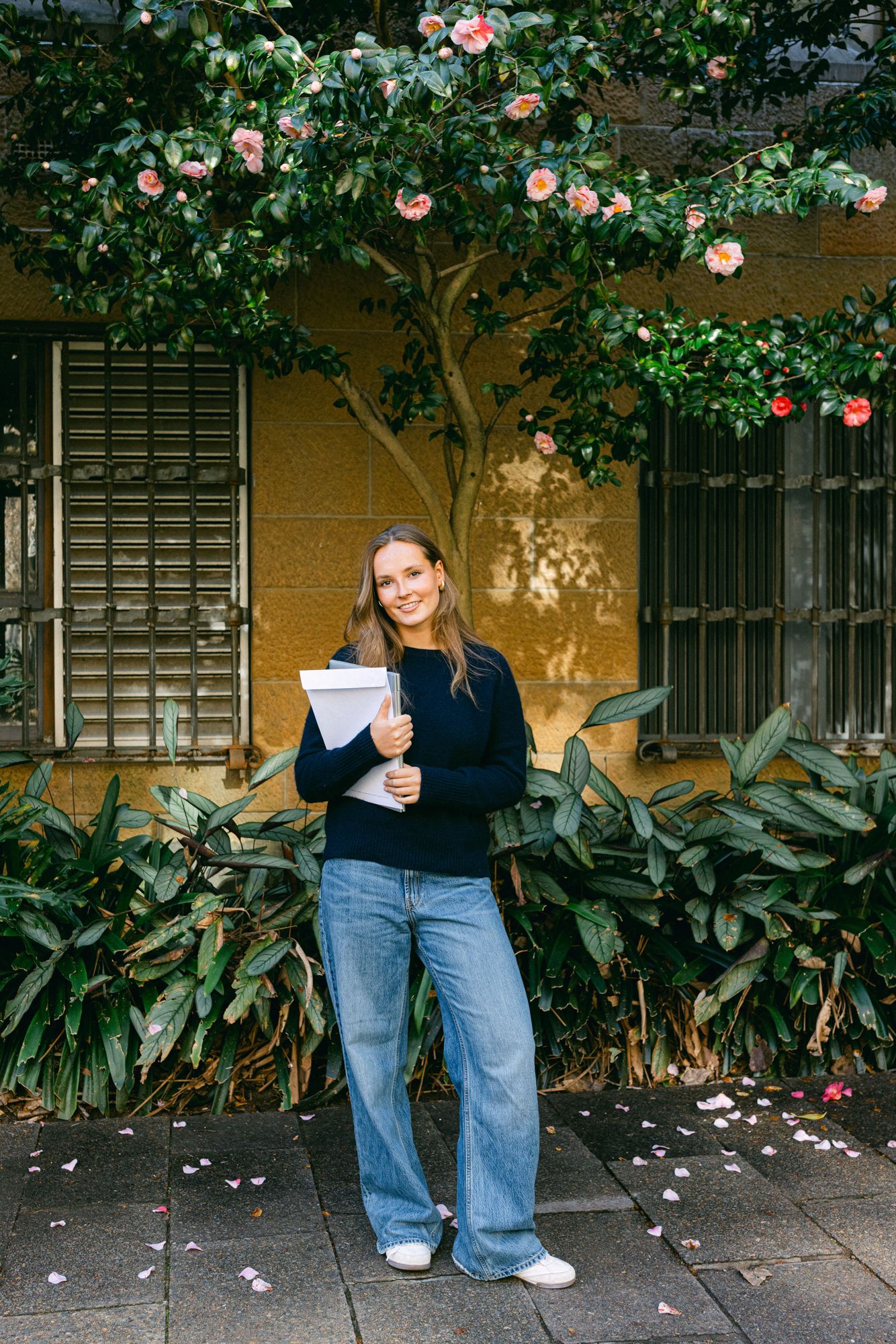 Prinsesse Ingrid Alexandra på universitetsområdet ved Universitetet i Sydney, 2025. Foto: Raquel Pires Photography / Det kongelige hoff