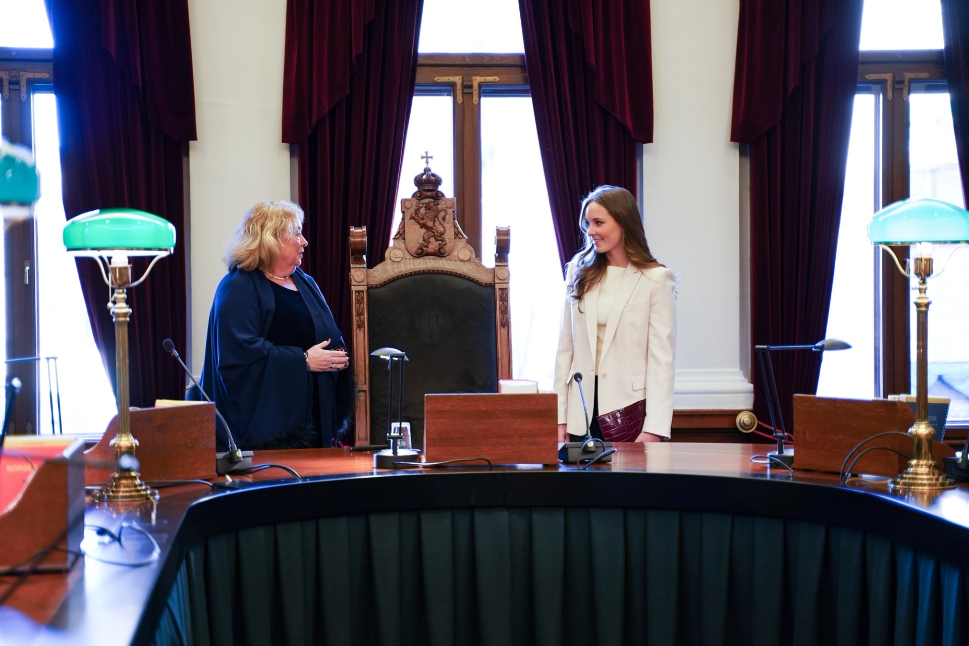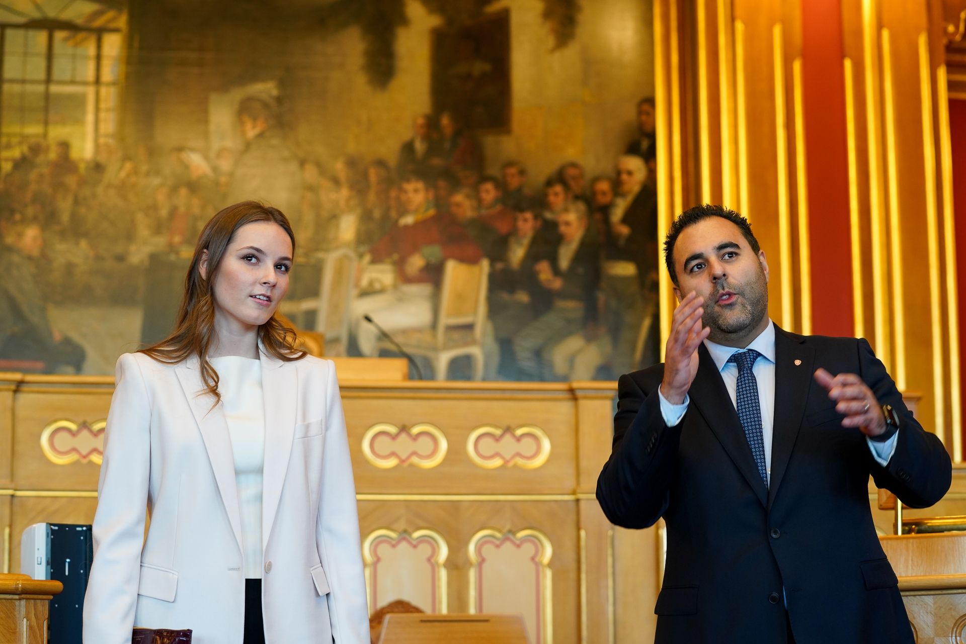 Stortingspresident Masud Gharahkhani viser Prinsesse Ingrid Alexandra stortingssalen. Foto: Simen Løvberg Sund, Det kongelige hoff