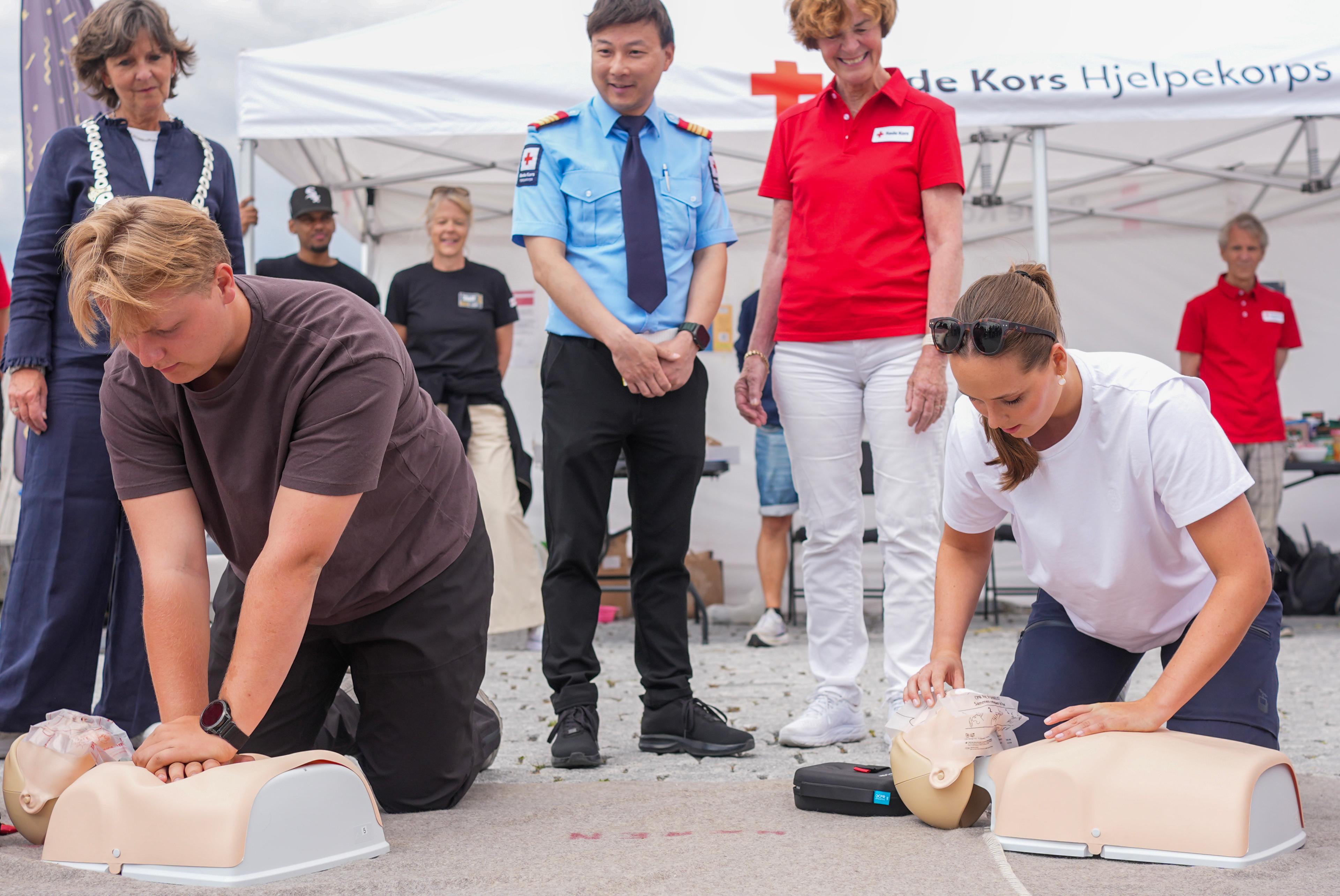 I lille festsal på Slottet var det dekket til 69 personer. I tillegg til familie og faddere, var representanter for det offisielle Norge og en rekke ungdomsorganisasjoner gjester ved den offisielle lunsjen.