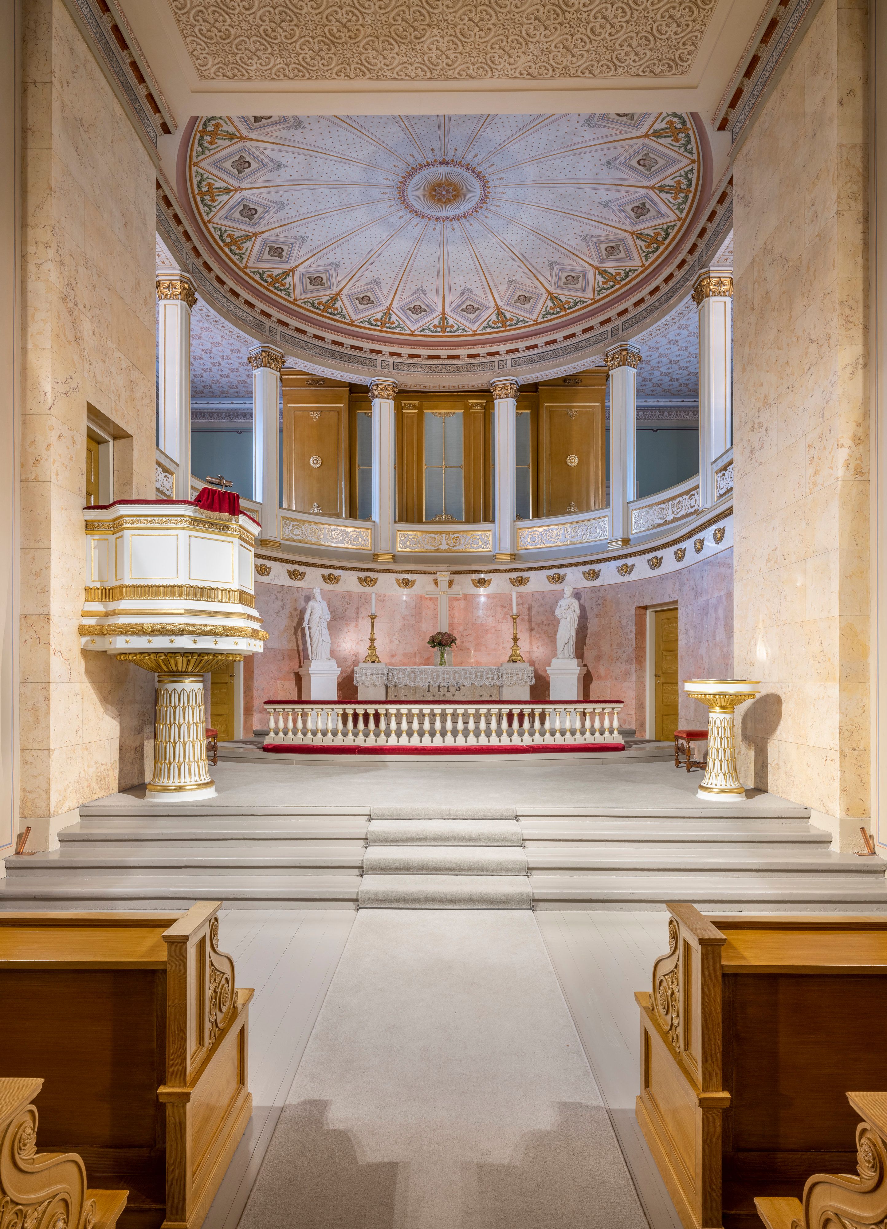 Grunnsteinen til Slottet ligg under alteret i Slottskapellet, og kapellet dannar ramme rundt viktige storhendingar i livet til Kongefamilien.