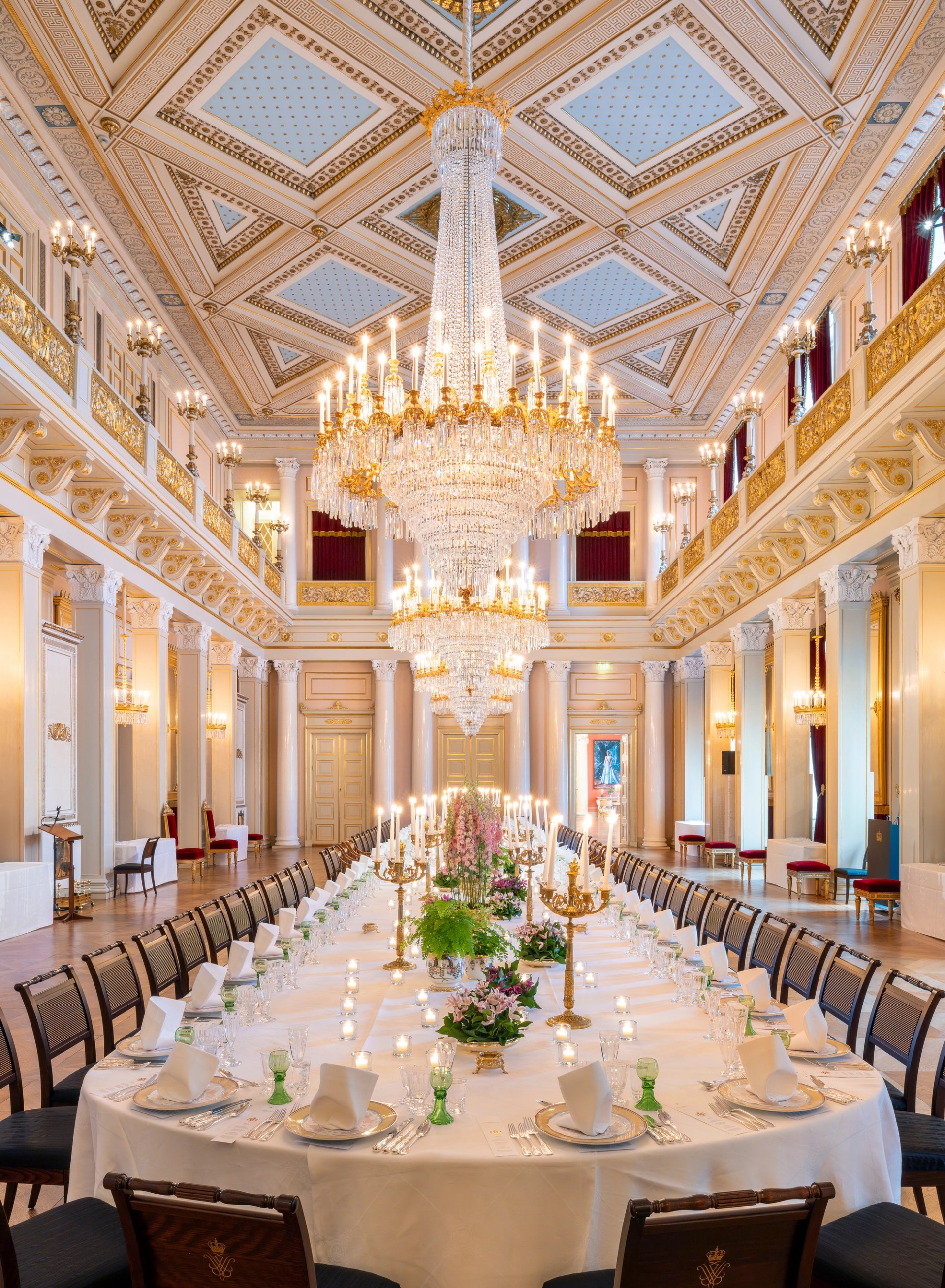 Store festsal er Slottets mest påkostede rom. Den er i bruk ved større mottakelser, middager og andre arrangementer - og når det en sjelden gang holdes ball på Slottet.
