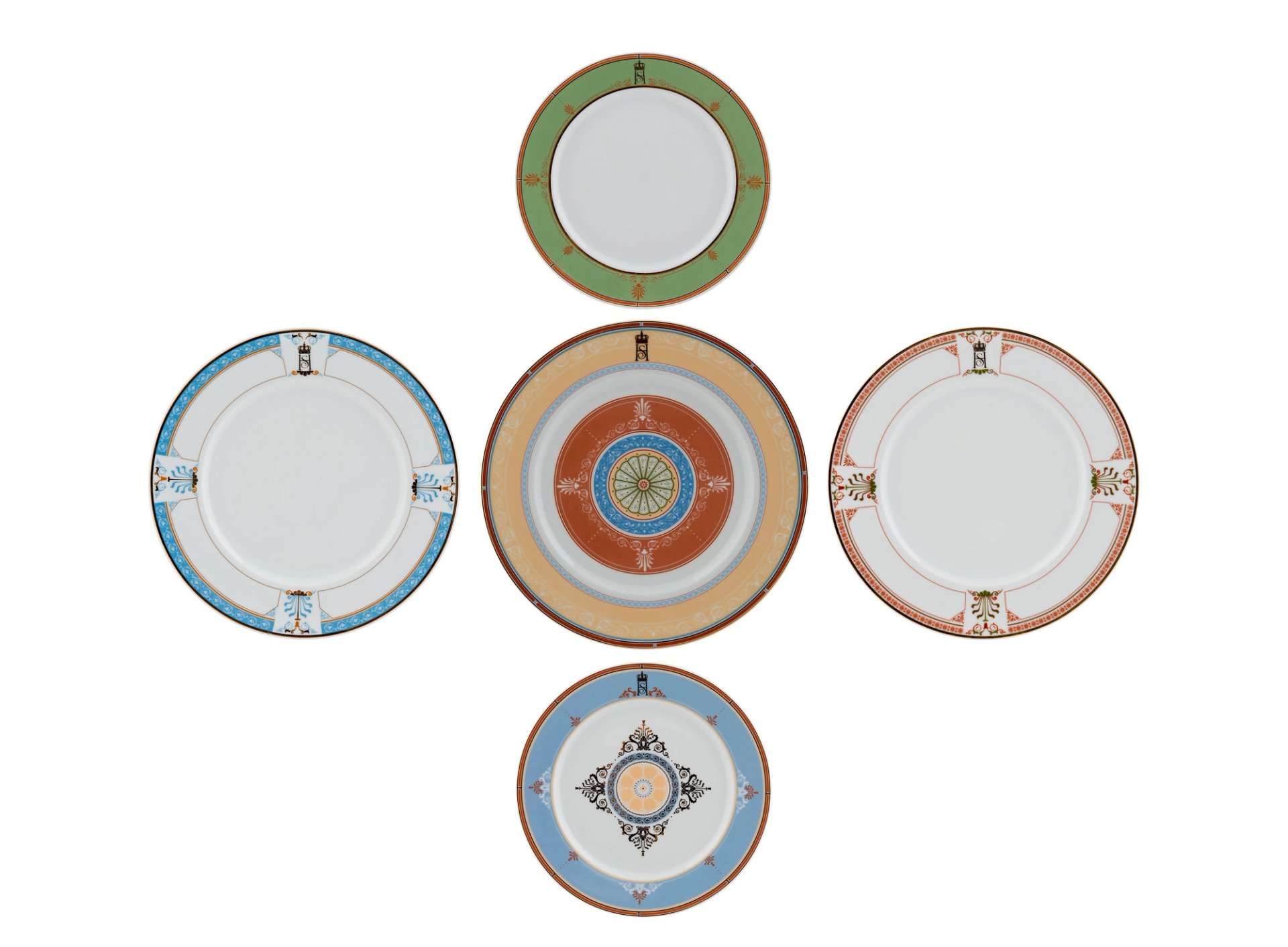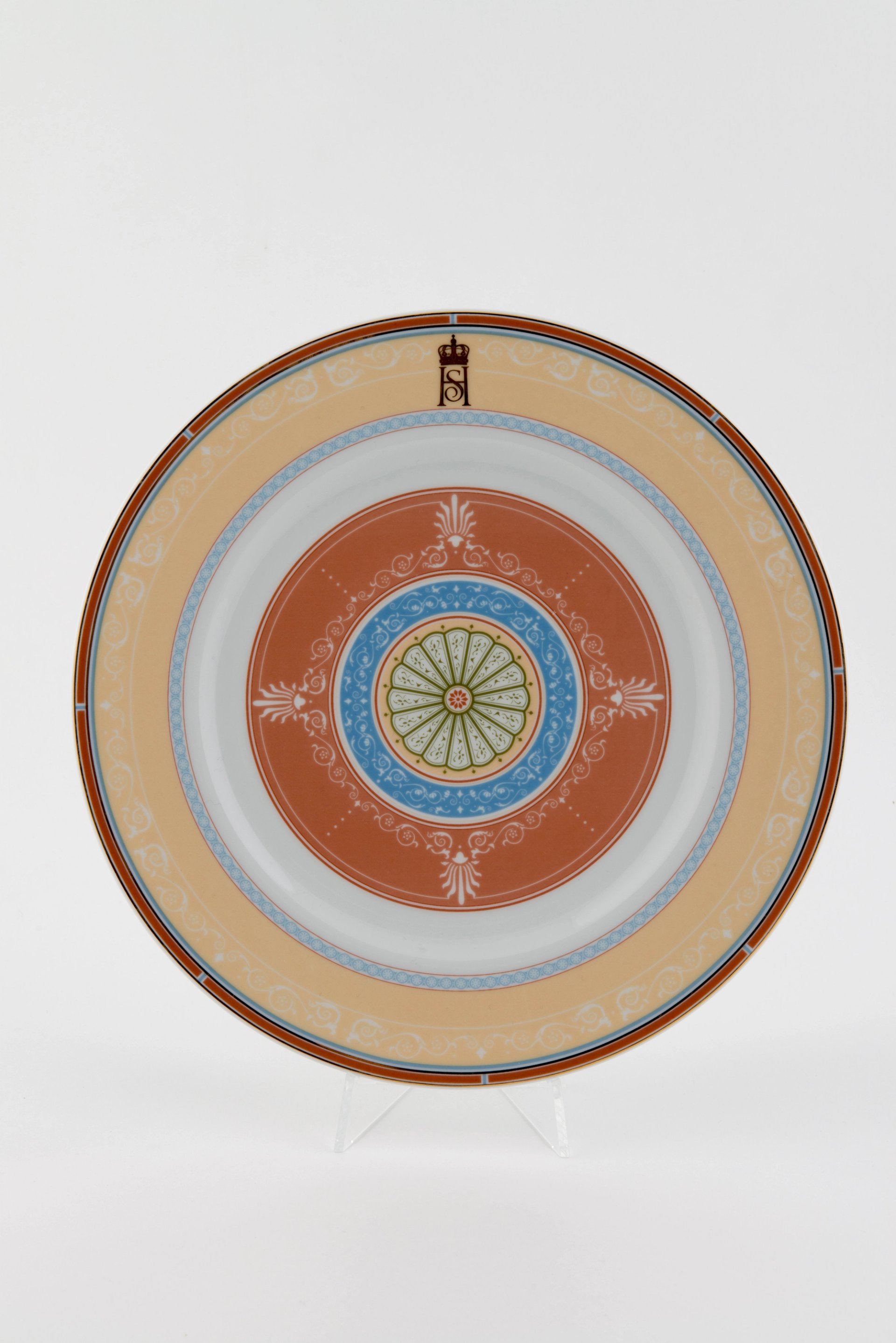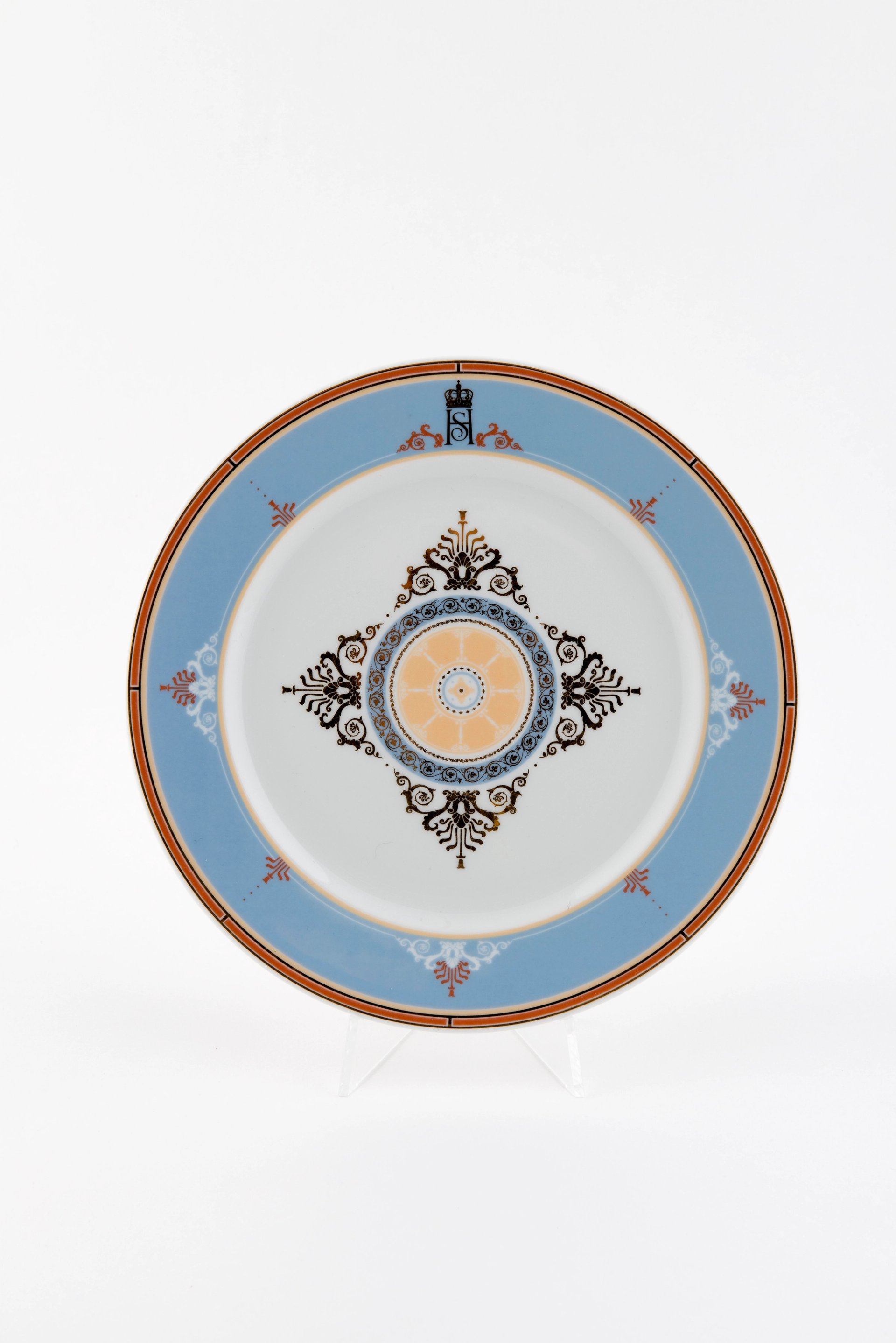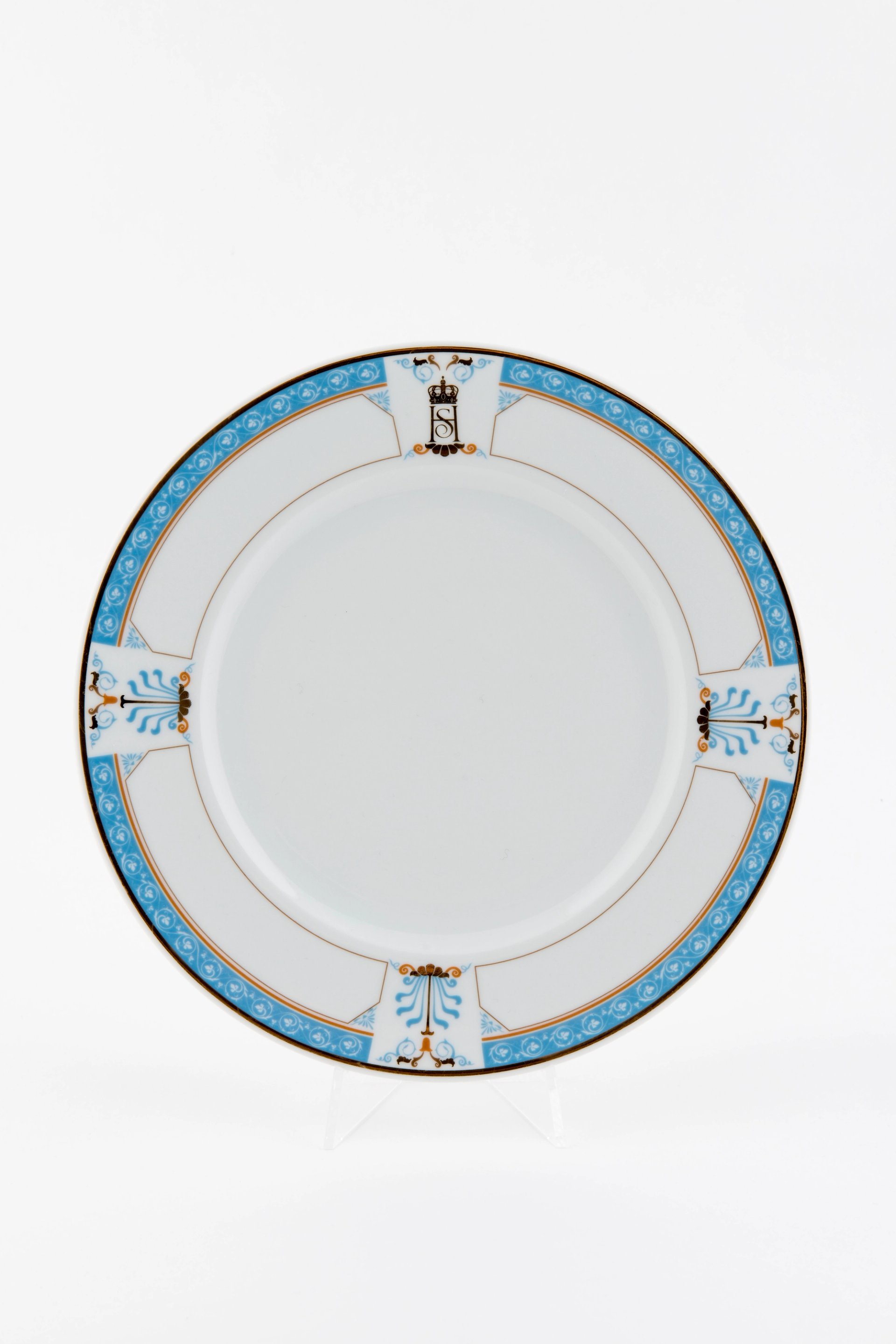 Bordene dekkes med tallerkener fra Porsgrunn Porselensfabrikk og glass fra Hadeland Glassverk. Serviset var en gave til Kongeparets 60-årsdager i 1997 og er laget spesielt til salen. Det er dekorert med mønstre som tar utgangspunkt i detaljer fra dekoren i taket.
