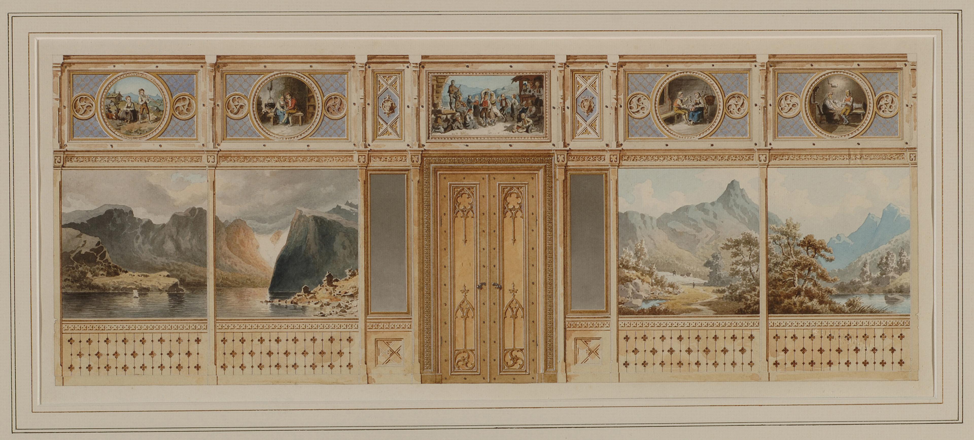 Norske kunstnere sto sentralt i utsmykningen av lystslottet. Det hadde lenge vært vanskelig å finne oppgaver her hjemme, og mange kunstnere hadde måtte reise utenlands for å livnære seg. Kong Oscar og Dronning Joséphine benyttet muligheten til å drive utstrakt mesenvirksomhet og knyttet en rekke kunstnere til prosjektet. De viktigste av disse var Joachim Frich, Adolph Tidemand og den unge Hans Gude.