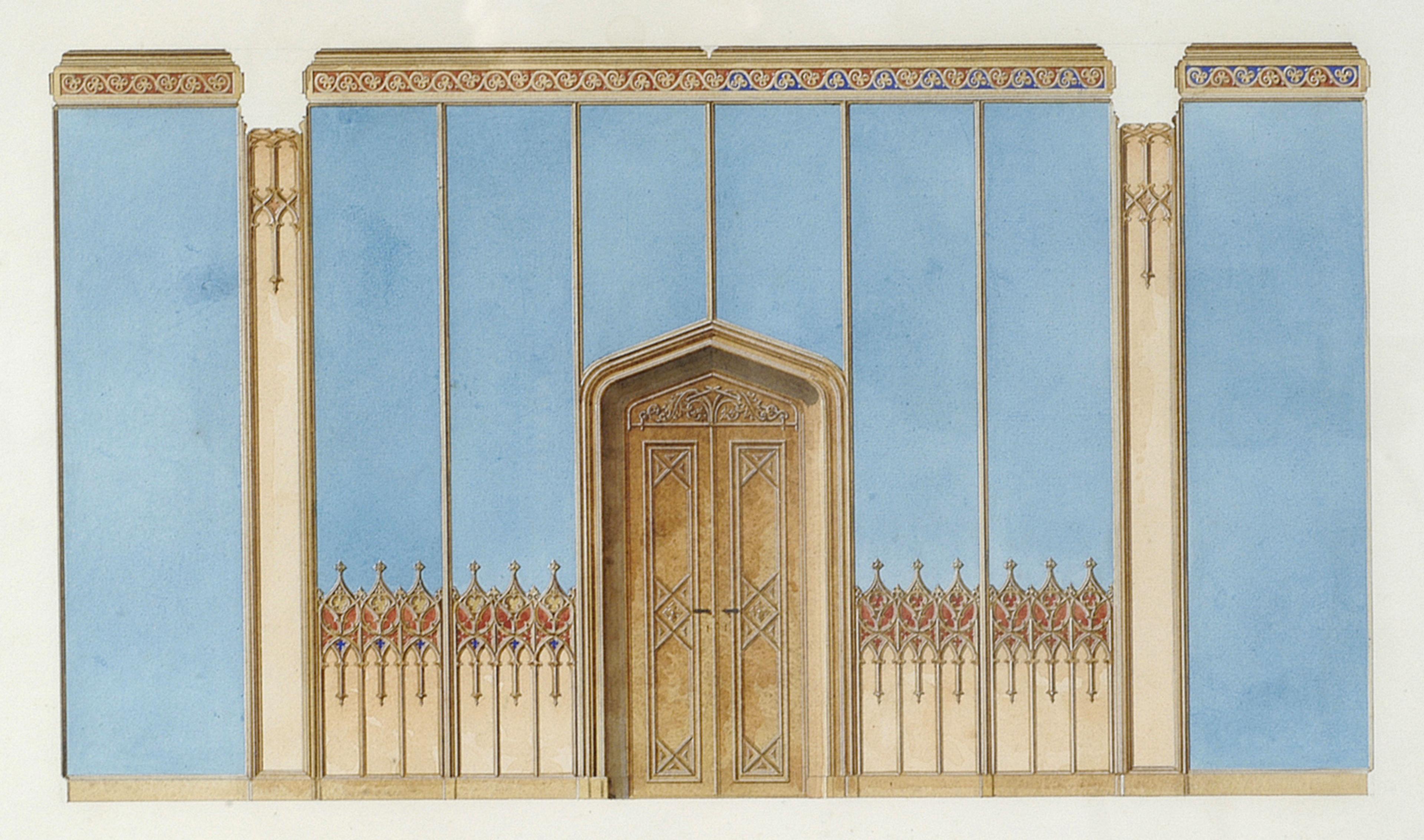 Johan Henrik Nebelong hadde assistert slottsarkitekt Linstows under innredningen av Det kongelige slott mellom 1840 og 1848. Da Slottet nærmet seg ferdig, ga Kong Oscar ham oppdraget med å tegne Oscarshall.