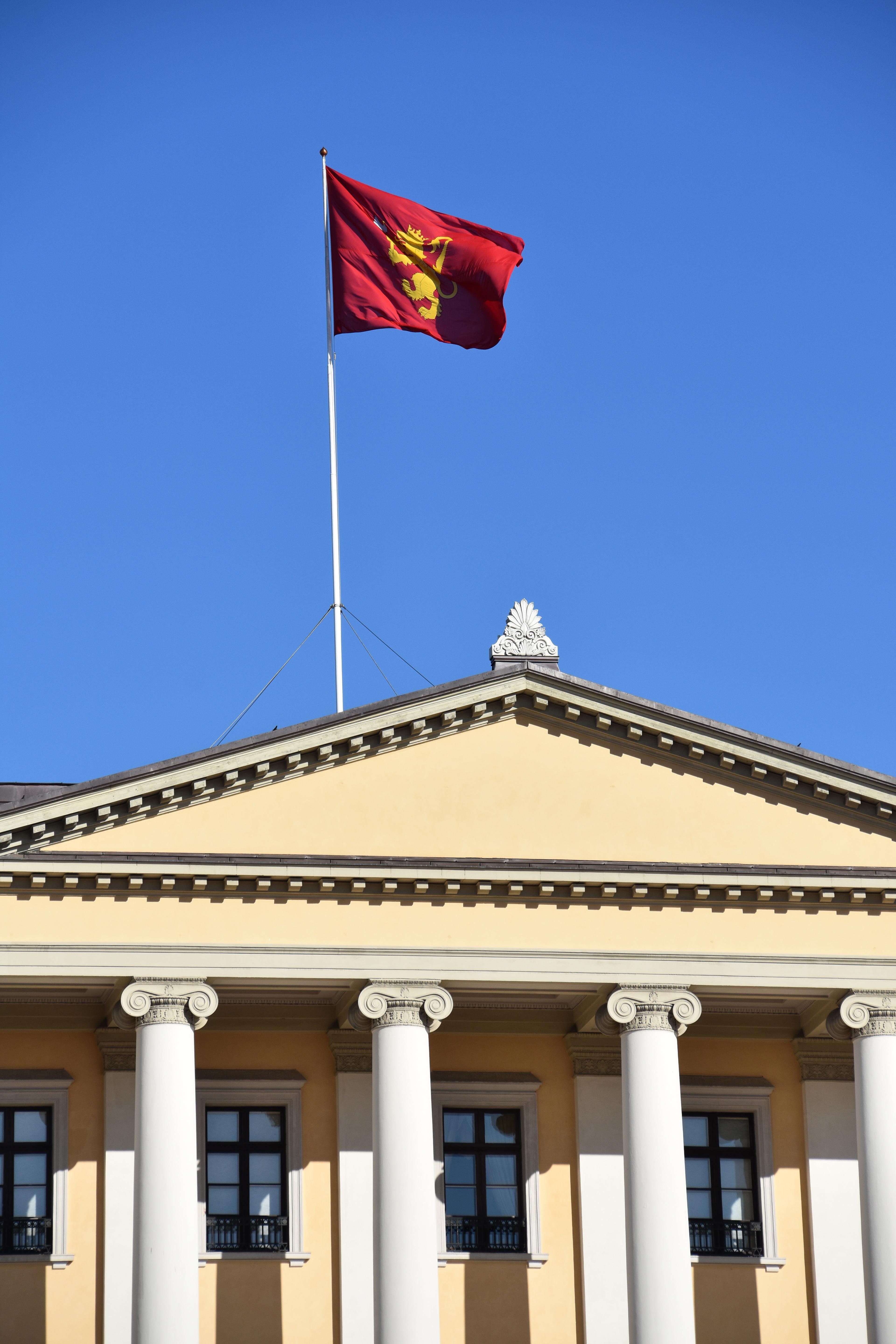 Slottet flagger med kongeflagget når Kongen er i Norge eller på norsk territorium.