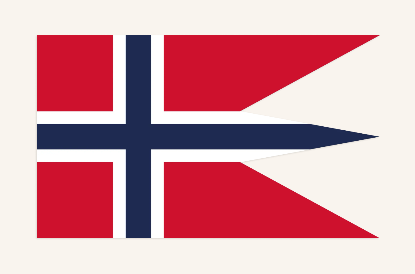 - Kronprinsflagget: Som kongeflagget, og like stort, men med splitt