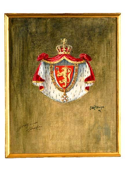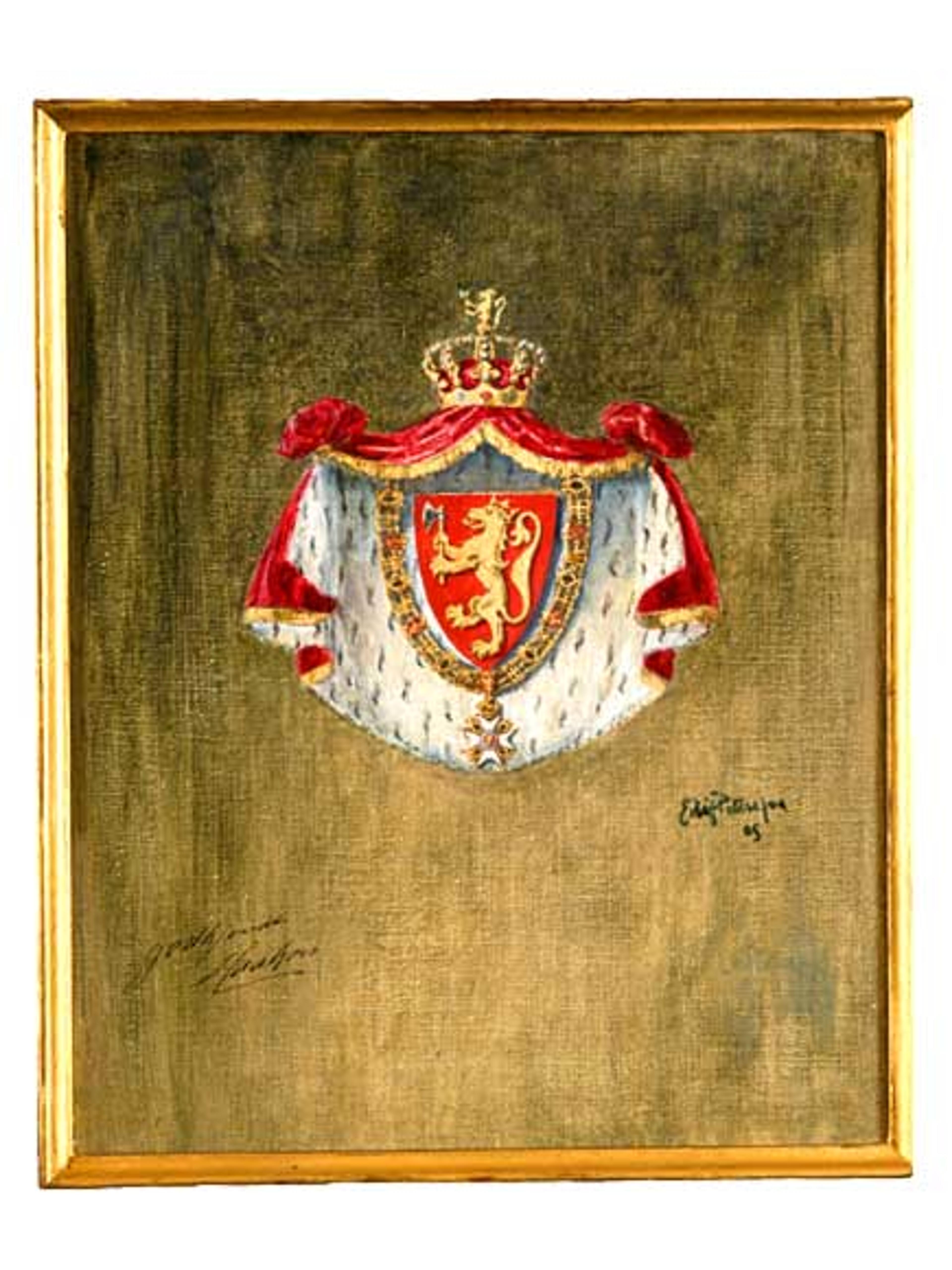 – Kongelig Resolution, hvorved bestemmes, at det til offentlig Brug bestemte Kongevaaben skal - som i et fremlagt Udkast - bestaa af Rigsvaabenets Skjold paa den kongelige Hermelinskaabe, der holdes af den norske Kongekrone. Kongevaabenets Skjold er omgivet af St. Olafsordenens Kjede. Kaaben og Kronens hætte er purpurfarvet.