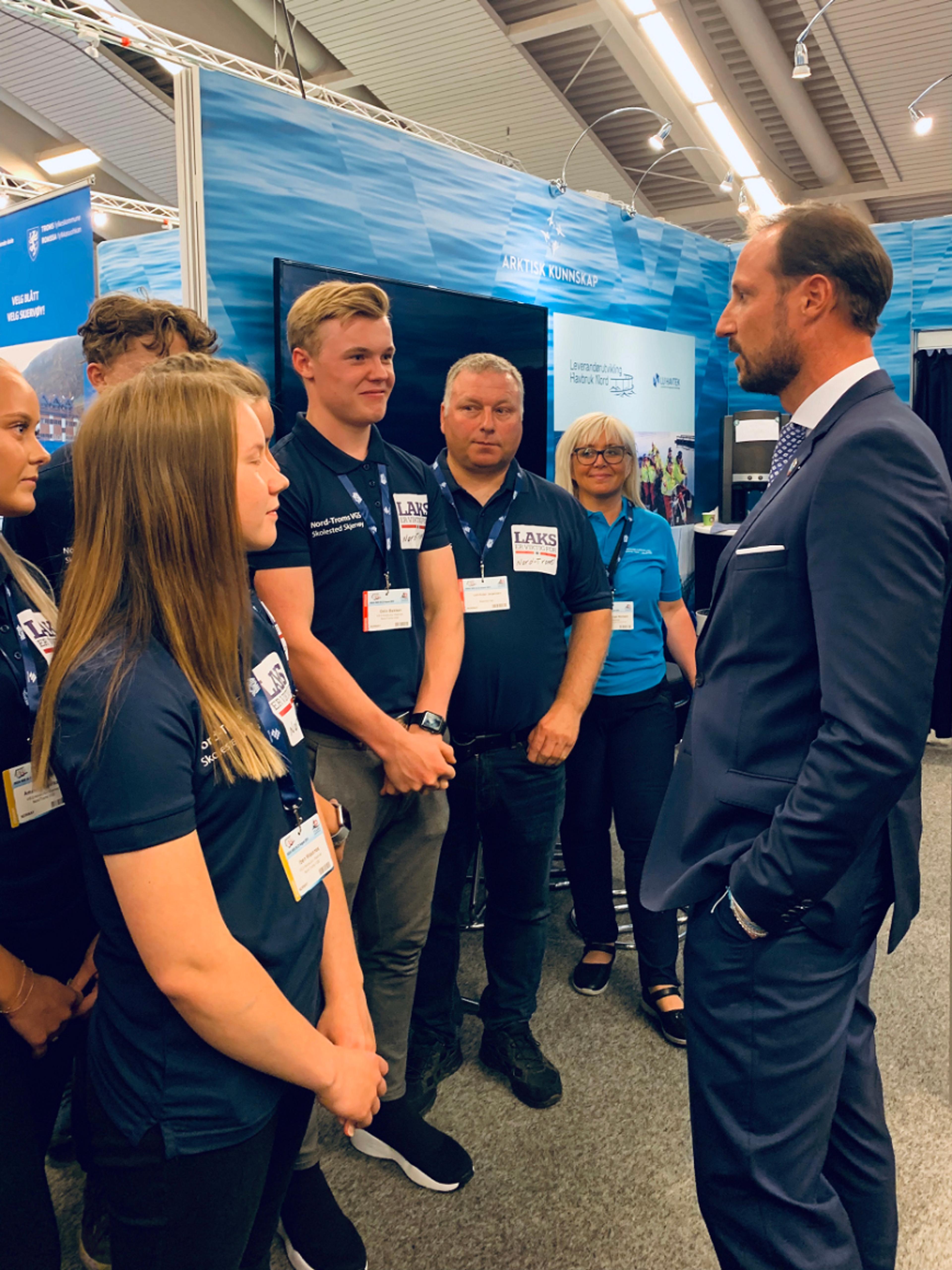 Også ungdommen var representert med egen stand under messen, og Kronprins Haakon fikk treffe elever fra Nord-Troms VGS, som går på en egen linje med fokus på aquakultur.
