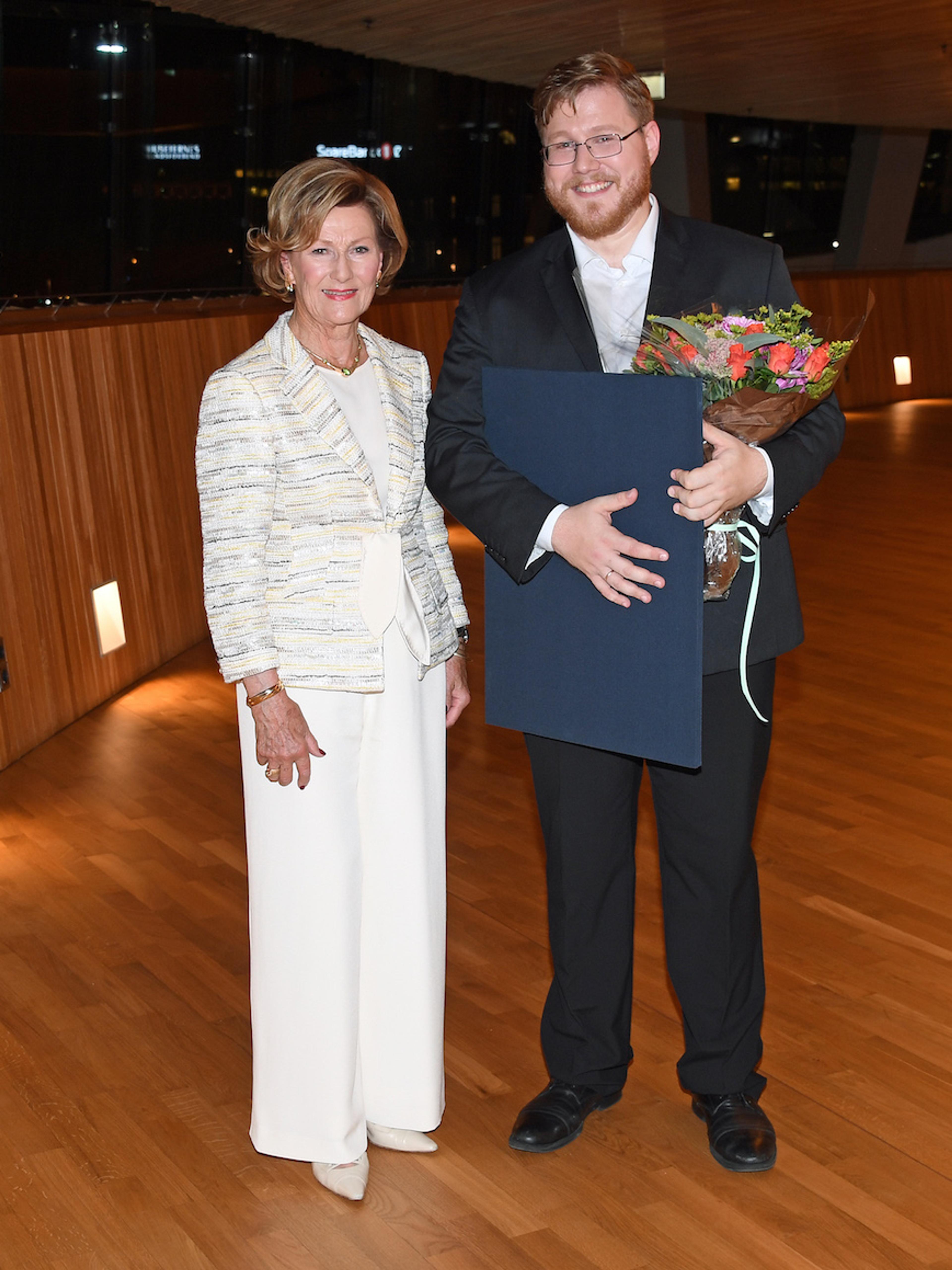 Den russiske barytonen Sergey Kaydalov gjekk sigrande ut av finalen i Dronning Sonja Internasjonale Musikkonkurranse 2019 fredag kveld. Hennar Majestet Dronninga overrekte sjølv prisen til vinnaren.