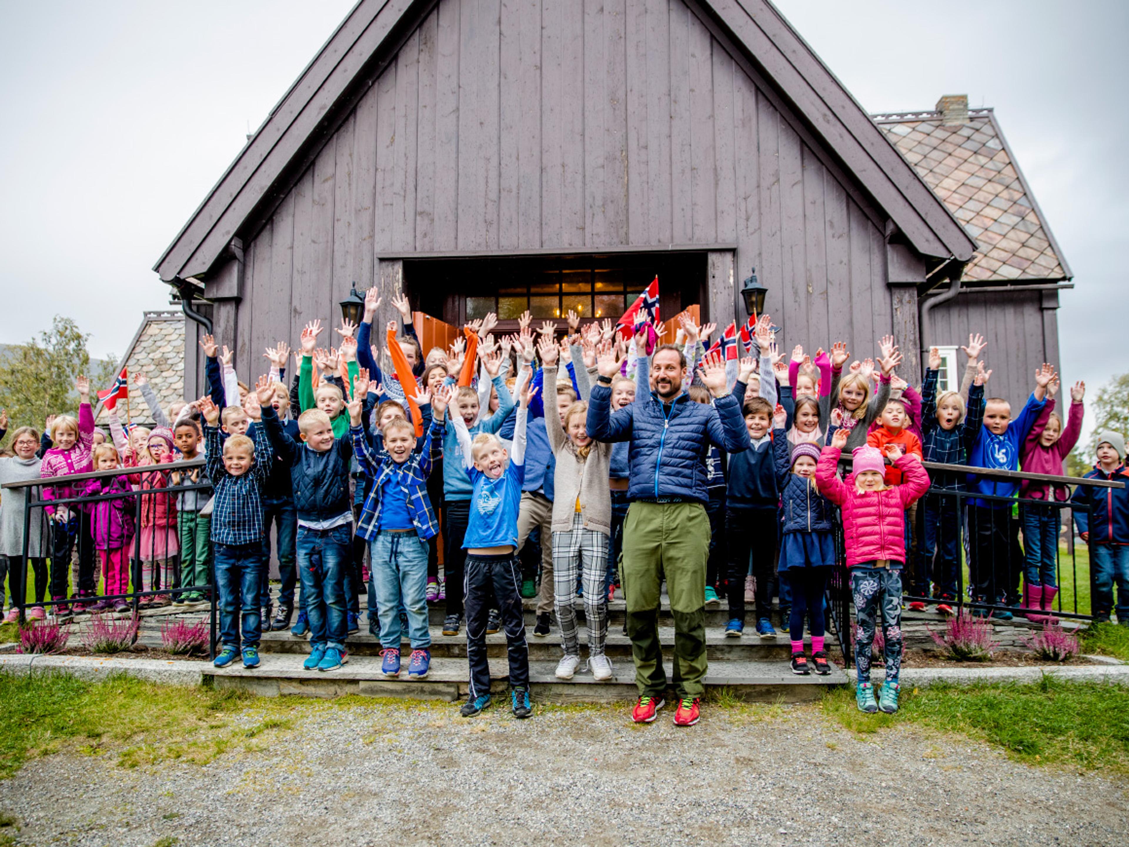 Kronprins Haakon besøkjer Lesja kyrkje, der 50 barn song for Kronprinsen. Foto: Stian Lysberg Solum / NTB scanpix