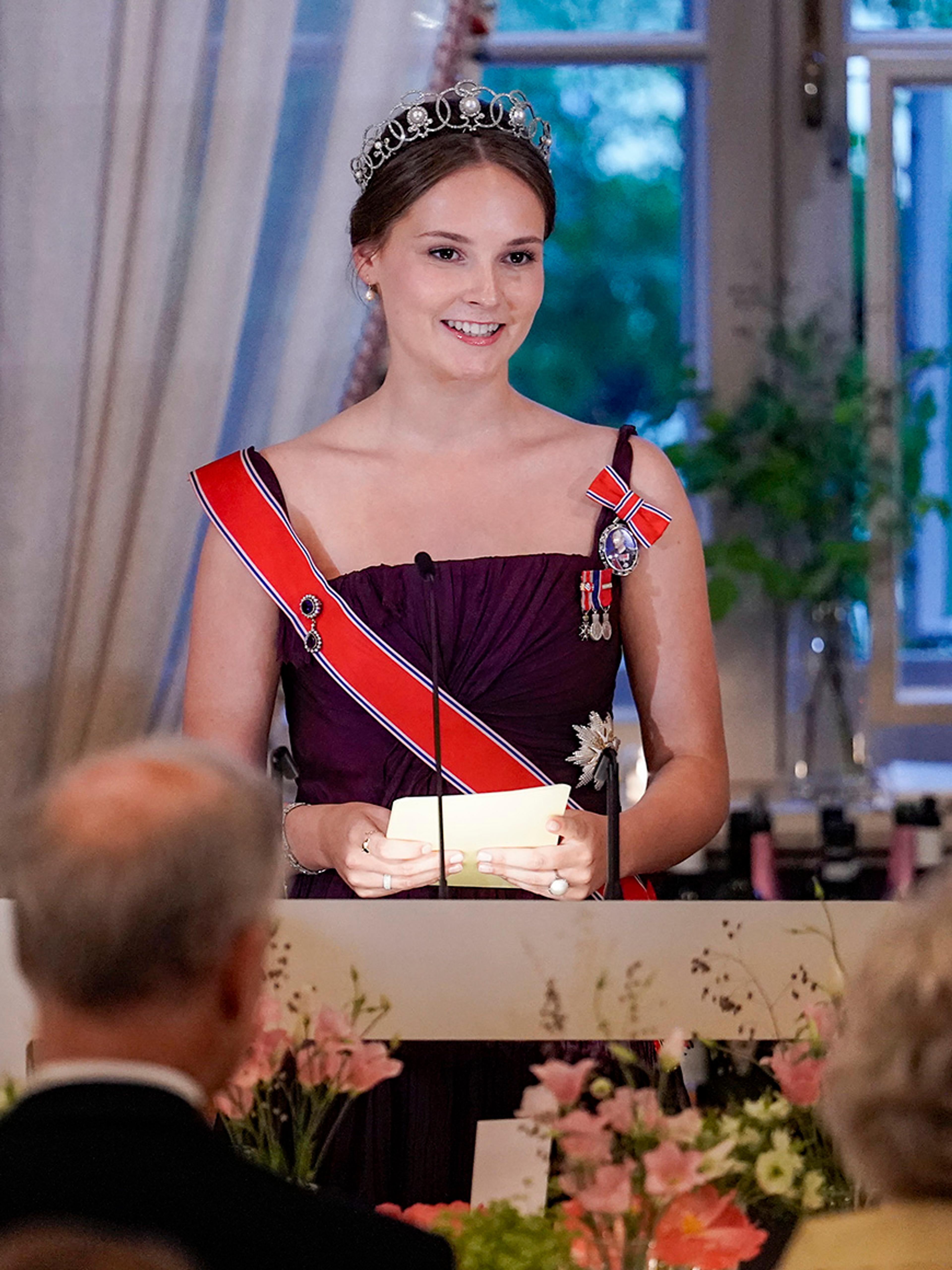 Rundt 200 gjester er samlet på Slottet i kveld for å feire Hennes Kongelige Høyhet Prinsesse Ingrid Alexandras myndighetsdag. Prinsessen brukte sin tale til å snakke om det fine med å vokse opp i Norge og at alle har en plass i dette samfunnet.