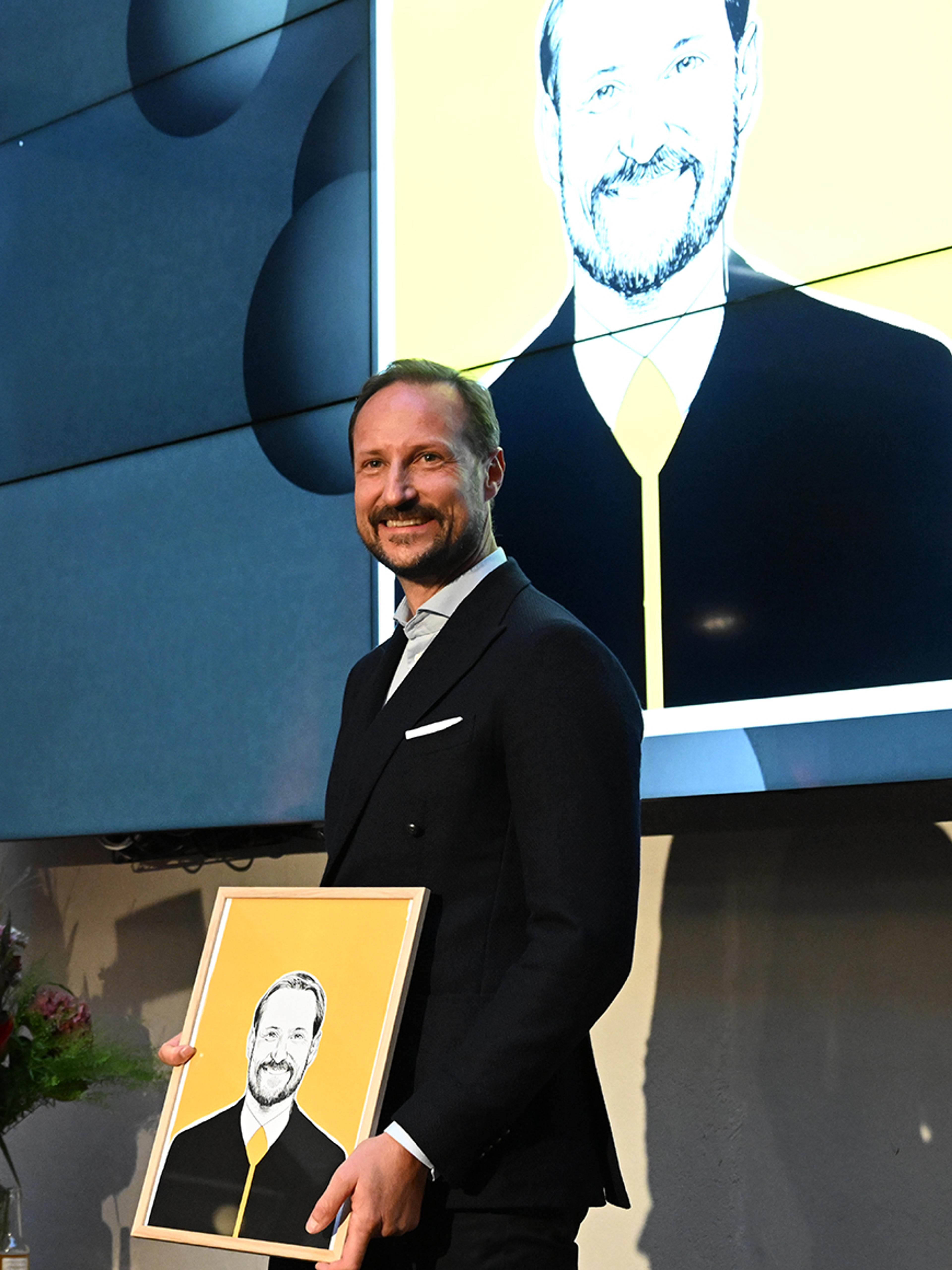 Til slutt bad Mesh-leiar og grunnleggjar Anders Mjåset Kronprins Haakon komme opp på scenen. Der vart Kronprinsen heidra med ein plass i Mesh Hall of Fame for den mangeårige innsatsen sin for innovasjon og gründerverksemd.