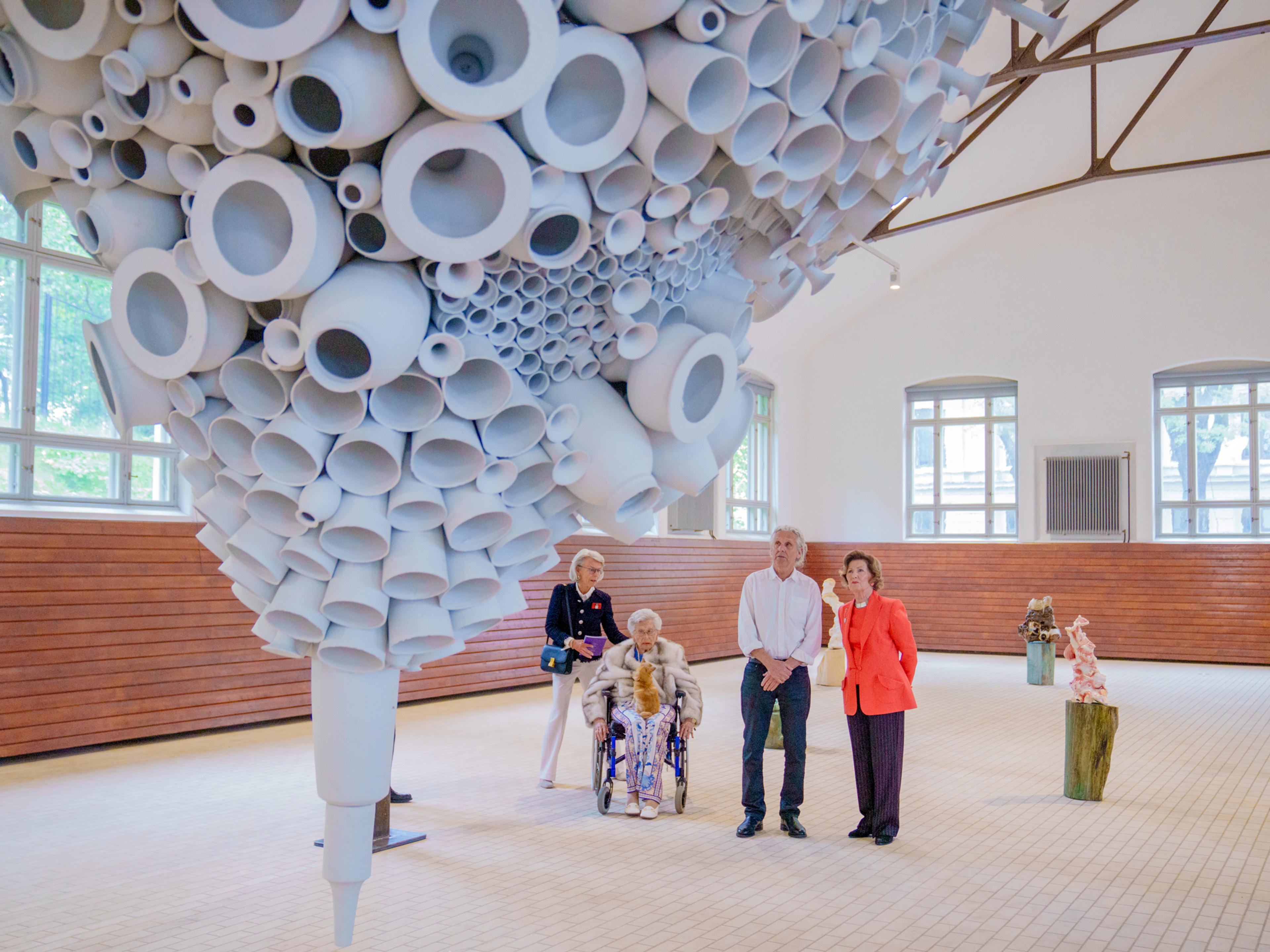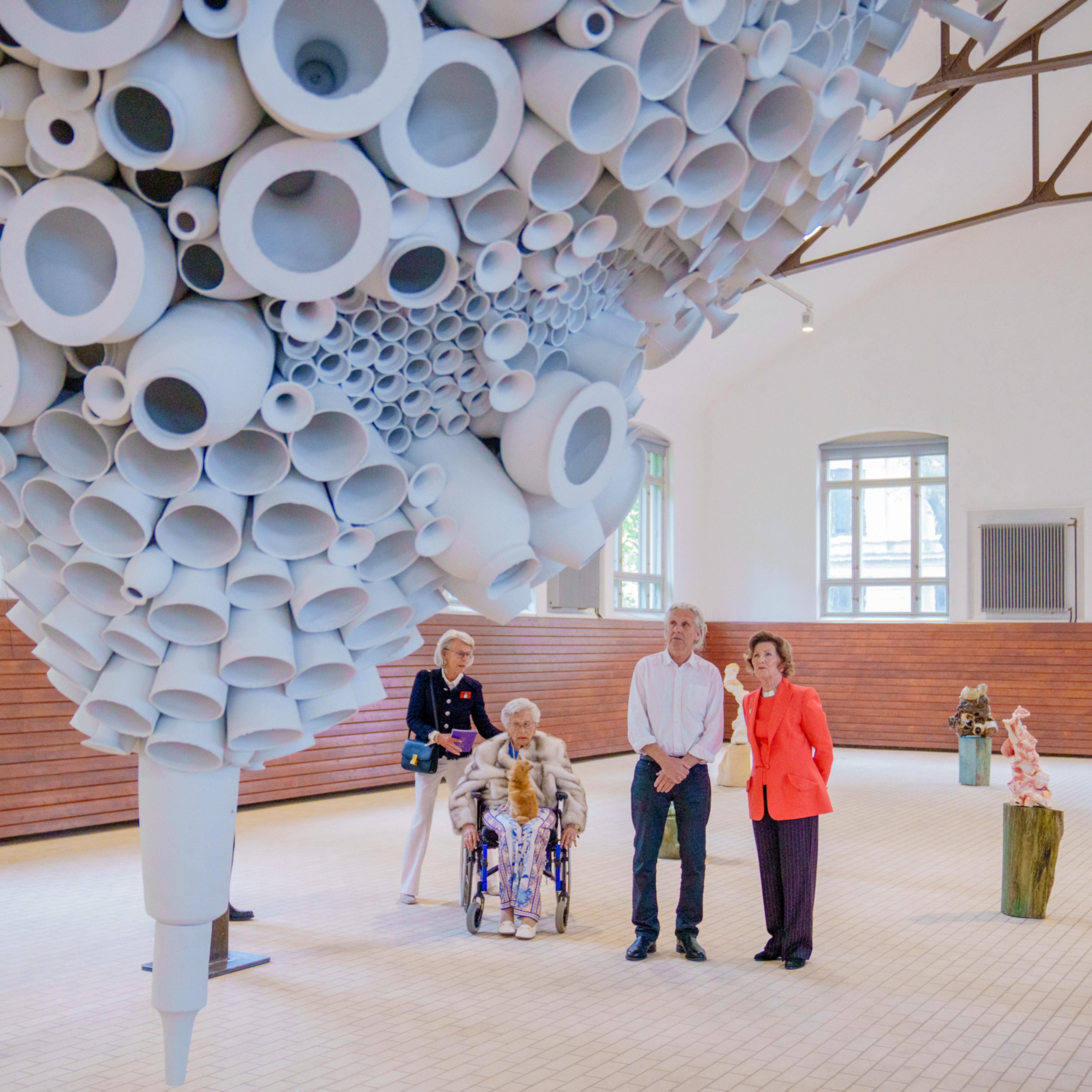 Nå utvider utstillingen med samtidskeramikk av fire veletablerte kunstnere i Ridehuset. Dronning Sonja foretok åpningen tirsdag kveld, og Prinsesse Astrid, fru Ferner var også til stede.