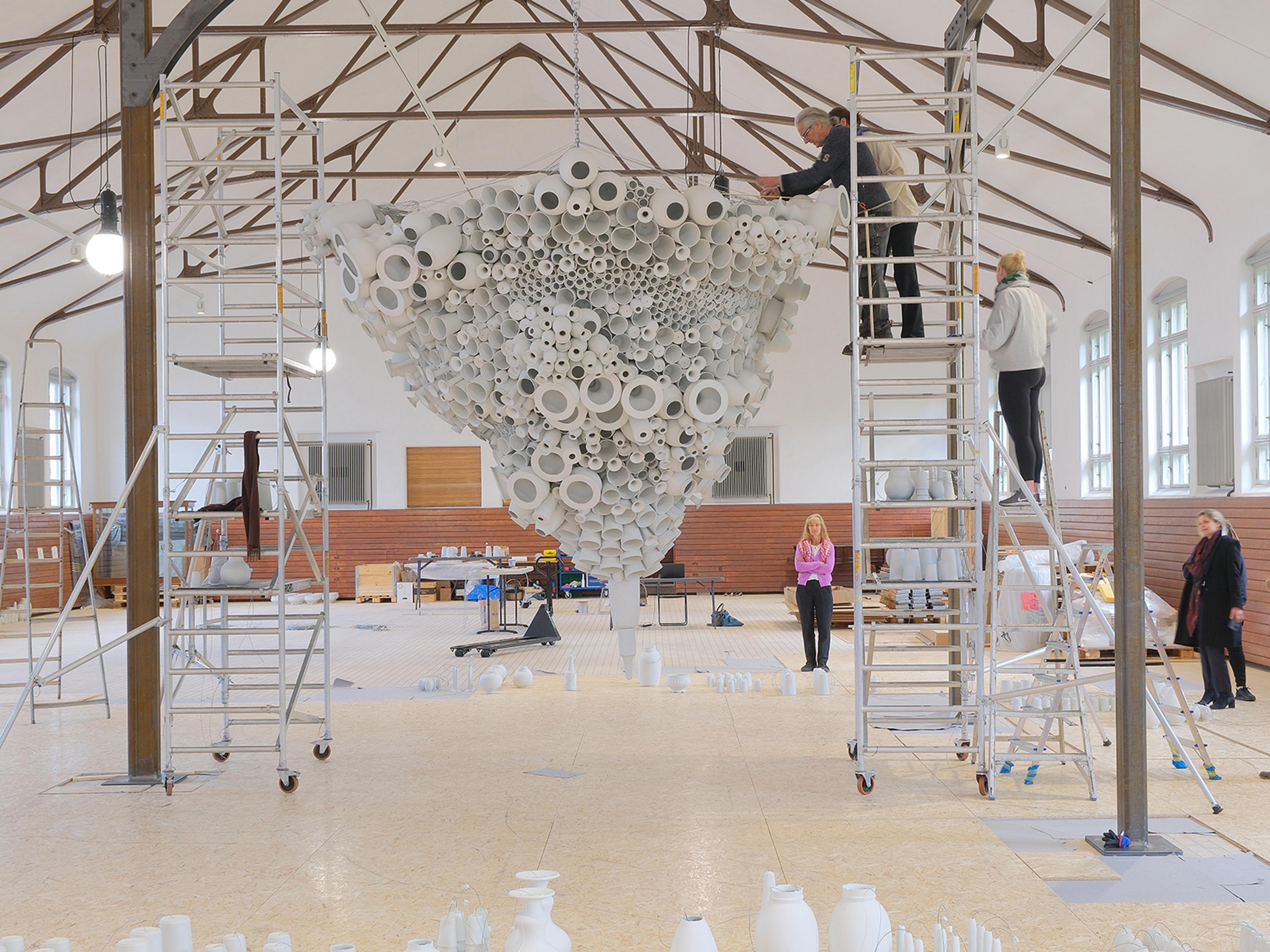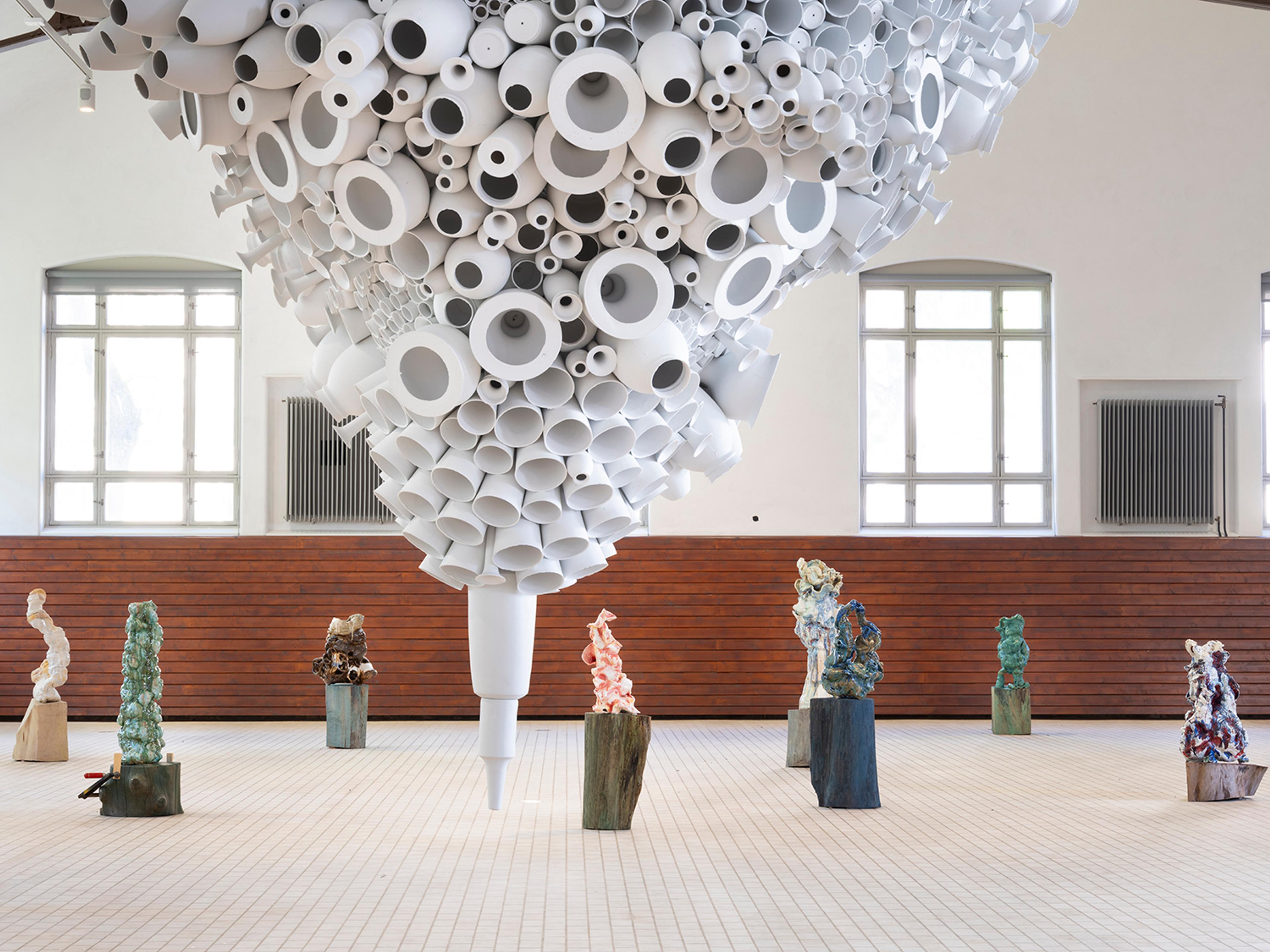 I utstillingen i Ridehuset har fire kunstnere gjort klassiske former om til monumentale installasjoner og skulpturer.