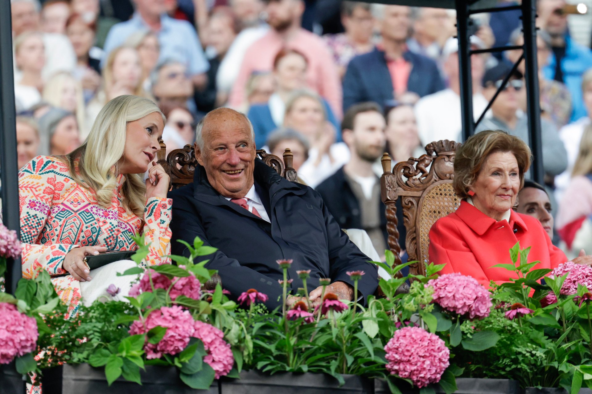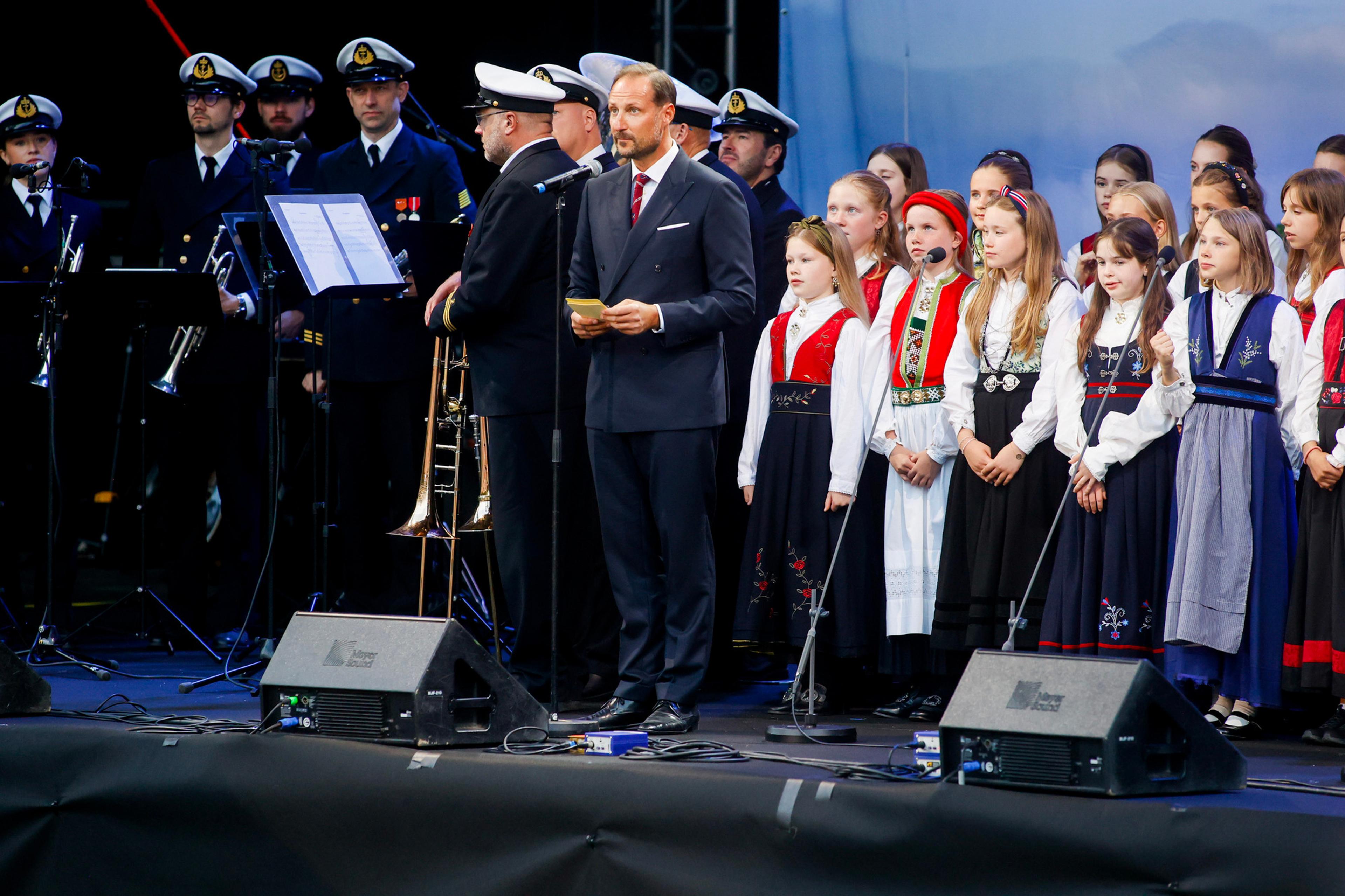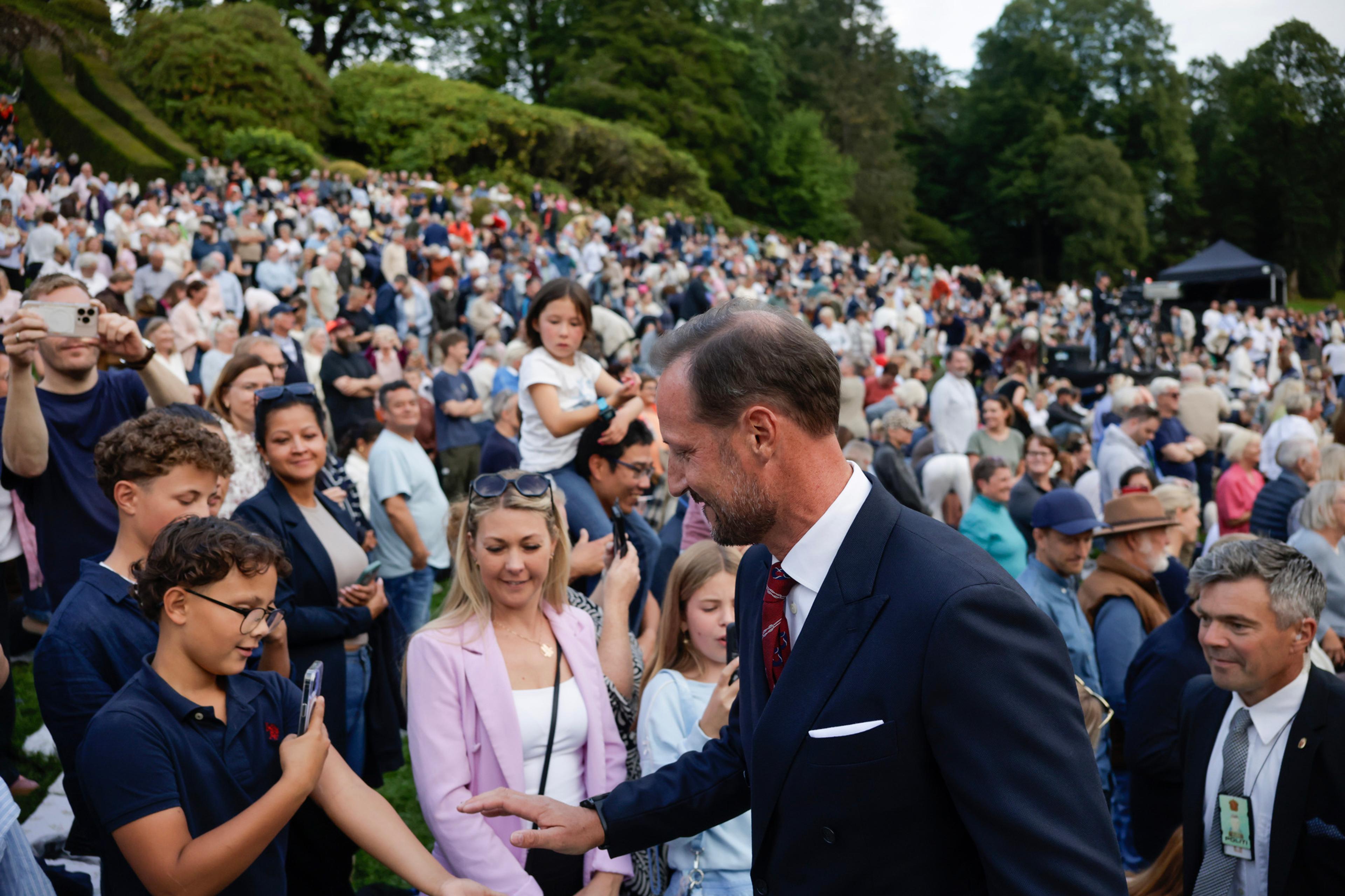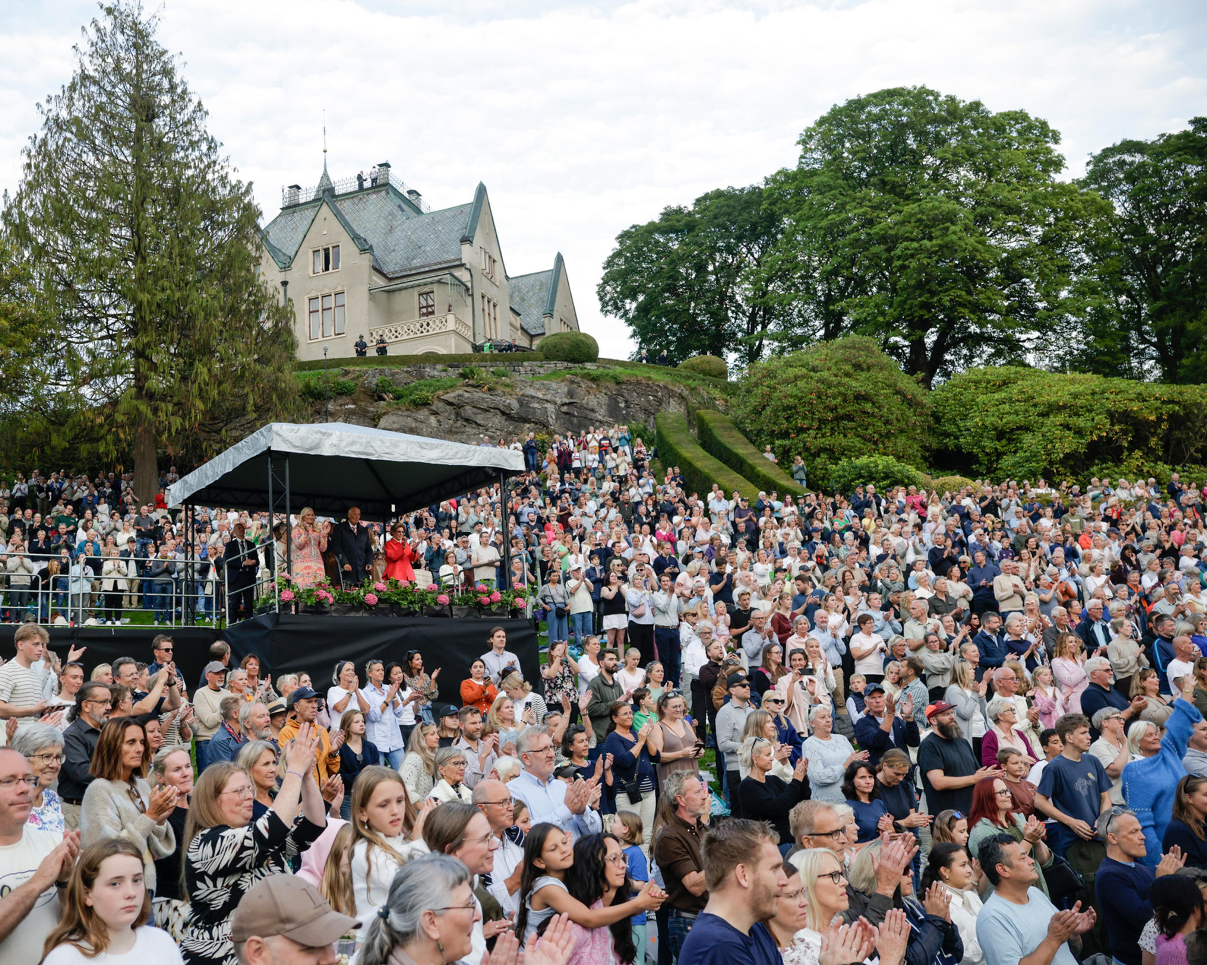 Kronprinsparet var også til stede under konserten, og Kronprins Haakon ønsket velkommen til feiringen: - Som dere har sett over lang tid, har Gamlehaugen blitt restaurert i flere år. Nå kan vi endelig pakke ut eiendommen, etter mange år bak plast og stillas. Det er hyggelig at folk kan komme på besøk igjen, siden dette også er et viktig museum, sa Kronprins Haakon fra scenen.