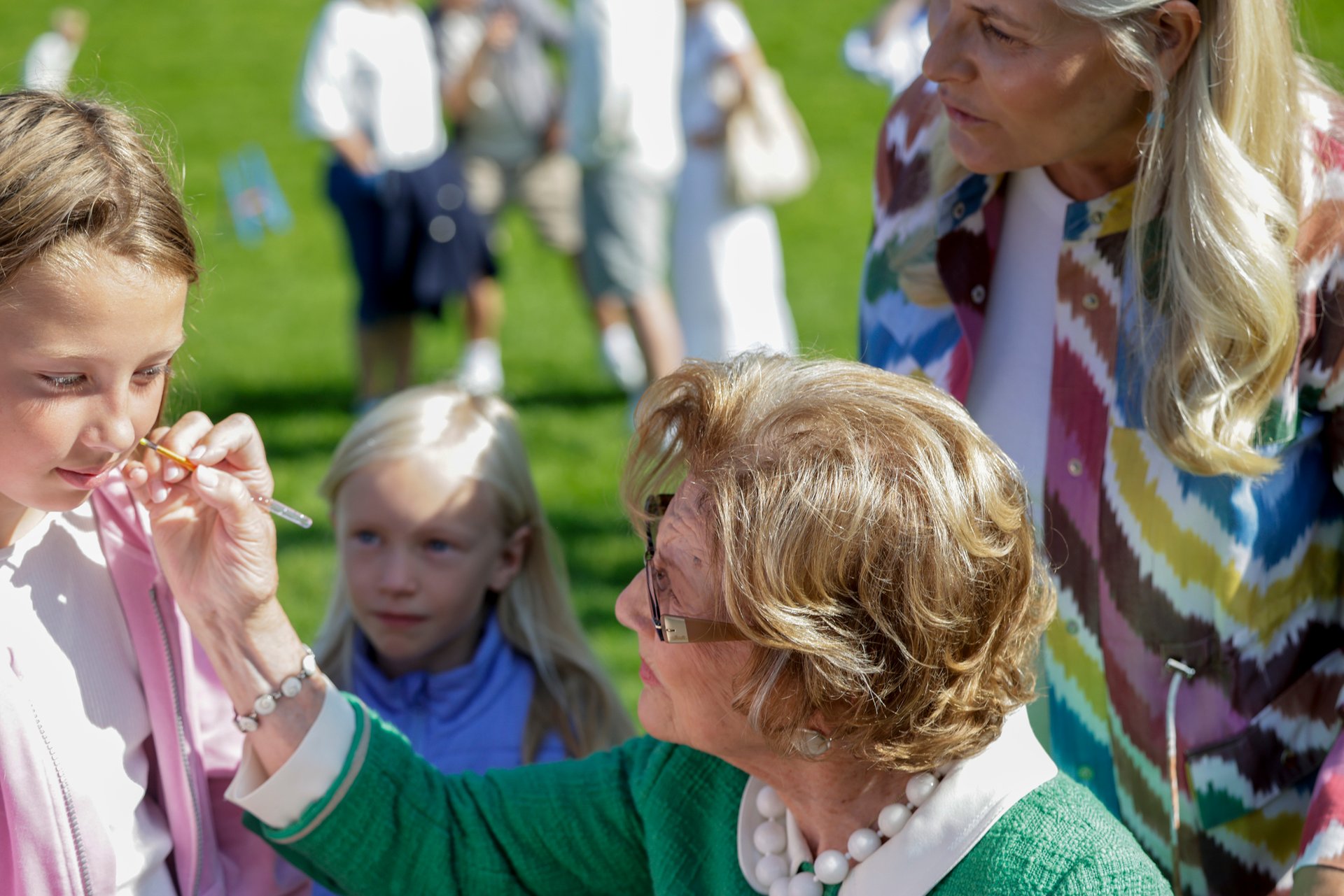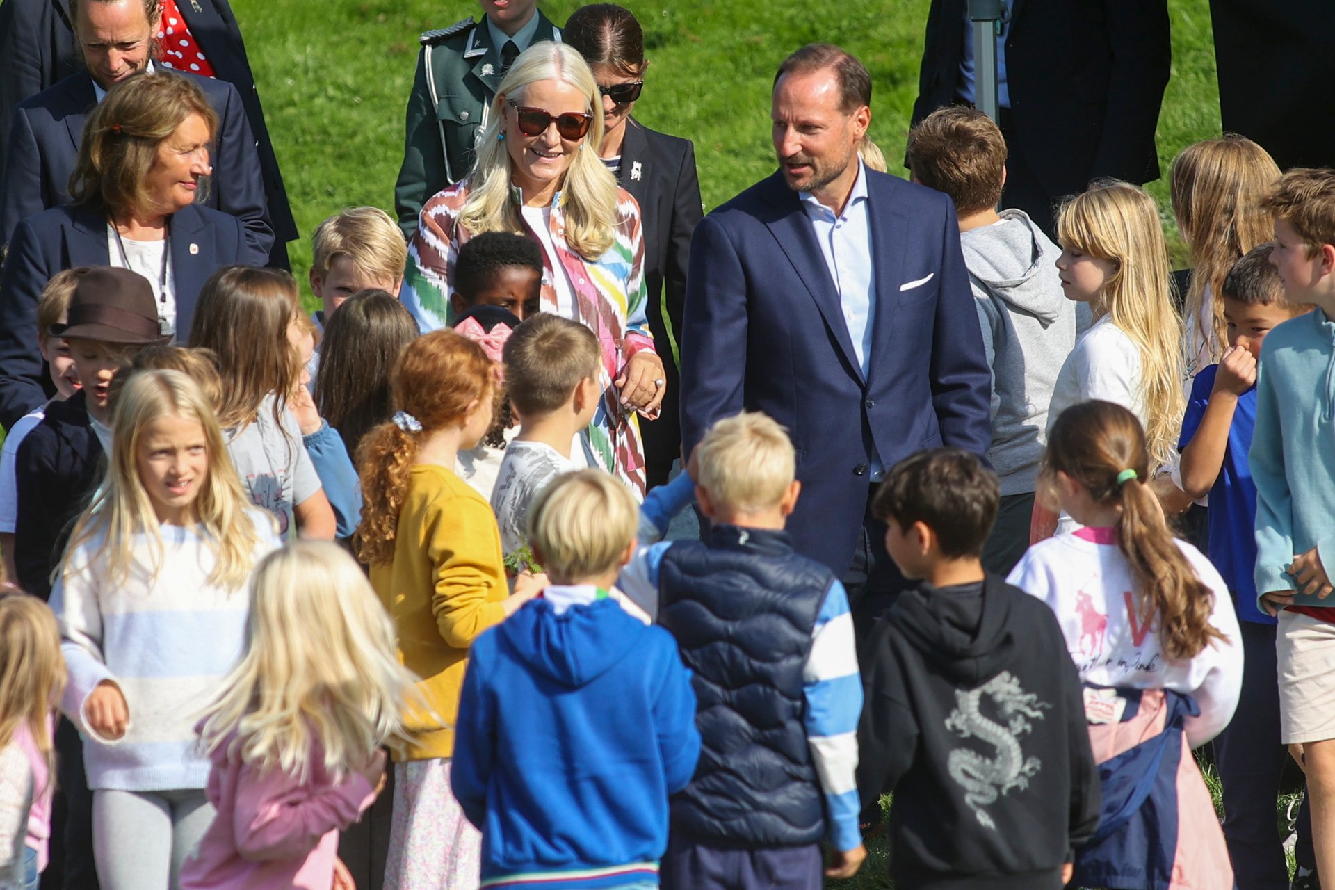 Tidligere på dagen deltok rundt 260 fjerdeklassinger fra fem ulike skoler i Bergen i et eget jubileumsopplegg i parken på Gamlehaugen. Sammen med Garden ble det lek og moro, og til og med Bli med-dans. Dronning Sonja og Kronprinsparet fikk prøve seg både på ansiktsmaling, erteposekasting og ringspill sammen med skoleelevene.