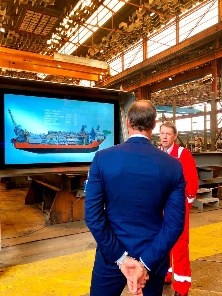 Kronprinsen fikk også orientering om flere av verftets pågående prosjekter og innsikt i hvordan Kværner omstiller seg for å kunne bidra til det grønne skiftet, blant annet ved å kunne bidra til satsningen på havvind.