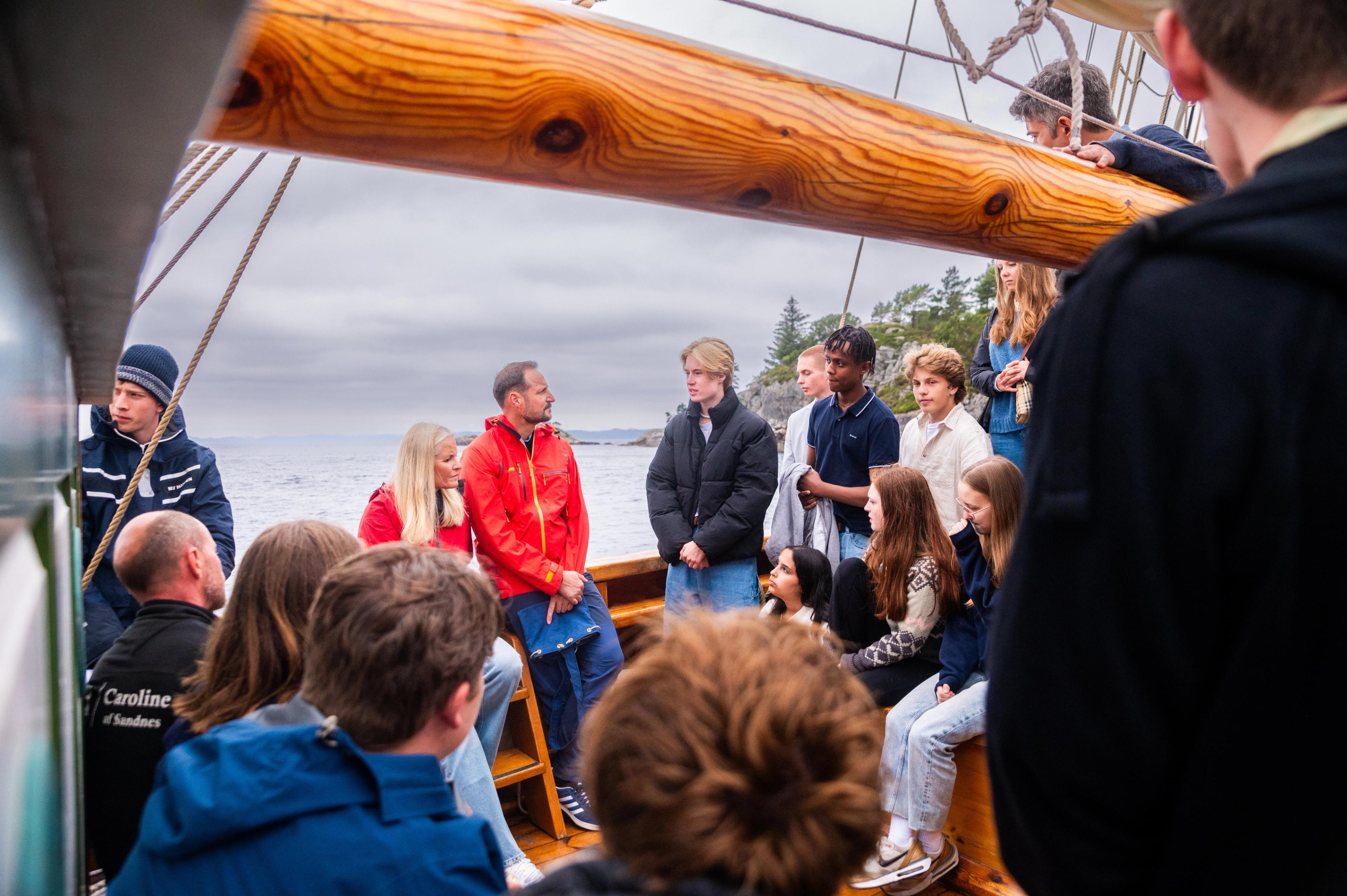 På vei inn mot Moster møtte Kronprinsparet og KS Norge på MS Caroline af Sandnes. Ombord i skipet var rundt 20 ungdommer som skulle delta på Mostratinget for ungdom. Her ble undgom fra hele landet samlet for å diskutere hva som er de viktigste sakene og utfordringene for ungdommer i fremtiden, og hvilke verdier det er viktig å ta med seg videre.