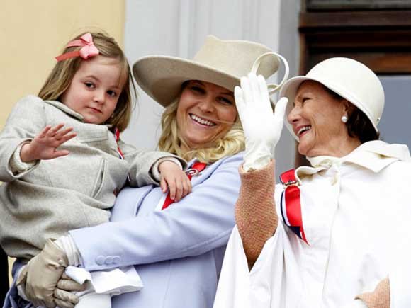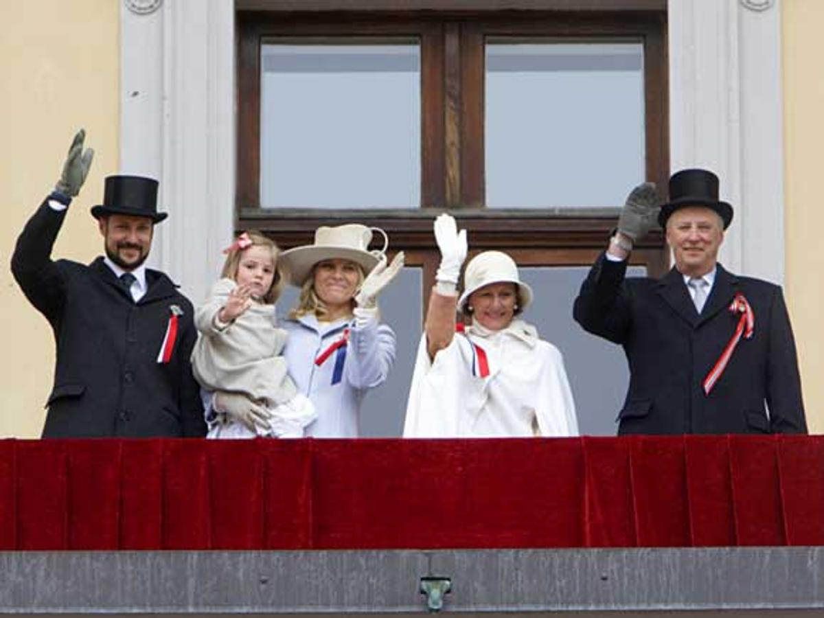 Klokken 10:30 i formiddag var Kongefamilien på plass Slottsbalkongen for å ta i mot barnetoget i Oslo. Kronprinsfamilien hadde startet dagen på Skaugum, der de møtte barnetoget i Asker.
