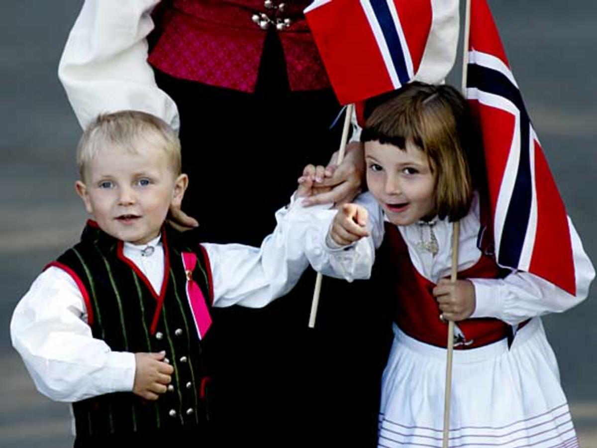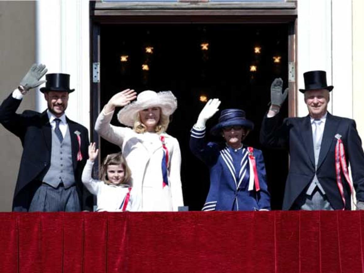 Tradisjonen tro hilser Kongefamilien barnetoget i Oslo fra Slottsbalkongen fra 10.30 i dag. Kronprinsfamilien tok også i mot barnetoget i Asker ved Skaugum tidligere i dag morges.