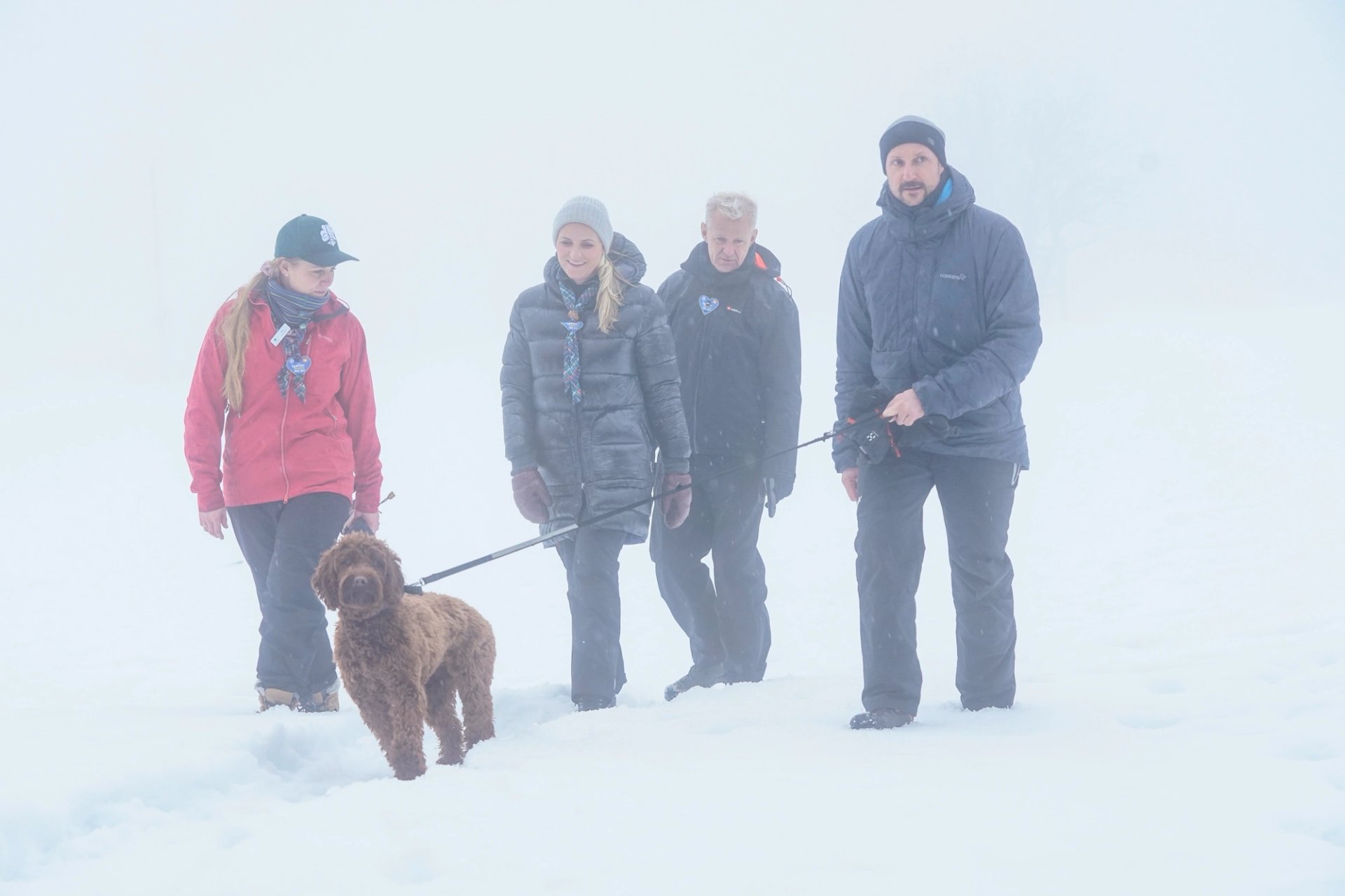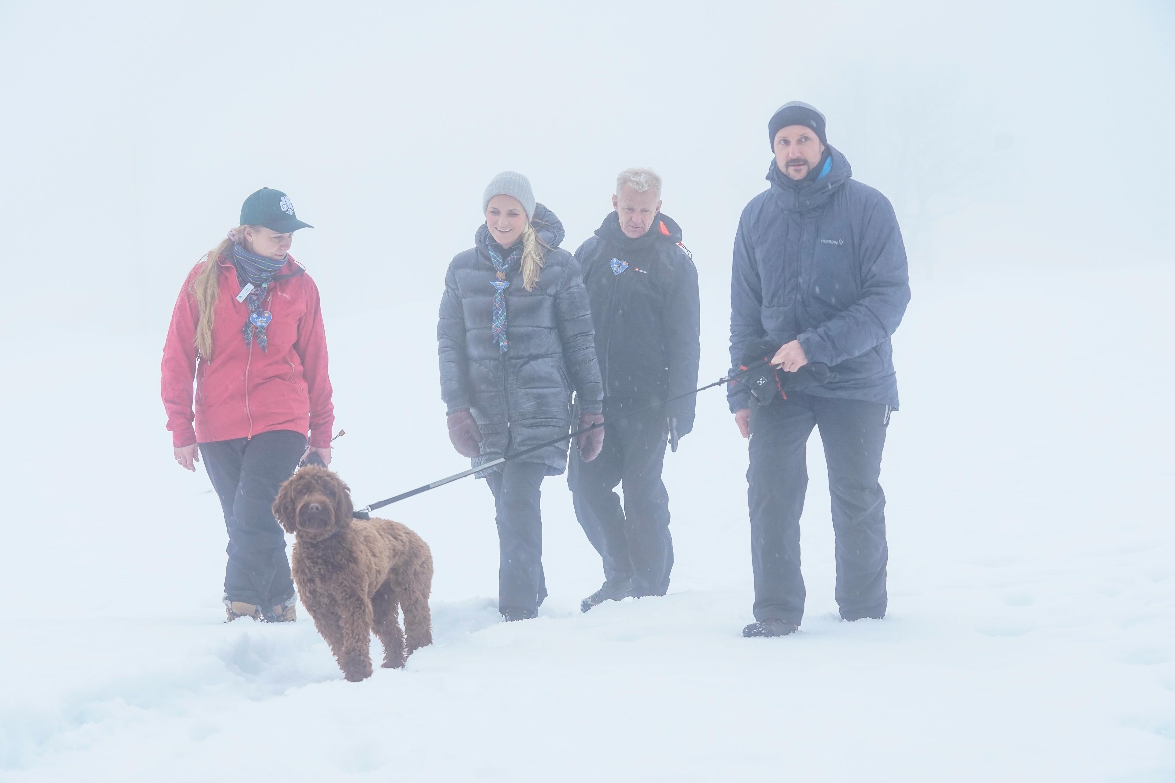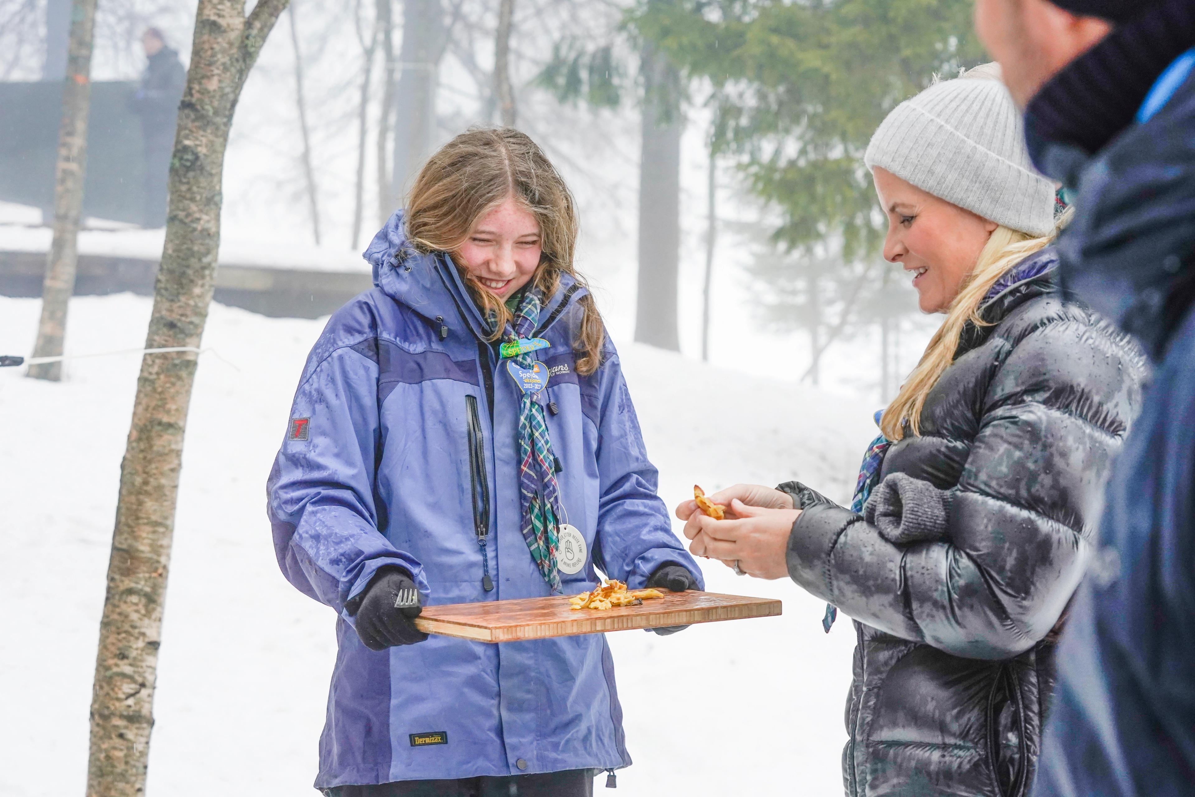 Rundt et leirbål ved Øvresetertjern i Nordmarka møtte Kronprins Haakon og Kronprinsesse Mette-Marit generalsekretær i Norges speiderforbund Stine Schultz Heireng og generalsekretær i Flyktninghjelpen Jan Egeland og flere av de unge speiderne som tar del i årets aksjon.