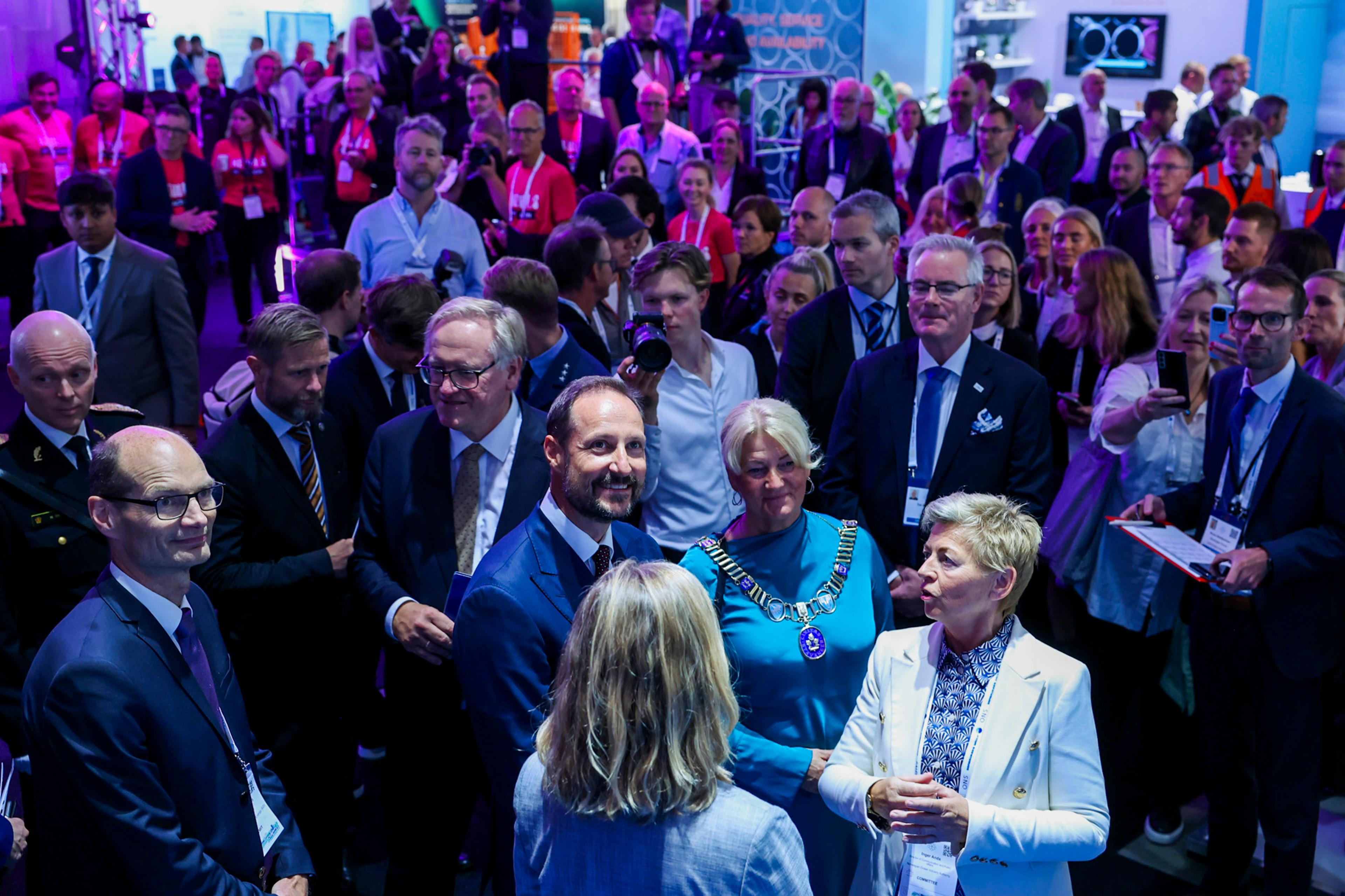 Etter åpningsseremonien fikk Kronprinsen en omvisning i årets ONS-utstilling. Der fikk han møte og snakke med mange av de som jobber innen ulike deler av energibransjen.