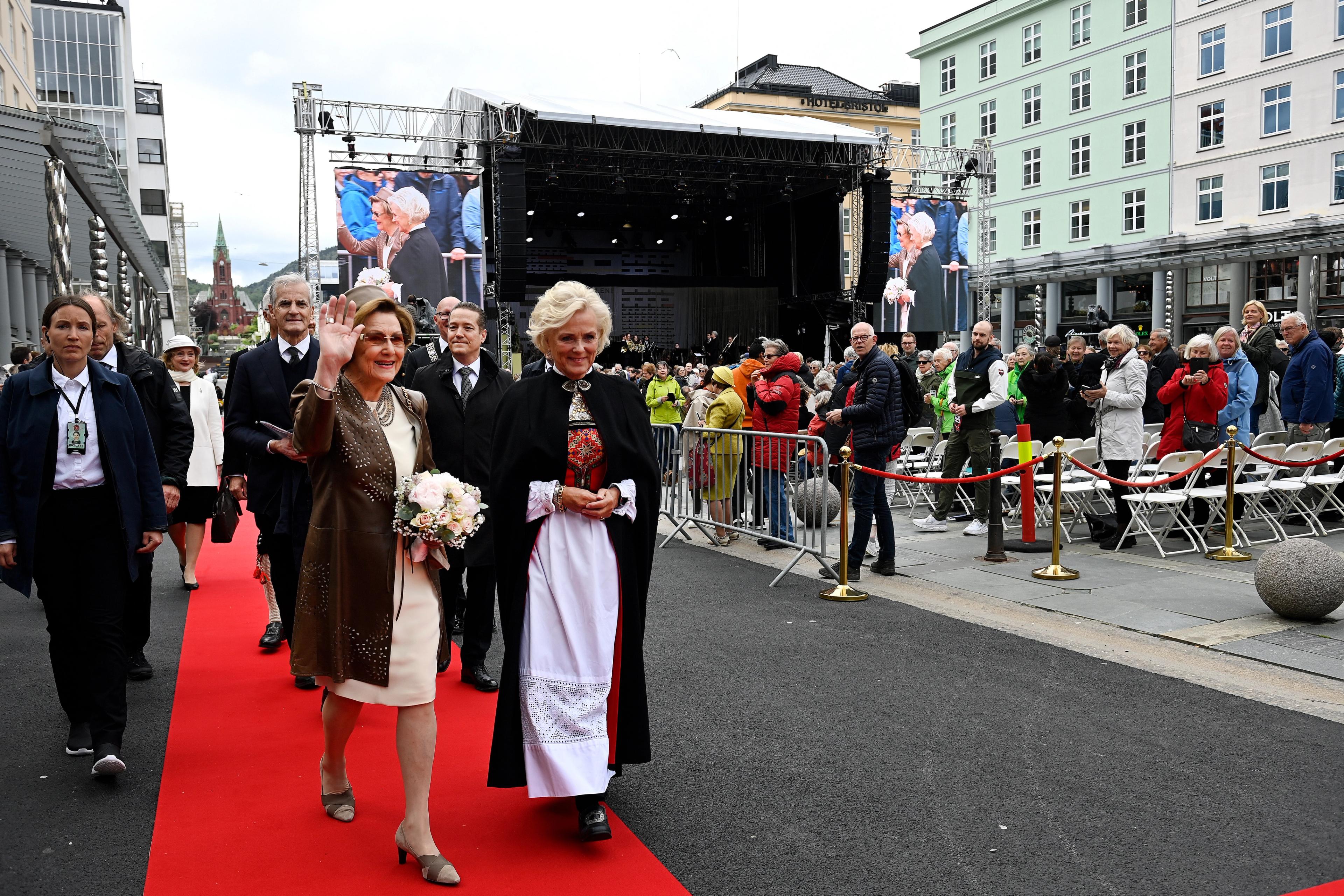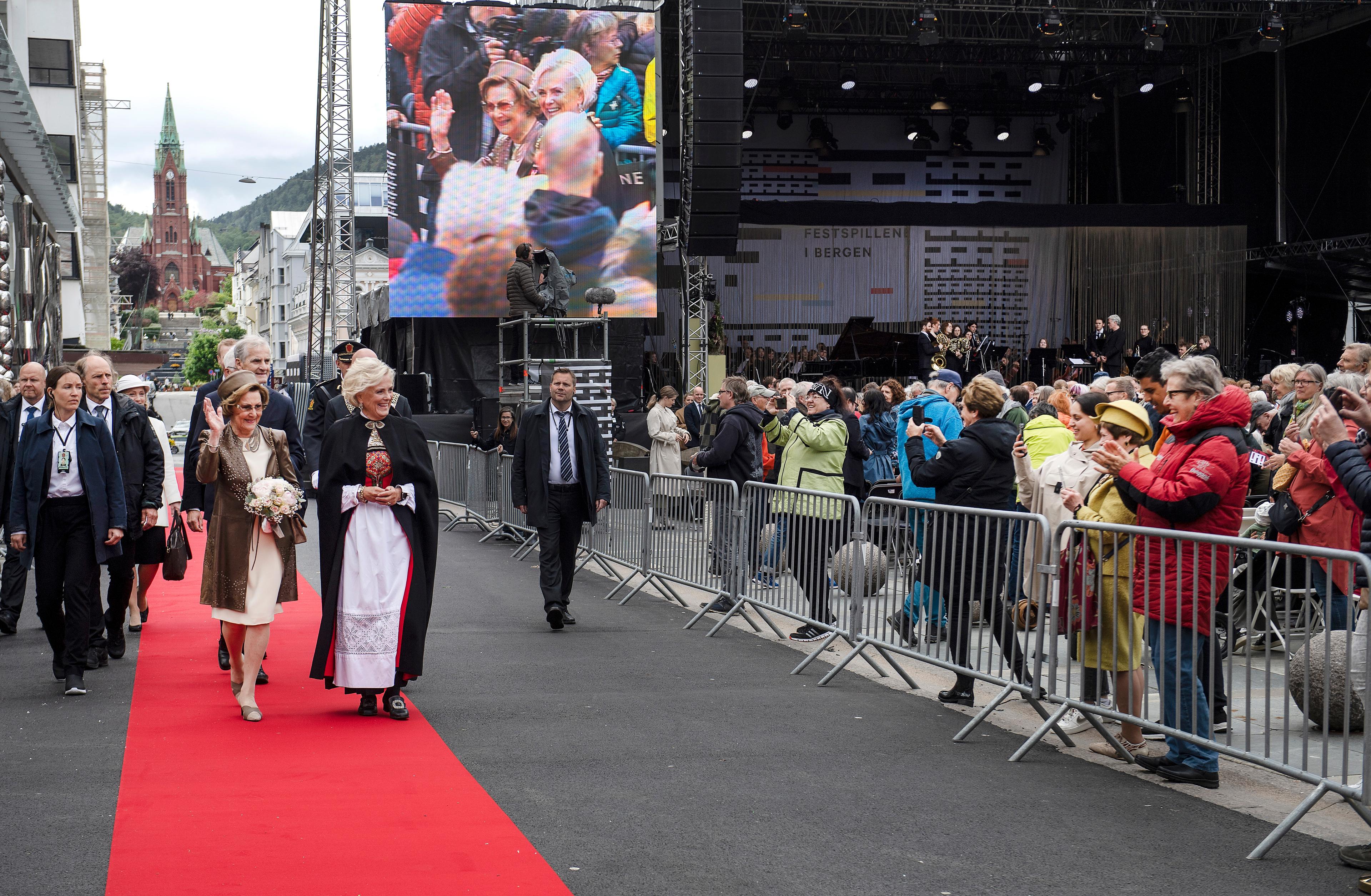 Festspillene i Bergen har etablert seg som senter for den nordeuropeiske kunstscenen, kjent for urfremføringer, nye produksjoner innen musikk, opera, teater, dans og et stort mangfold på programmet. Dette er Dronningens 34. besøk til festspillene.