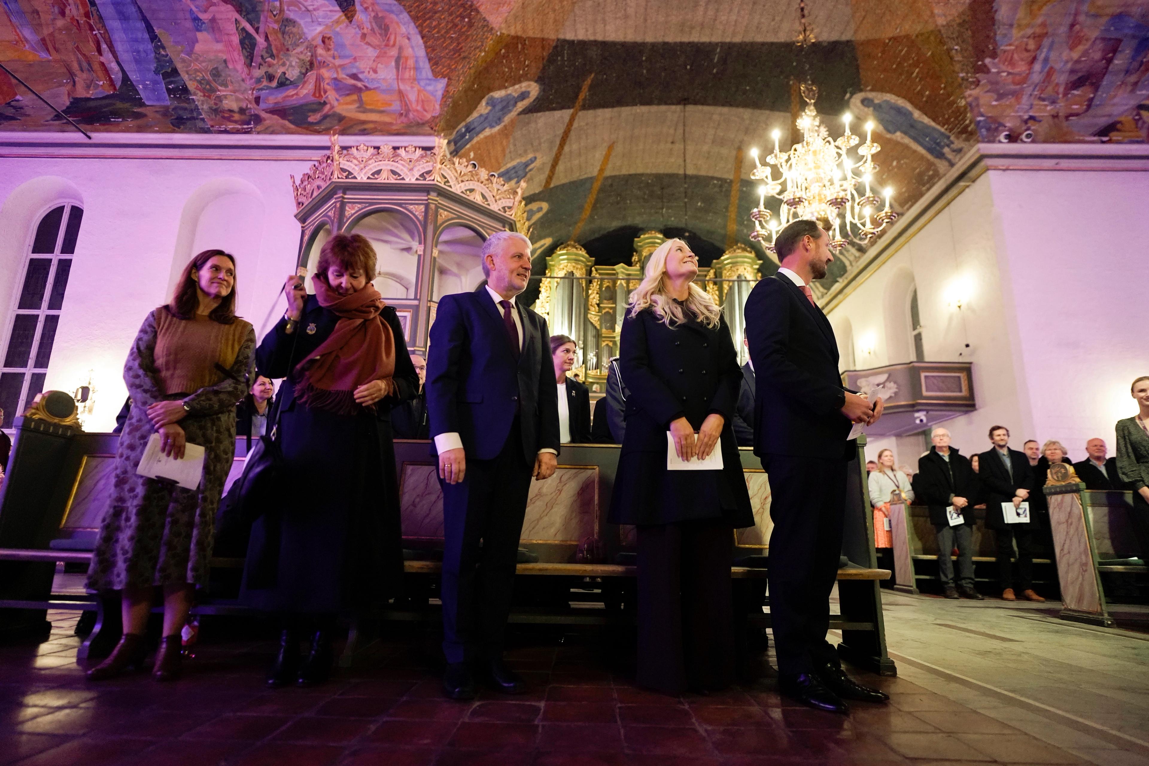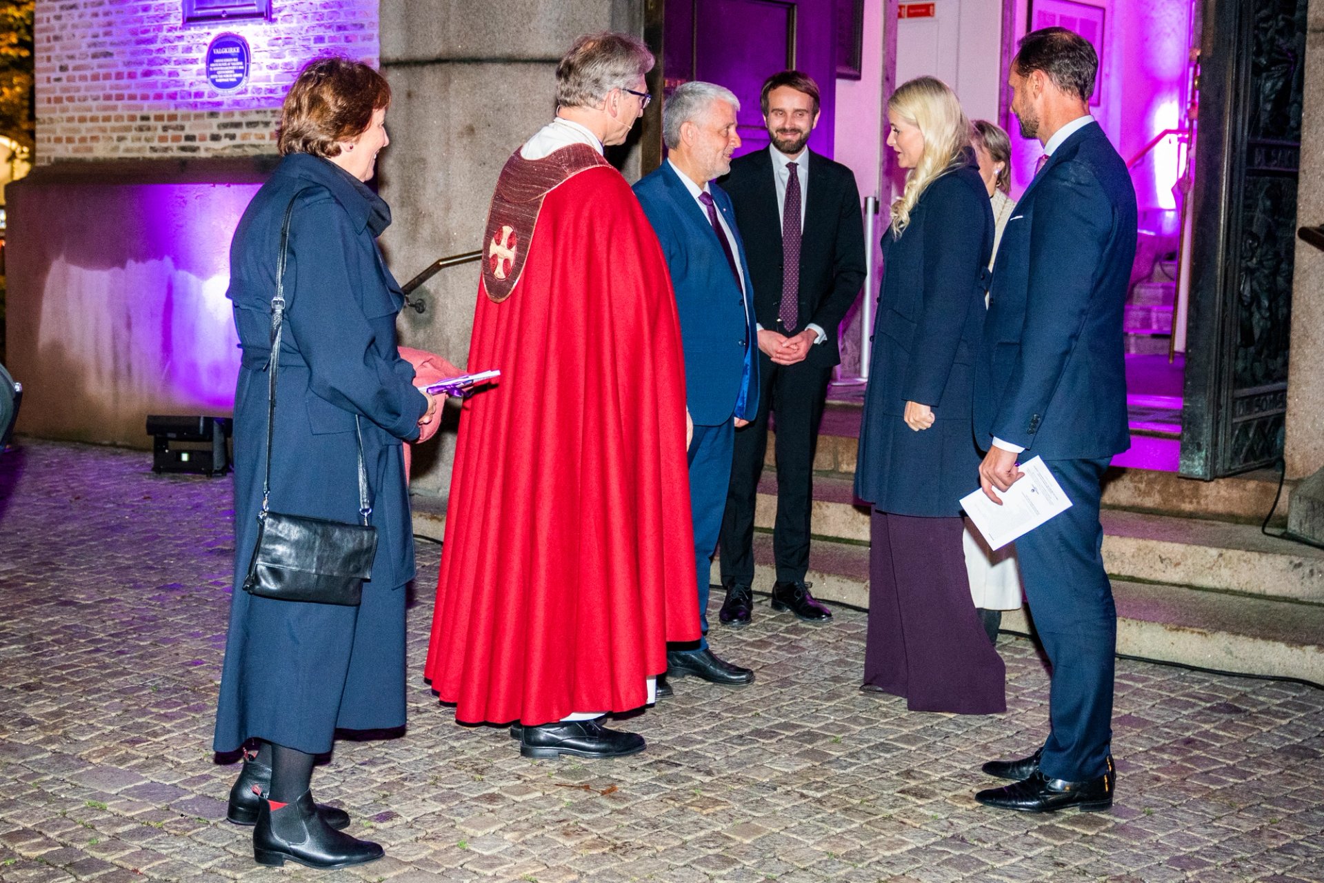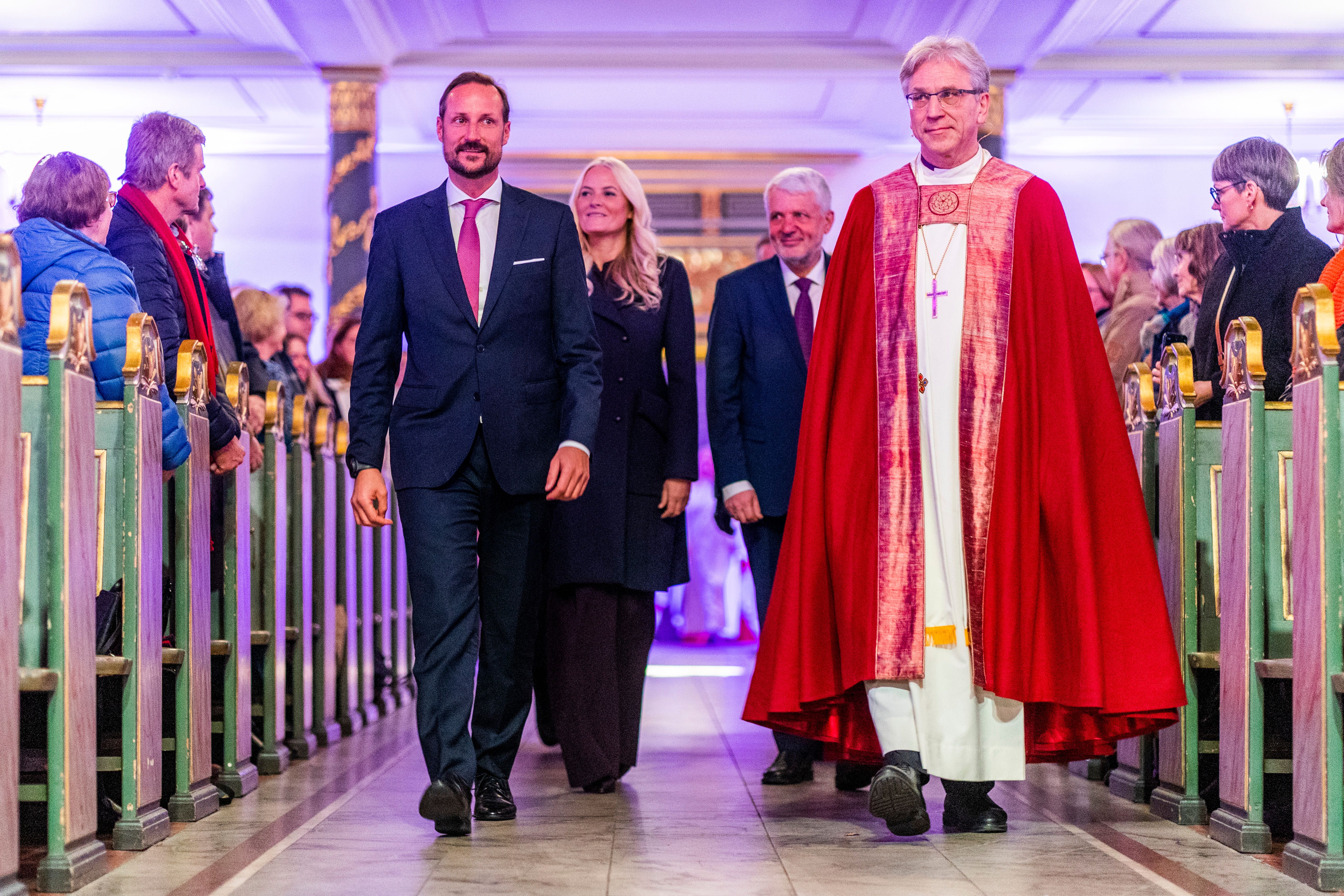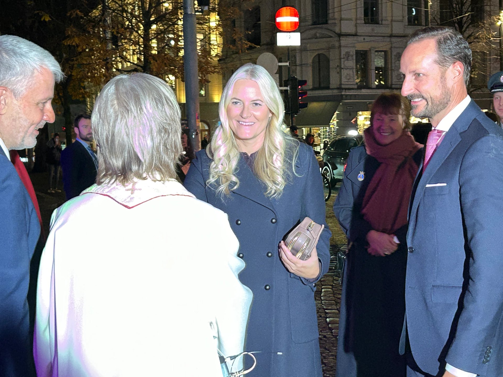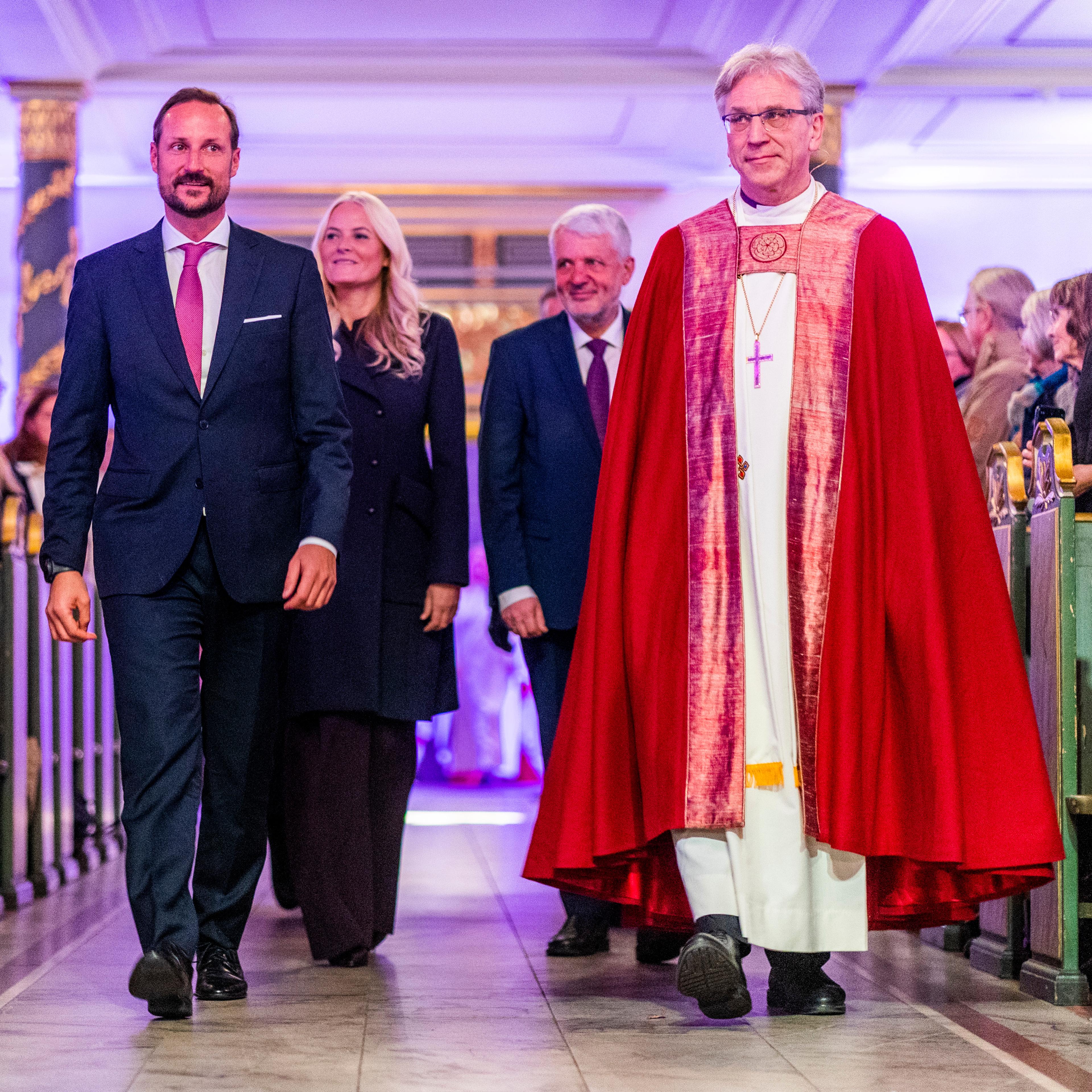 Kirkens Nødhjelp markerte 75 år med fredsarbeid med en festgudstjeneste i Oslo Domkirke i kveld. Hans Kongelige Høyhet Kronprinsen og Hennes Kongelige Høyhet Kronprinsessen var til stede under gudstjenesten.
