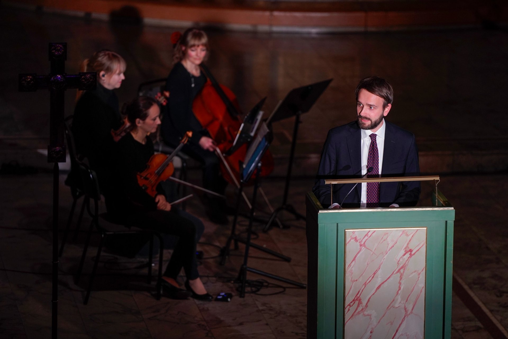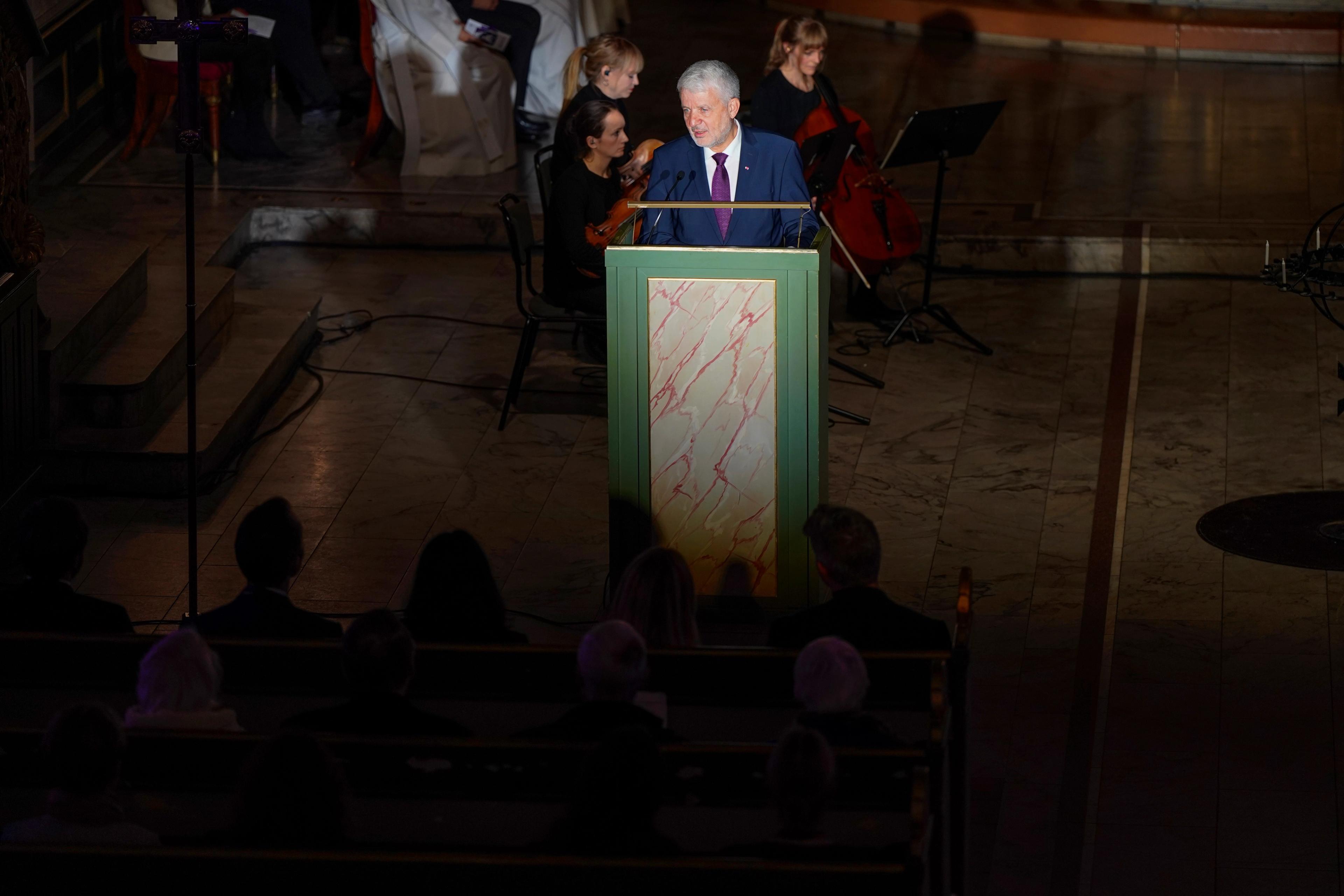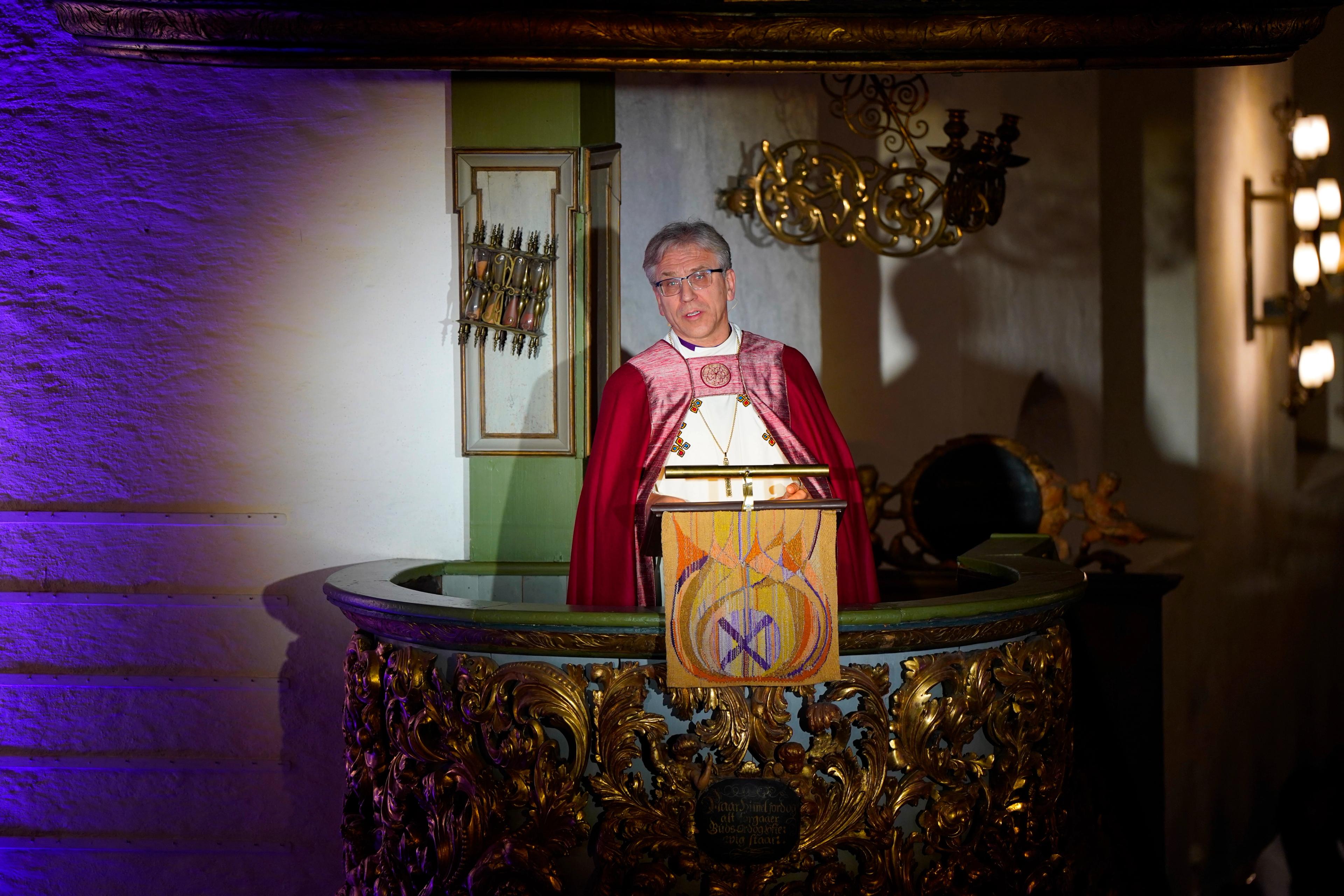 Generalsekretær i Kirkens Nødhjelp Dagfinn Høybråten talte under festgudstjenesten - som var åpen for alle. Næringsminister Jan Christian Vestre talte på vegne av regjeringen og takket de ansatte og frivillige i Kirkens Nødhjelp for det viktige arbeidet de gjør.