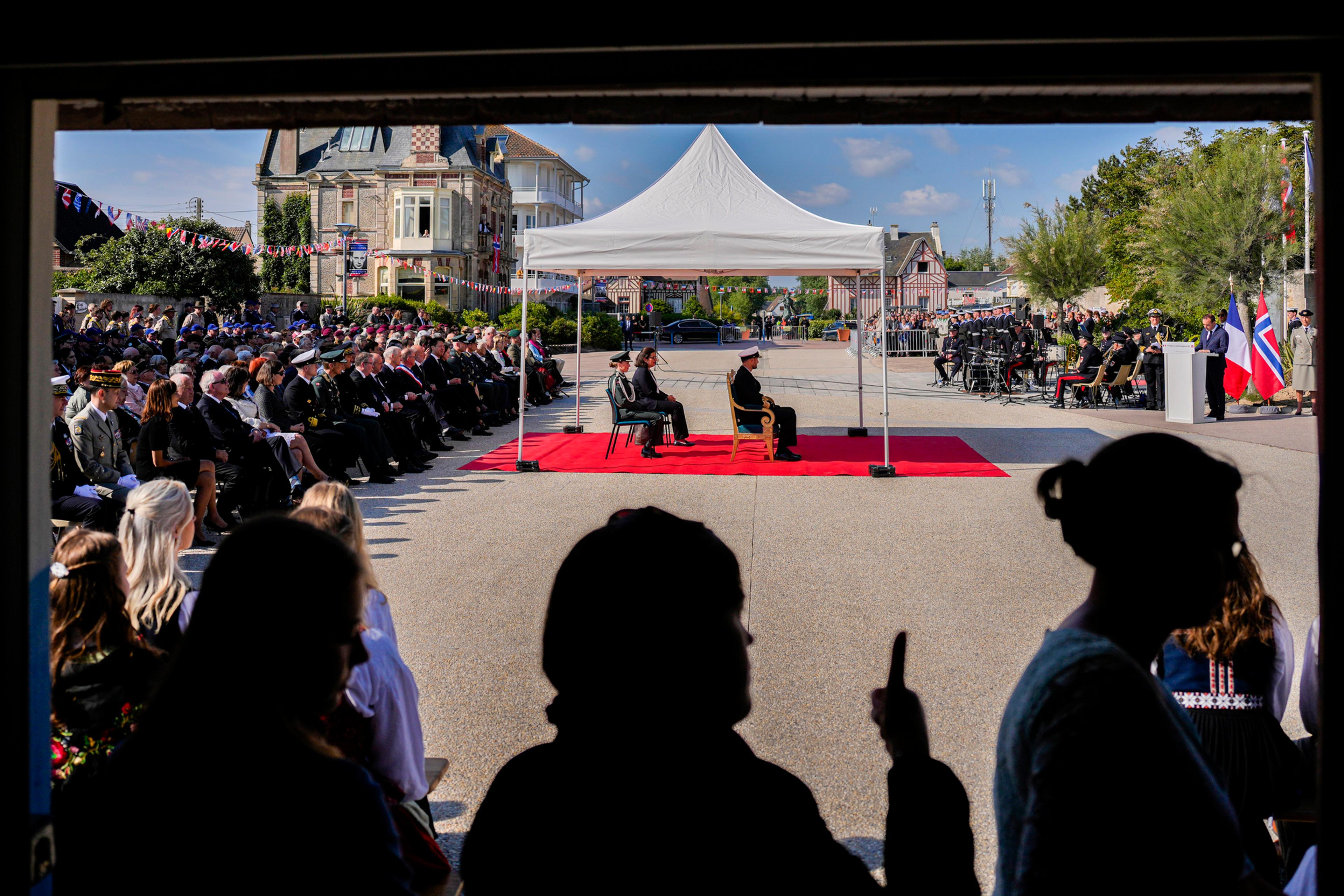 Hans Kongelige Høyhet Kronprinsen markerte i dag D-dagen sammen med stats- og regjeringssjefer fra landene som deltok ved landgangen i Normandie for 80 år siden.