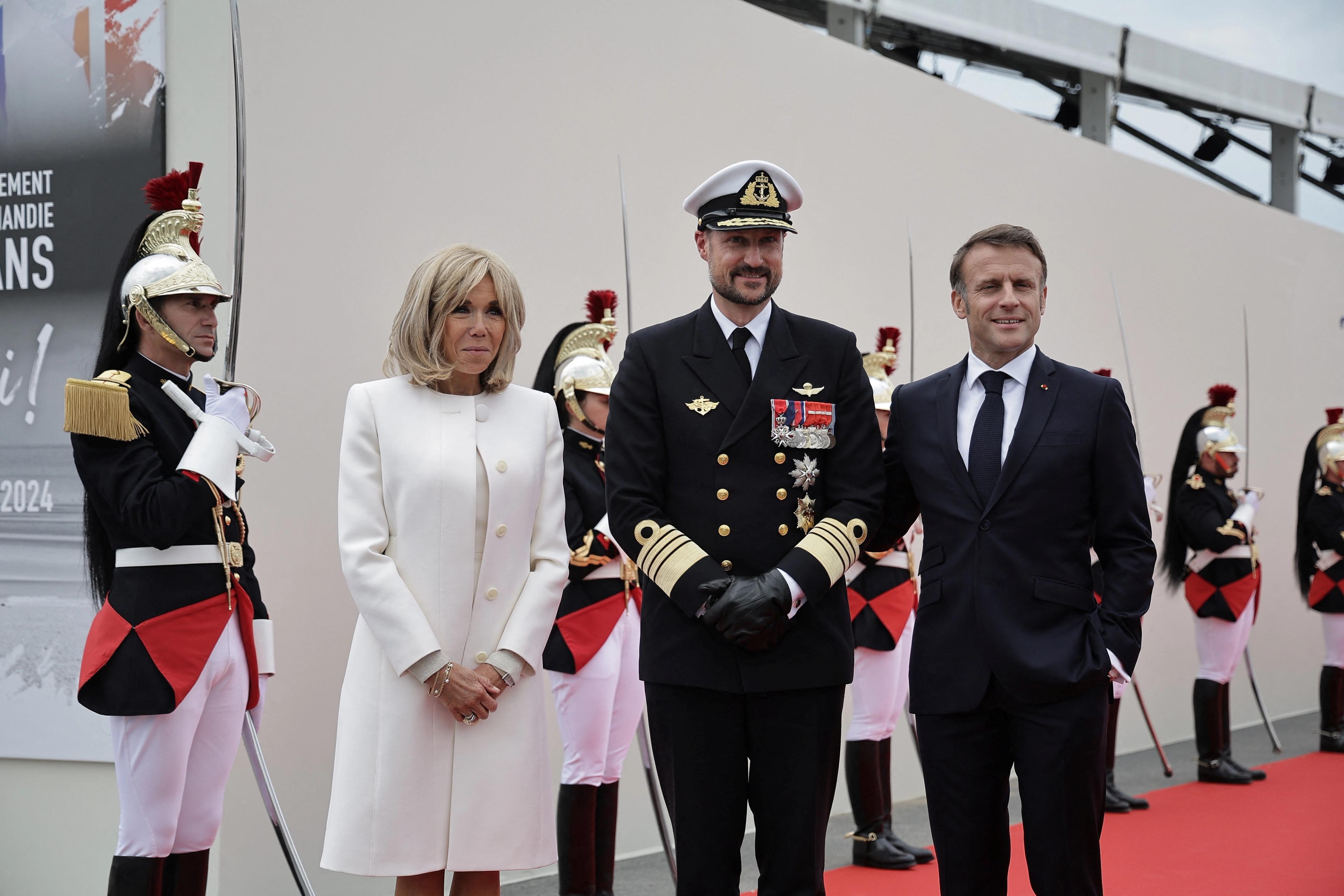 Kronprinsen var også til stede under den store internasjonale markeringen på Omaha Beach torsdag ettermiddag. Kronprinsen ble tatt imot av Frankrikes president Emmanuel Macron da han ankom seremonien. Stats- og regjeringssjefer fra samtlige land som deltok under D-dagen i 1944 var til stede.