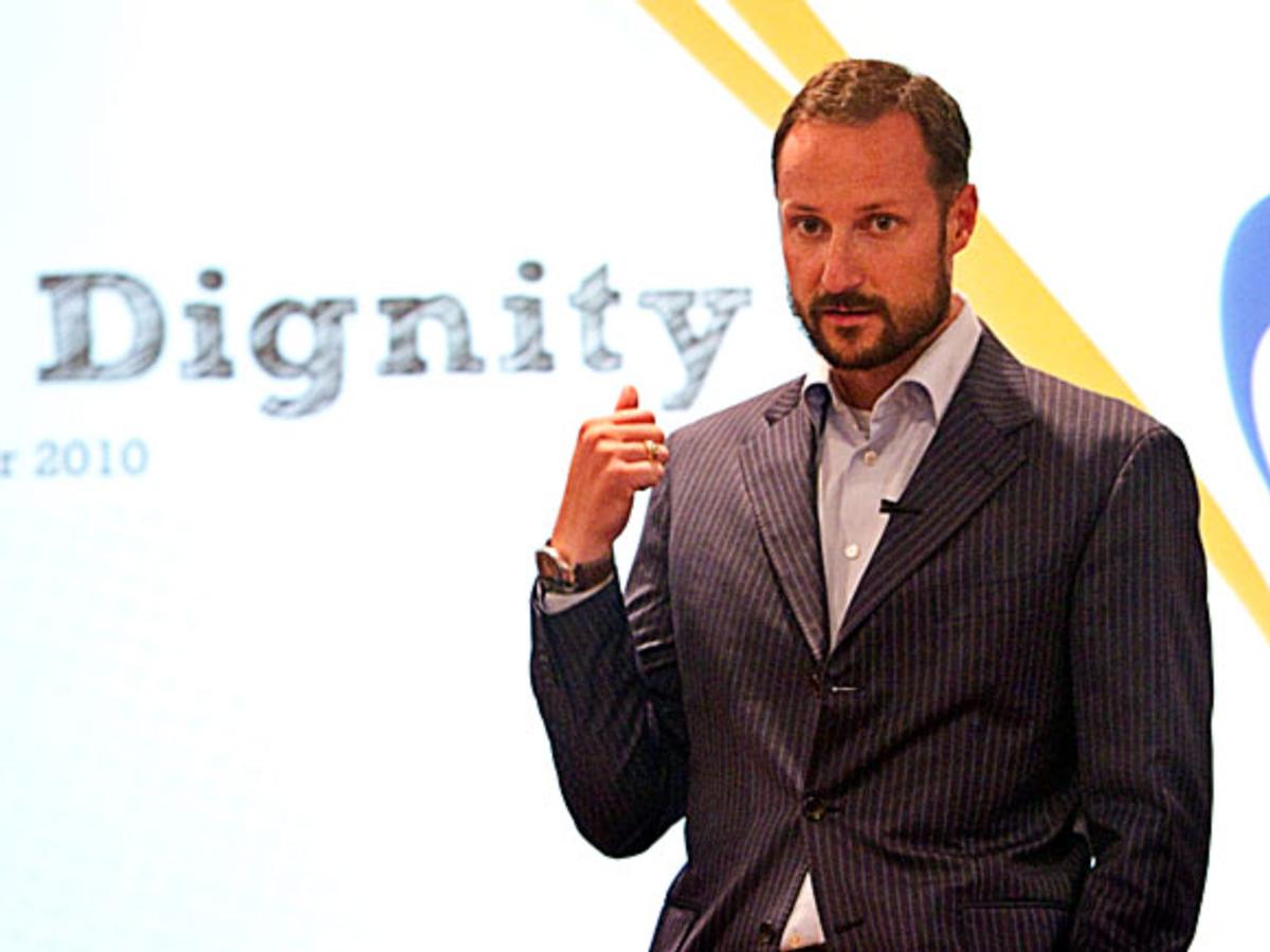 Under foredraget på Idrettens Hus på Ullevål stadion delte Kronprins Haakon sine erfaringer som veileder og snakket om bakgrunnen for Global Dignity. Kronprinsen er en av initiativtakerne til organisasjonen som ble stiftet i 2006 og har som mål å fremme den universelle retten alle mennesker har til å leve et verdig liv.