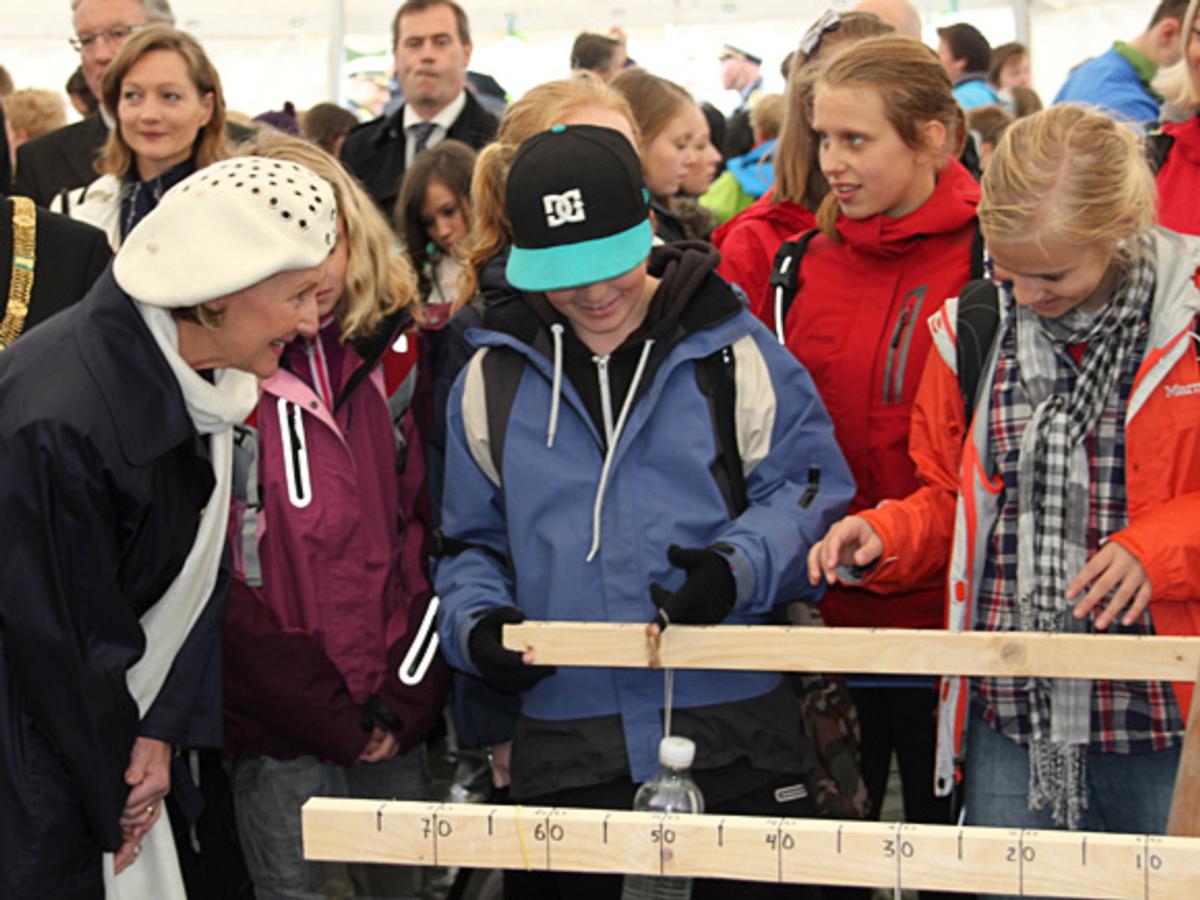 Da Dronning Sonja ankom Festplassen, var elevene godt i gang med forskjellige aktiviteter som har til hensikt å skape større interesse for matematikkfaget – alt fra matterebusløp, eksperimenter, bretting og måling, froskespill og utforsking av romlegemer.