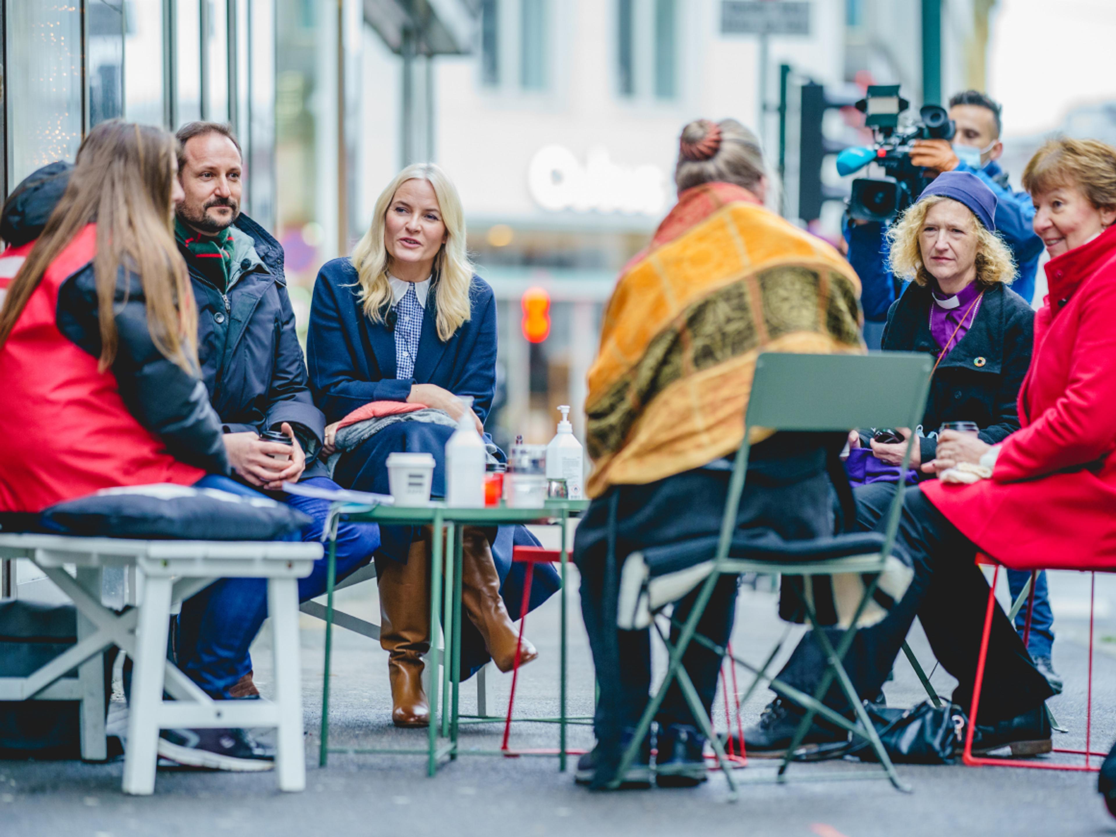Kronprinsparet besøkte deler av gatemiljøet i Oslo i dag. Mange fra rus- og gatemiljøet sliter ekstra tungt nå som mye er koronastengt, men =Kaffe holder åpent og Juleboka 2020 selger godt.