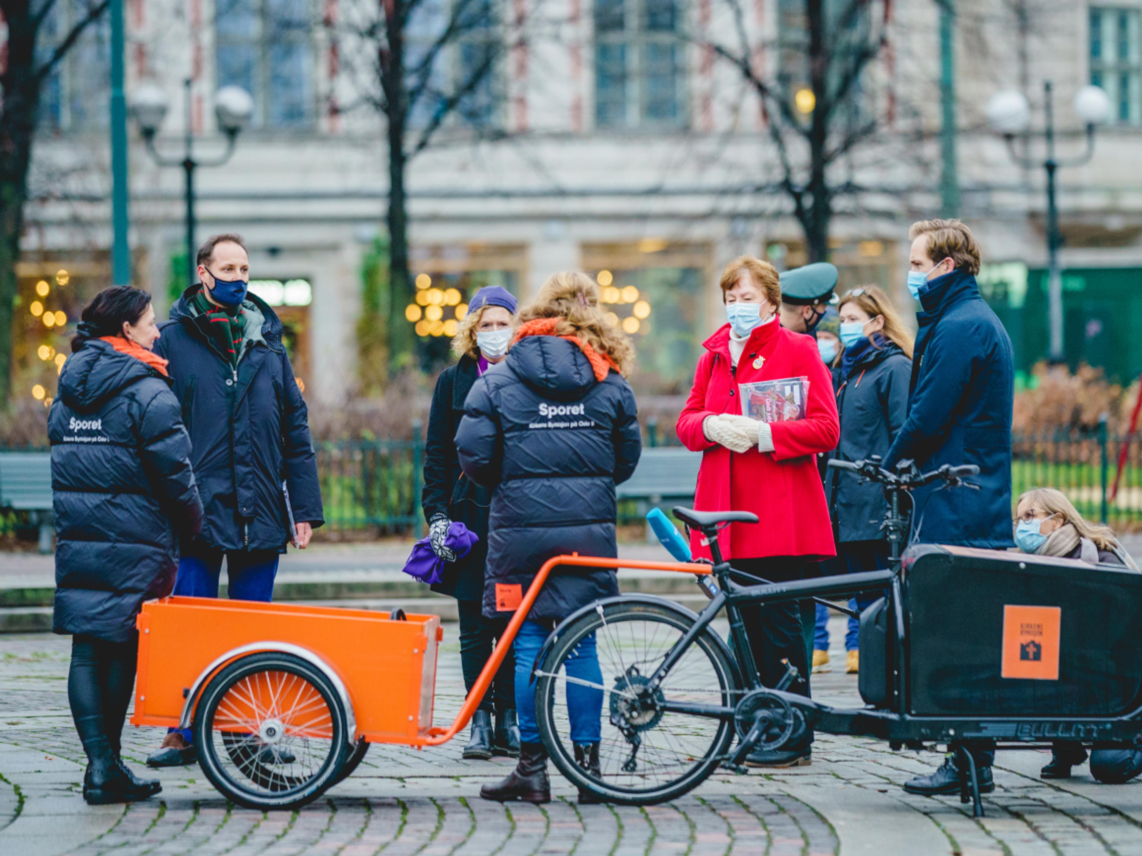 Janne Bøhmer Killingstad selger =Oslo. I mars var det dager hun bare fikk solgt to blader - det var så få folk. Men i dag er hun utrustet med munnbind, hansker og antibac og opplever at folk på gata ser at =Oslo-selgerne tar smittevern på alvor. Når hun ikke kan komme i kontakt med folk ved hjelp av et smil, stemmer hun i en sang for å fange oppmerksomheten, forteller hun Kronprinsparet. Det synes de fleste er hyggelig og gøy.