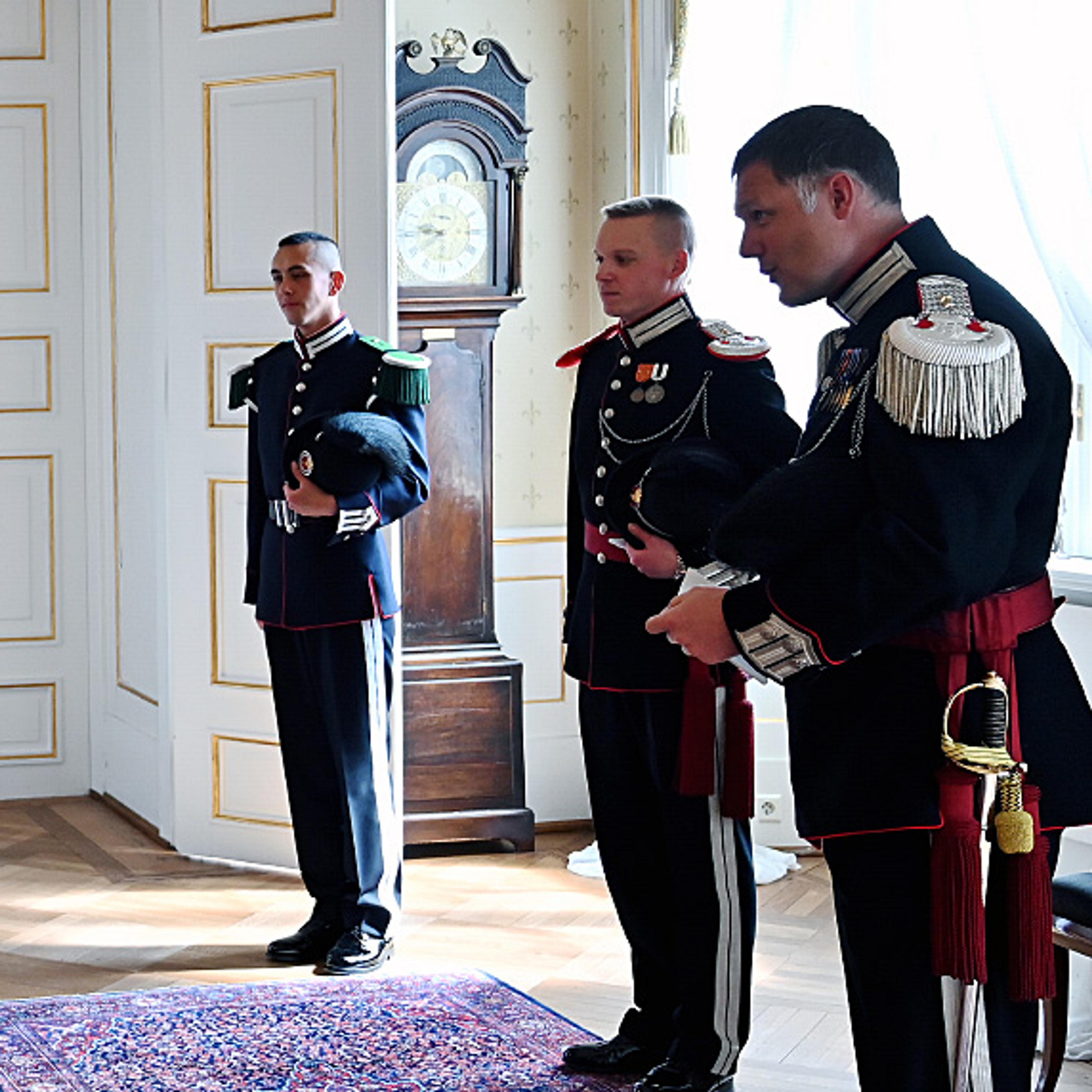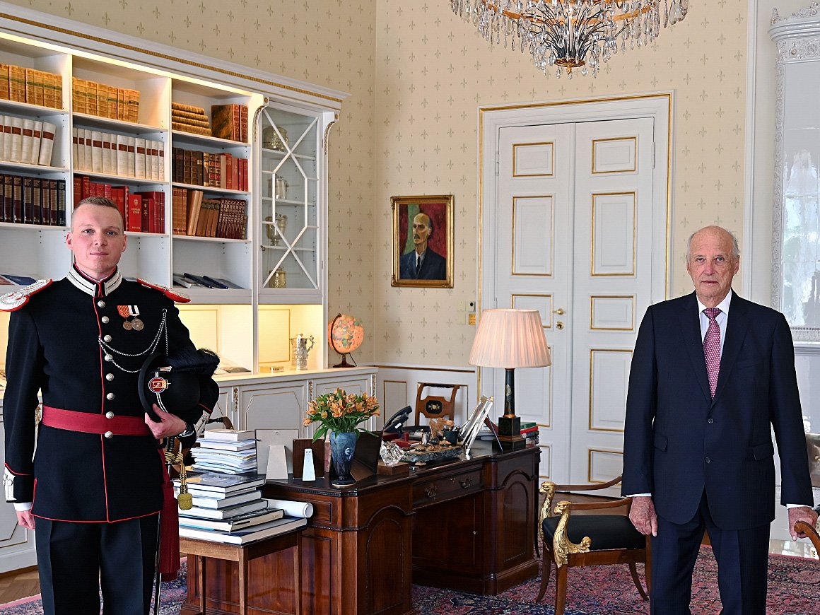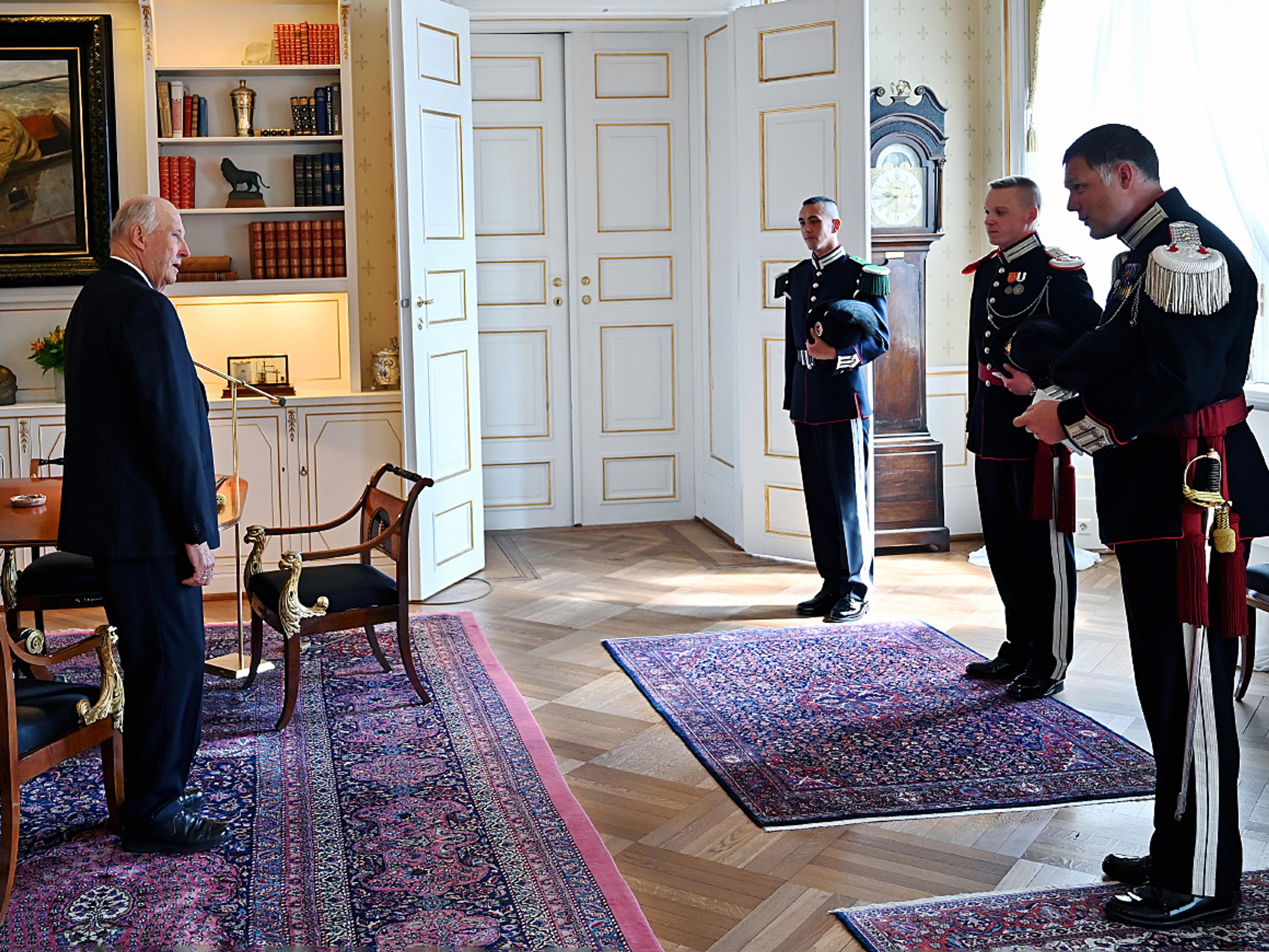 Hans Majestet Kongen gav i føremiddag audiens på Det kongelege slottet i høve årets tildeling av Gardens ur og Brigader Leif Schanches ærevising.
