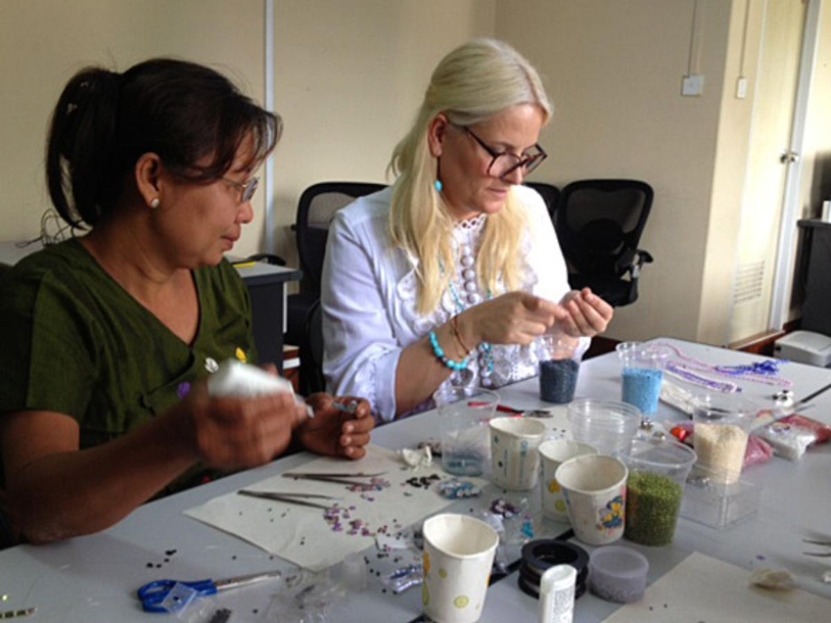 Fløytene pyntes og bæres som smykker. De lages av kvinner som kanskje ellers ikke ville komme ut i arbeidslivet, men som nå er ansatt av Ahkaya. Kronprinsessen fikk prøve seg i verkstedet.