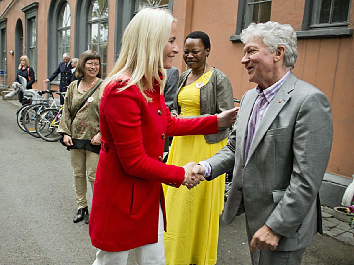 Hiv-senteret samlet over 100 brukere, ansatte, pårørende og samarbeidspartnere til hagefest. Kronprinsesse Mette-Marit ble ønsket velkommen av institusjonssjef Ina Herrestad, styreleder Åge Petter Christiansen og brukerne Tor og Fidelia. Sangkoret Sangria underholdt, og det ble servering av deilig mat, taler og hilsener.