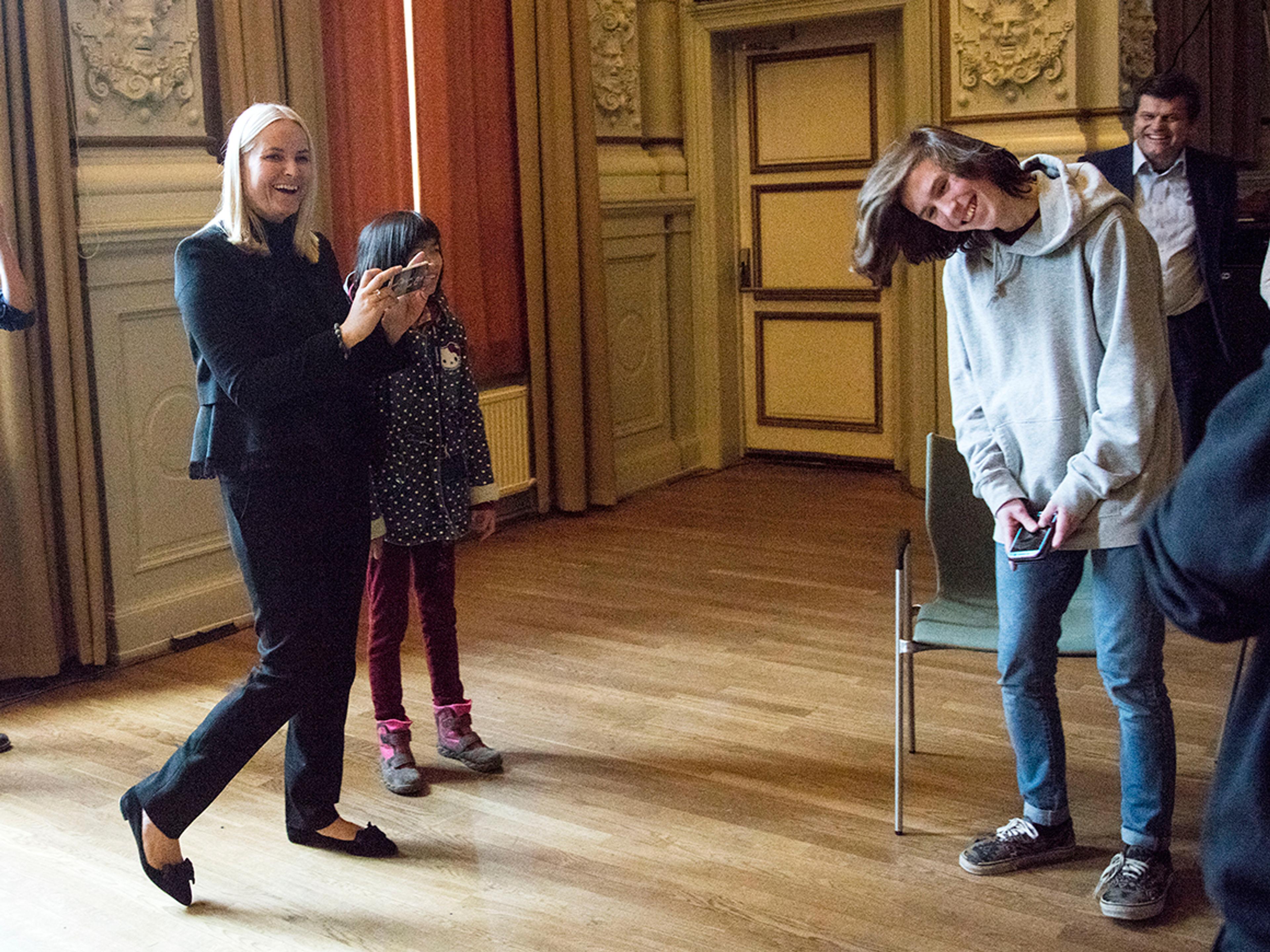 Etter prisutdelingen møtte Kronprinsessen noen av festivaldeltakerne i Kulturhuset Banken, som også er arena under Amandusfestivalen. Unge filmskapere delte planer og erfaringer med Kronprinsessen, som også fikk prøve seg som filmskaper på egen telefon. Linn Wang instruerte, mens Szilánd Regnisson og Jon Magnus Buejordet Huset bidro med rollespill til "innspillingen".