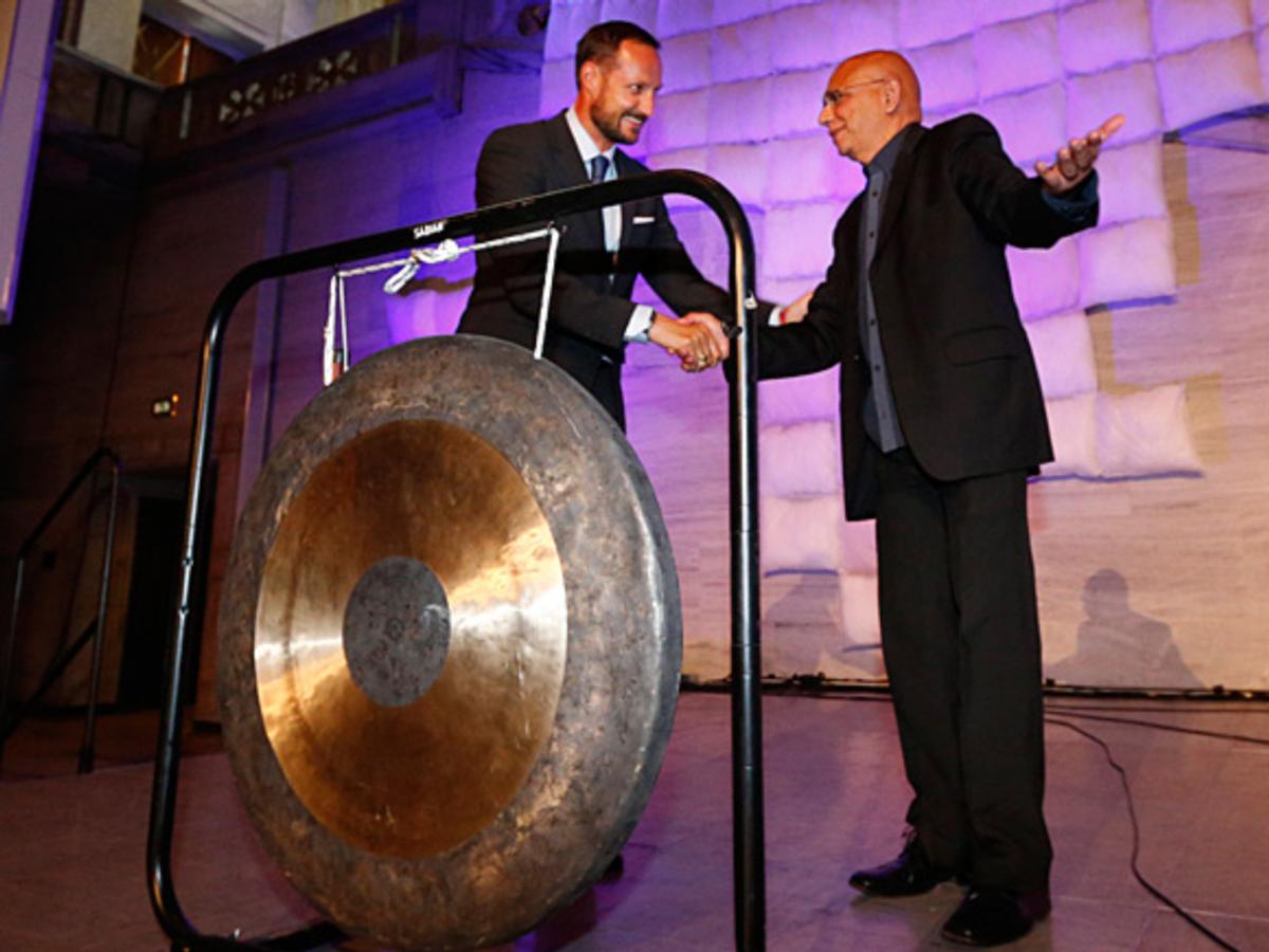 Tidligere har Hennes Majestet Dronningen åpnet det som av mange beskrives som en inkluderende folkefest. I år takket Kronprins Haakon ja til å gjøre det samme. Ved å slå på en stor gongong på scenen, foretok Kronprinsen den høytidelige åpningen i Rådhushallen i ettermiddag.