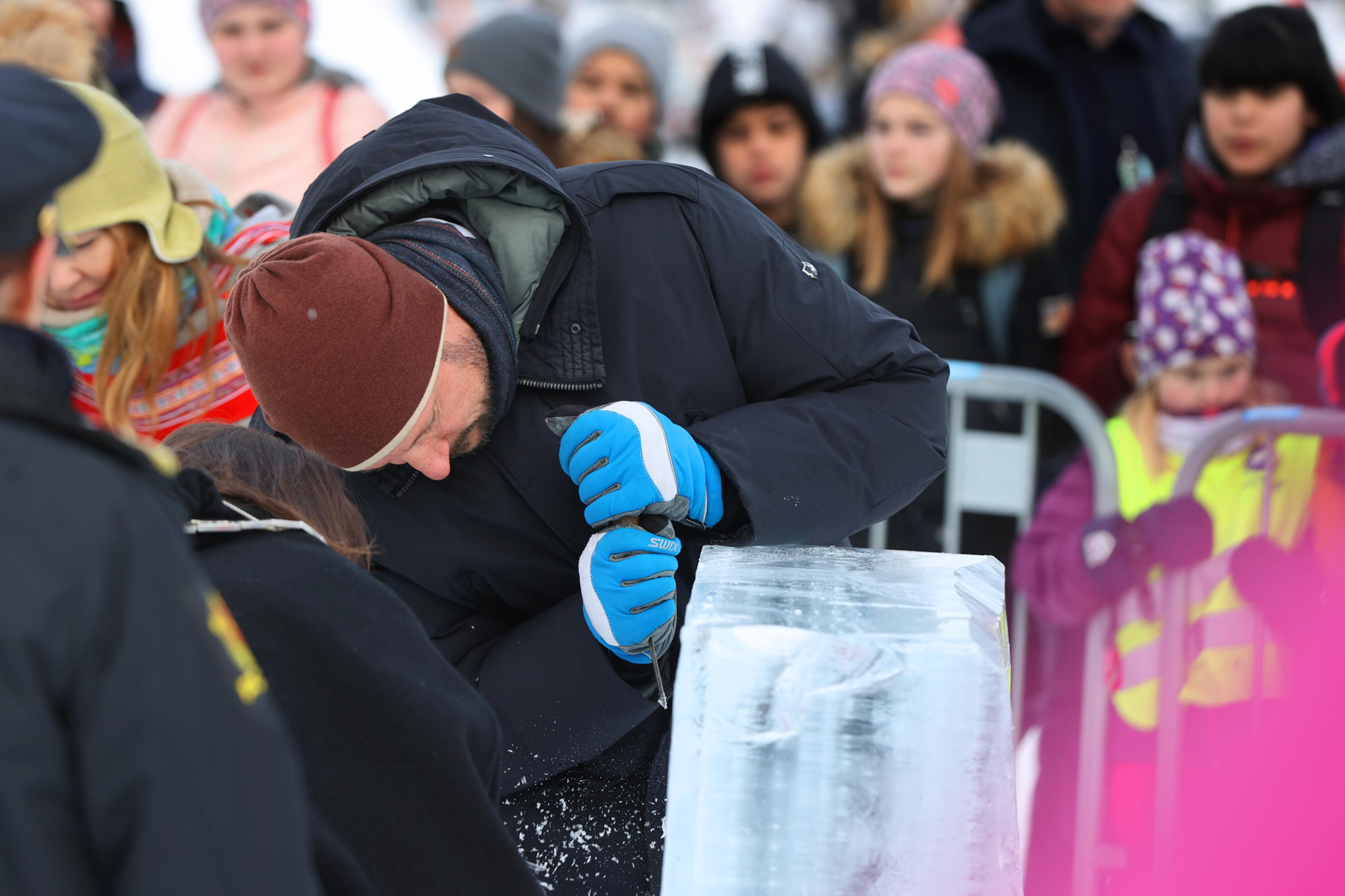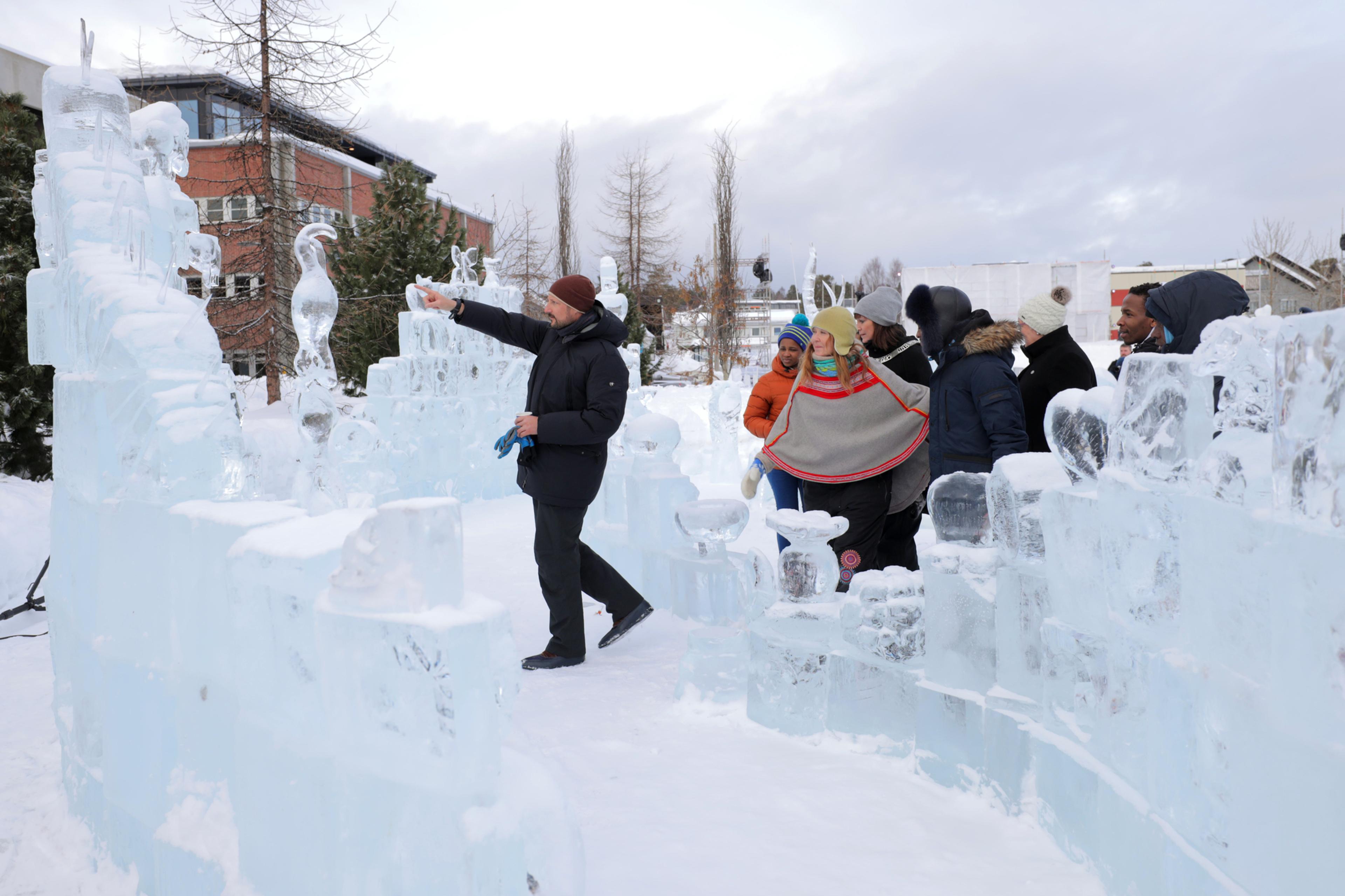 Besøket til Alta ble rundet av med en omvisning i Finnmarksløpets Siida i Sentrumsparken. Her fikk Kronprinsen en omvisning i skulpturparken og selv prøve seg som skulptør.
