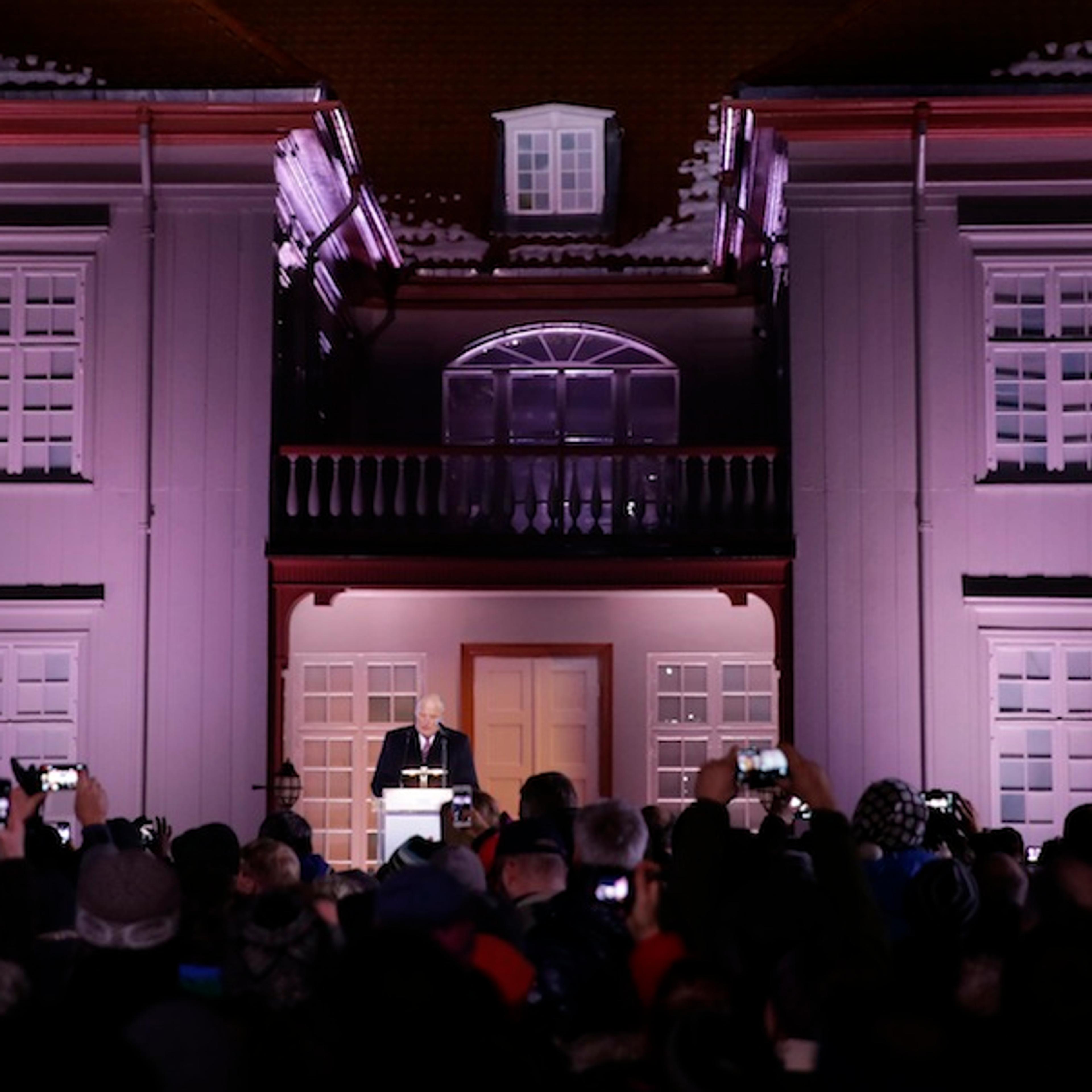 Åpningen av jubileet ble sendt direkte på NRK TV i kveld. Eidsvollsbygningen – vakkert restaurert til jubileet – dannet en stemningsfull bakgrunn for markeringen, med snø, is og fakkelskinn.