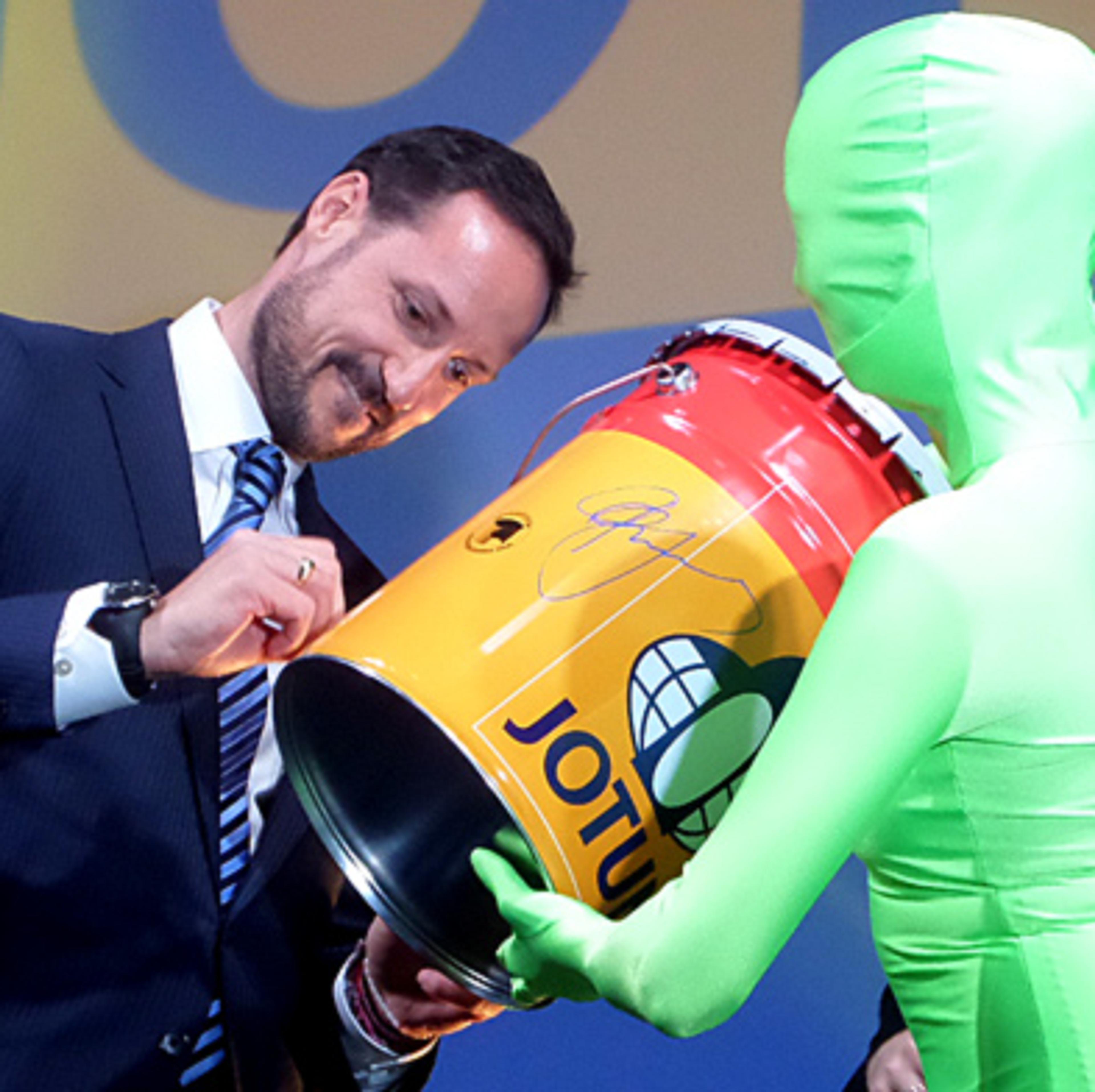 Kronprinsen fikk en omvisning på fabrikken i forkant av åpningen, som ble markert ved at Kronprinsen, statssekretær Dilek Ayhan, Leningrads guvernør Alexander Drozdenko, viseminister Svetlana Ivanova og Jotuns styreleder Odd Gleditsch d.y. trykket på hver sin startknapp på en malingspalett.