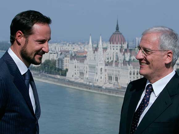 DD.KK.HH. Kronprinsen og Kronprinsessen var i dag til stede ved åpningen av Pannon House i Budapest. Det nye kontorbygget tar mål av seg å være det mest miljøvennlige i Ungarn. Besøket startet imidlertid med et møte med Ungarns president, László Sólyom.