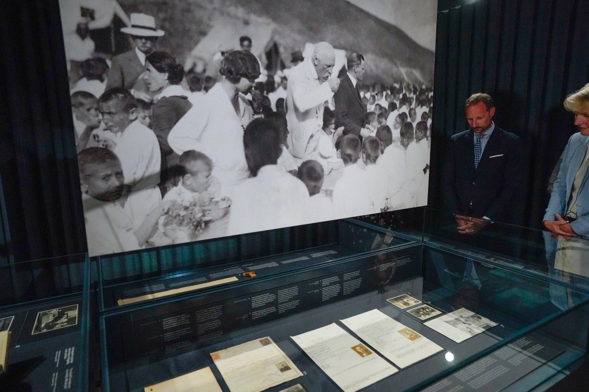 Hans Kongelige Høyhet Kronprinsen åpnet i dag en utstilling om Fridtjof Nansens humanitære arv på Nobels Fredssenter i Oslo. Fredsprisvinner Nansen var en pioner i arbeidet med å hjelpe flyktninger og sultrammede.